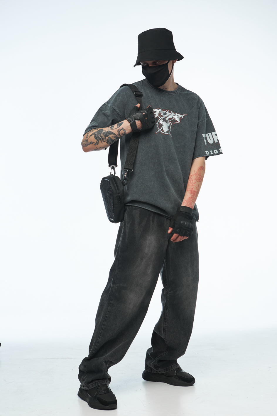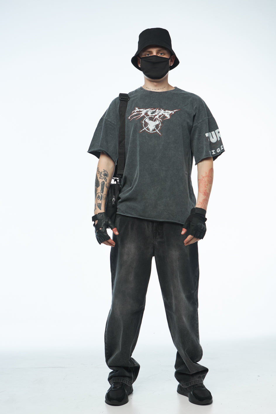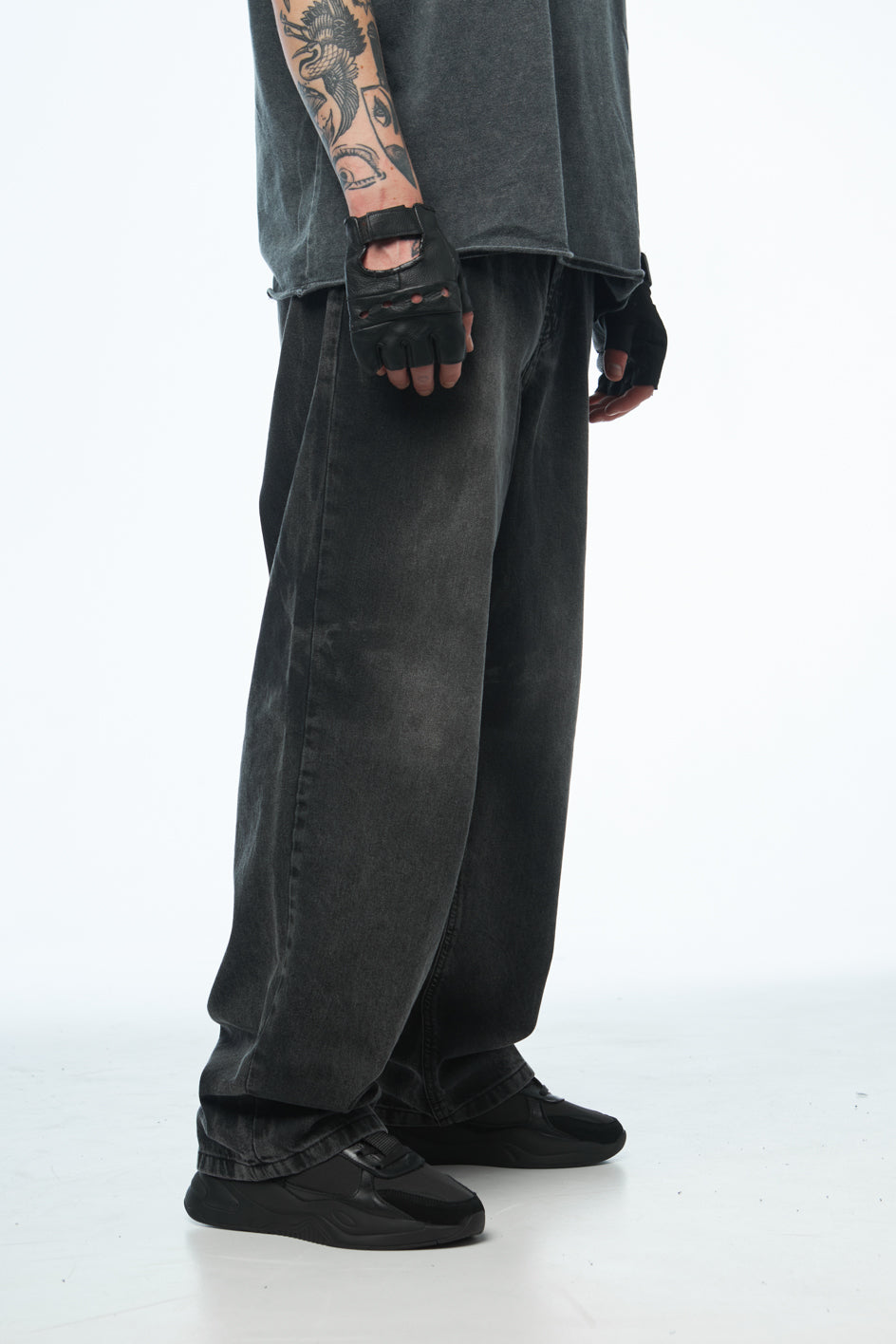 Gekochte Jeans im Baggy-Schnitt mit Rissen und fünf Taschen. Mit Reißverschluss und Knopf vorne zu schließen. Unisex-Modell.