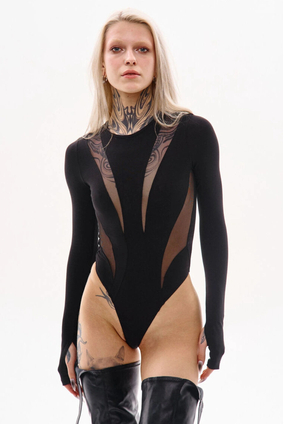 Body aus einer Kombination von elastischem Cooler und transparenter Netzstruktur. Dank des anatomischen Schnitts und der Mesh-Einsätze passt es sich gut dem Körper an und betont die Silhouette. Ärmel mit Daumenlöchern sorgen für zusätzlichen Komfort und Stil.