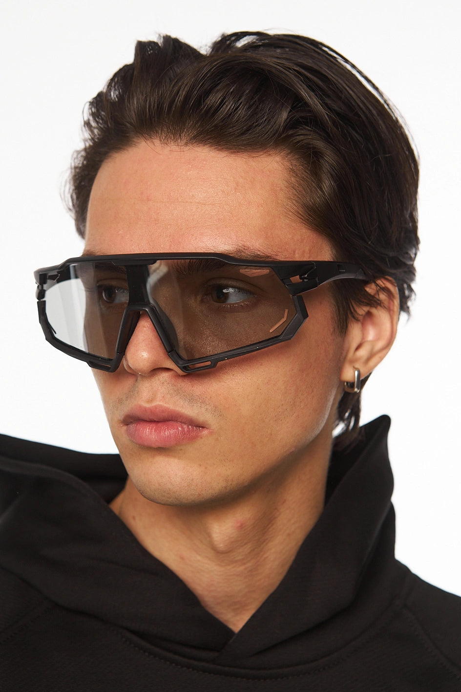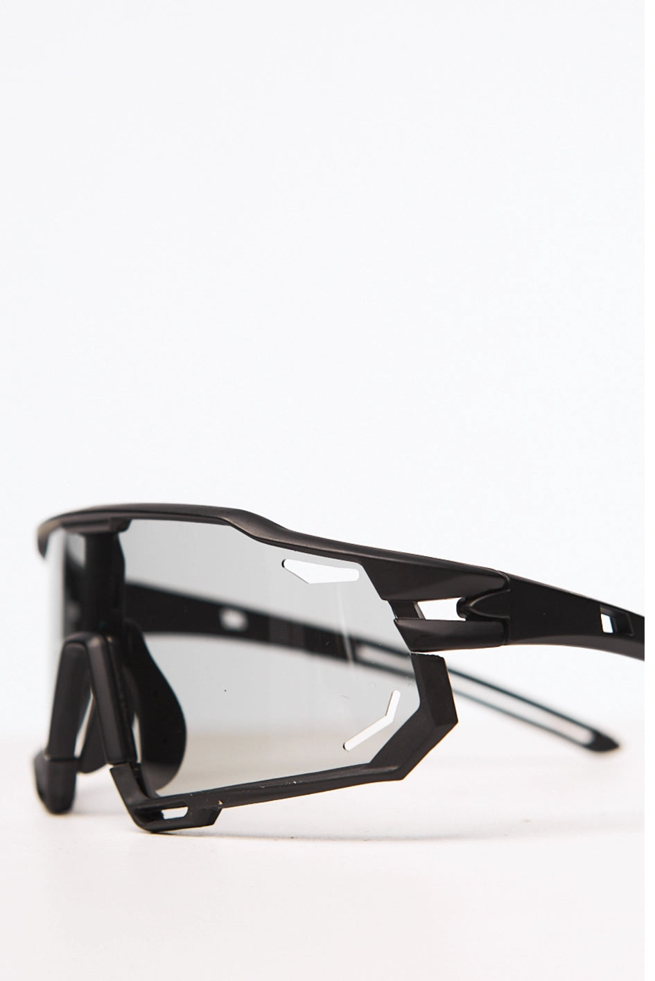 Fotochrome sportliche Sonnenbrille mit schwarzem Gestell, Polycarbonatgläser schützen die Augen vor Sand, Wind und Sonne. Bieten UV-400-Schutz. Im Set mit Etui.