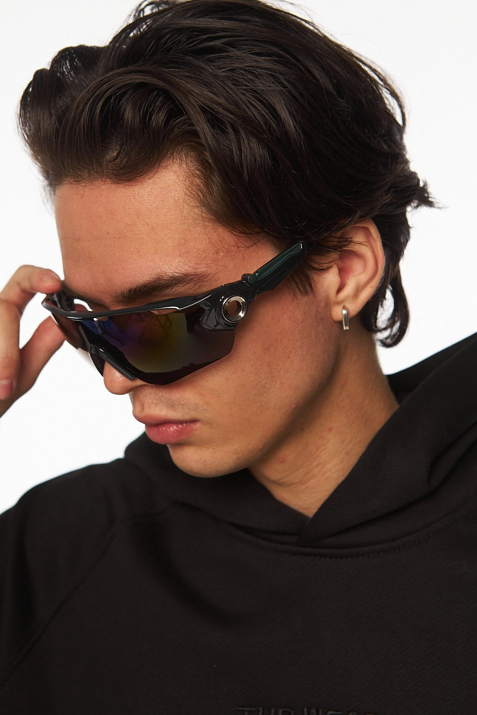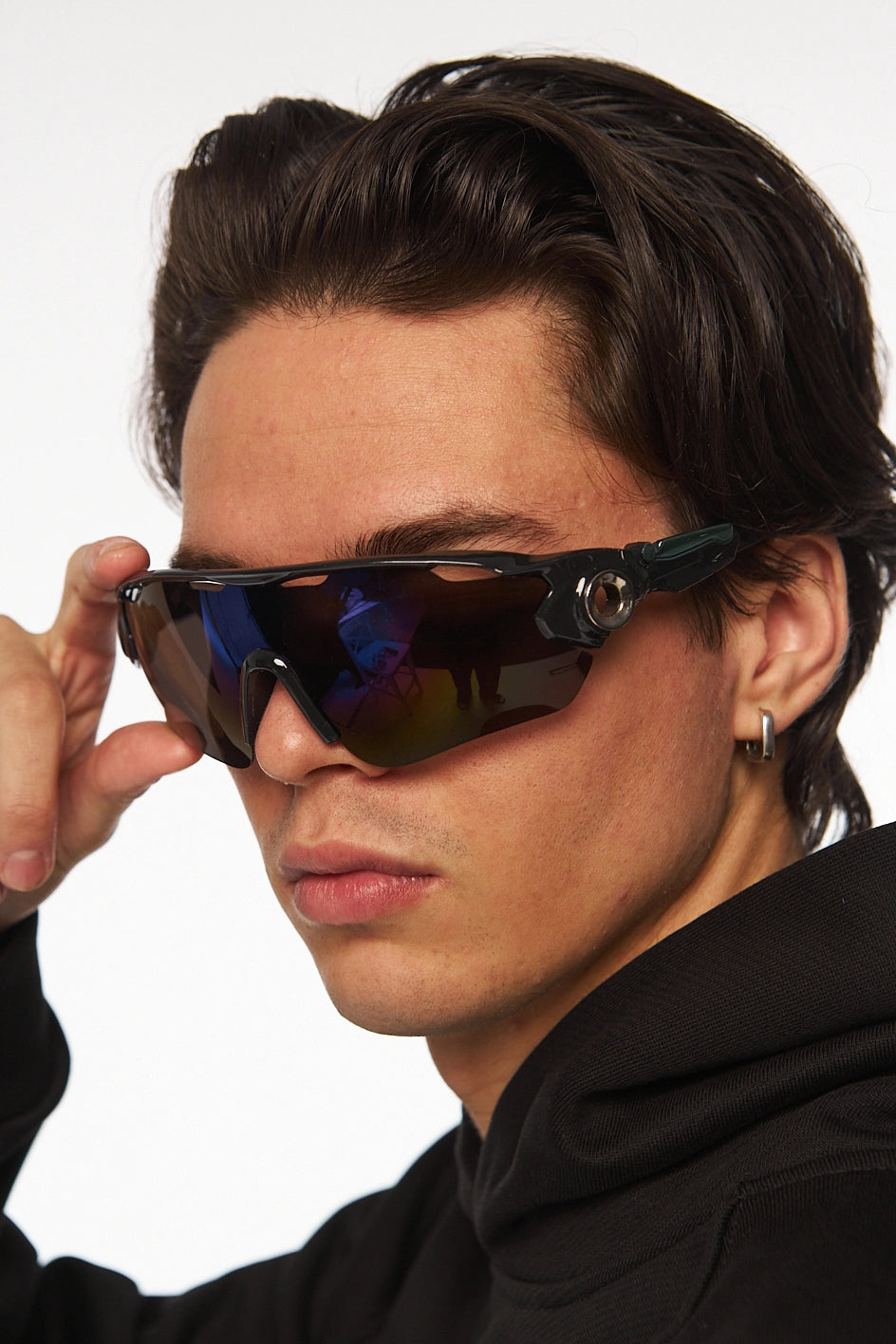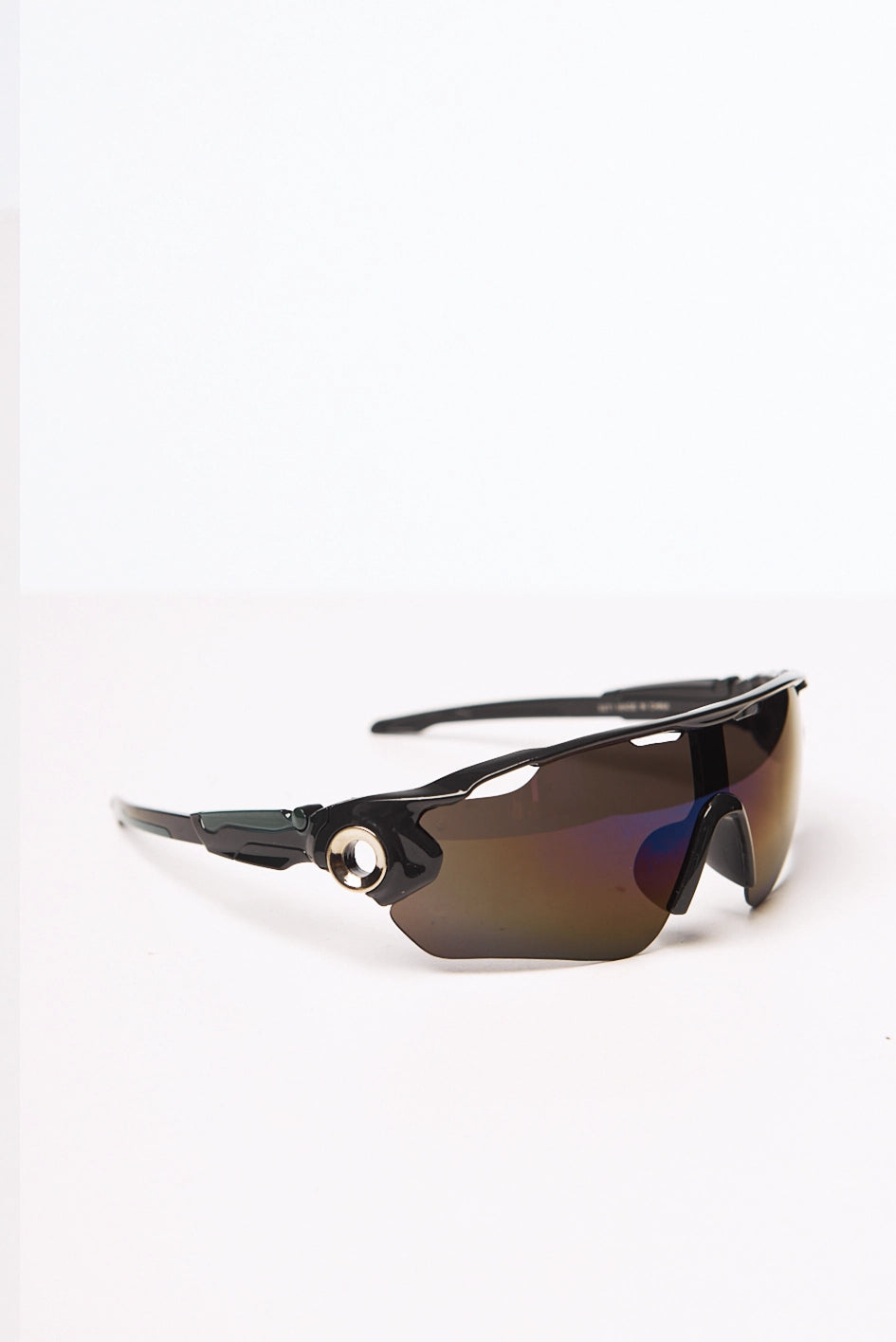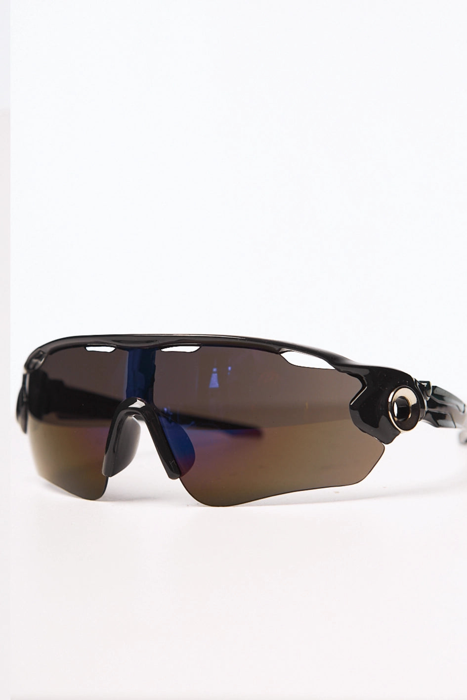 Fotochrome sportliche Sonnenbrille mit schwarzem Gestell, Polycarbonatgläser schützen die Augen vor Sand, Wind und Sonne. Bieten UV-400-Schutz. Im Set mit Etui.