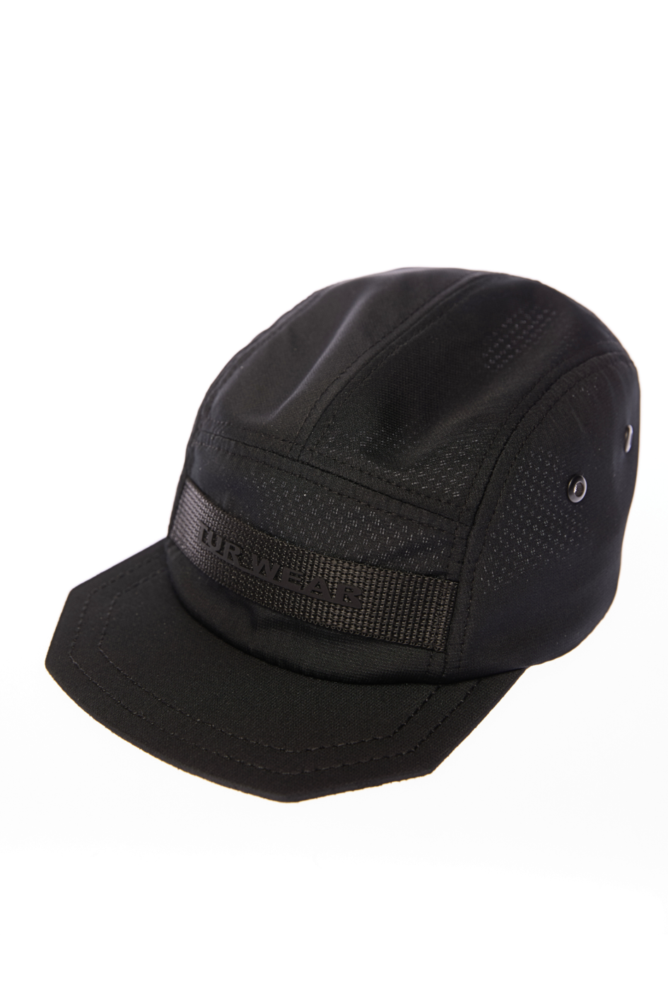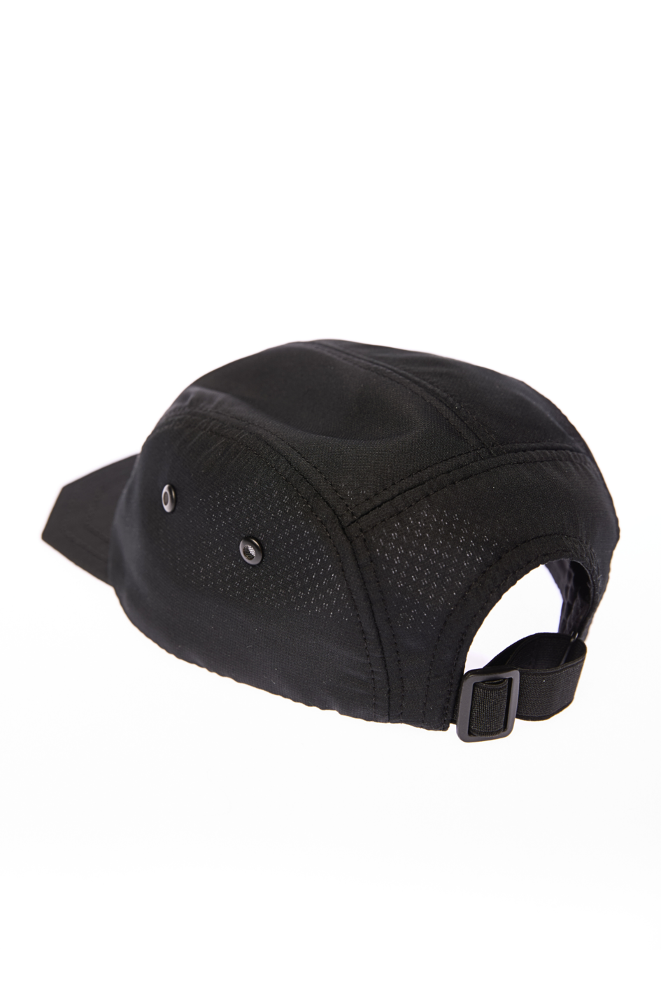 Cap aus leichtem, atmungsaktivem Planenmaterial. Mit verkürztem Schirm. Auf der Vorderseite befindet sich ein Band mit markenbezogenem Branding. Universelle Größe, mit Gummizug regulierbar.