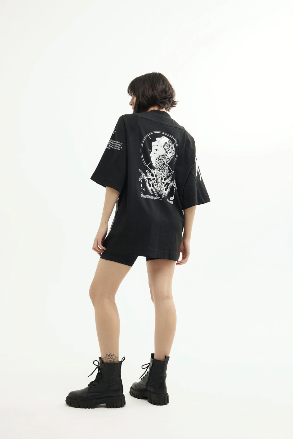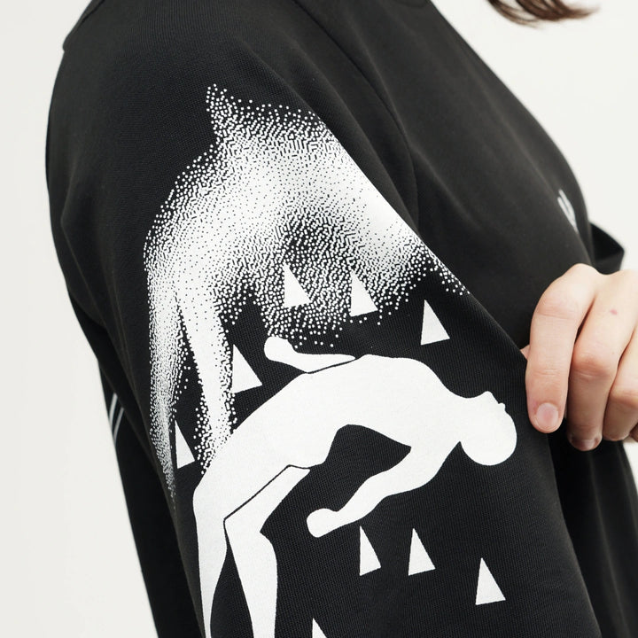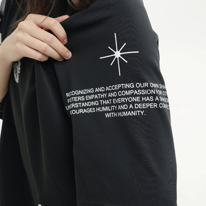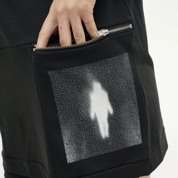 Lang geschnittenes T-Shirt aus dichtem Jersey, das Komfort und modernen Stil vereint. Auf der Vorderseite befinden sich zwei aufgesetzte Reißverschlusstaschen, die eine bequeme Aufbewahrung kleiner Gegenstände ermöglichen. Das Modell ist mit fünf weißen Aufdrucken versehen, die ihm Ausdruck und individuellen Charakter verleihen. Eine perfekte Wahl für alle, die Bequemlichkeit und modernes Design im Alltag schätzen.