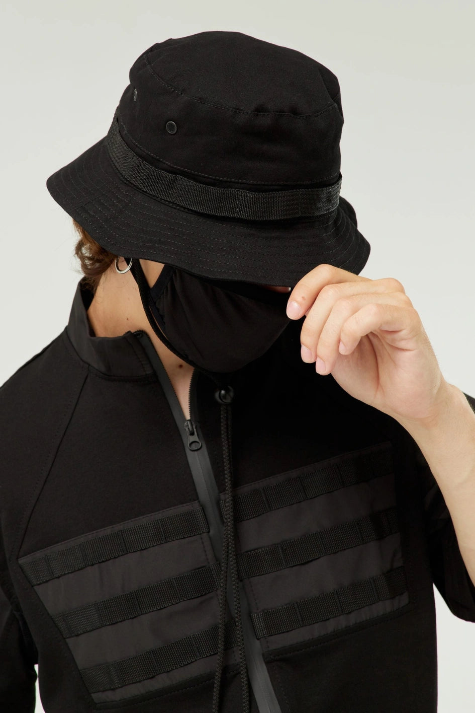 Klassischer Fischerhut im Military-Stil. Verfügt über eine Tasche mit Klappe und einen Kordelzug.