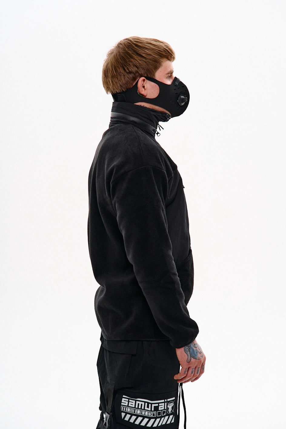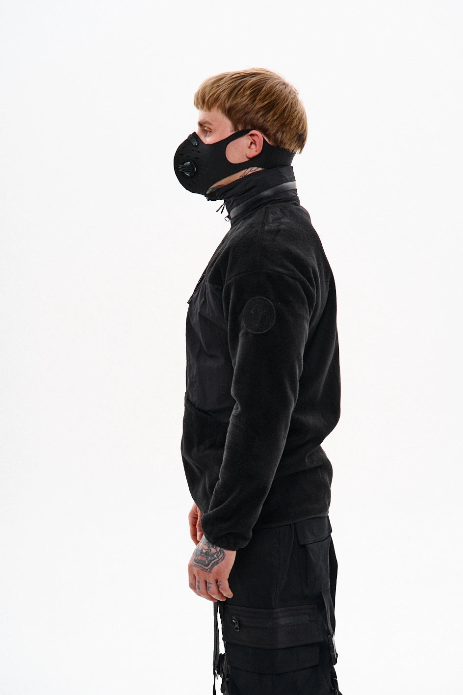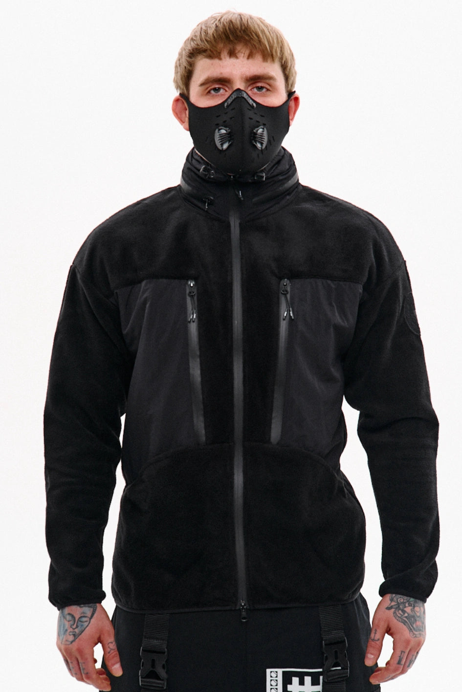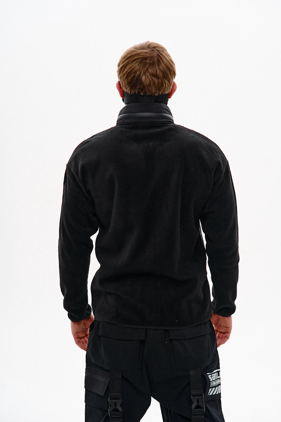 Fleece-Pullover mit Reißverschluss, zwei großen aufgesetzten Taschen und zwei Brusttaschen. Die Brusttaschen sind aus Ripstop-Gewebe mit Reißverschluss gefertigt. In der linken großen Tasche befindet sich ein Fach für ein Handy. In der rechten Tasche eine kleine Tasche für Kopfhörer sowie ein angenähter Haken am Band, an dem Schlüssel befestigt werden können, damit sie nicht in der großen Tasche verloren gehen. Im Kragen ist eine Kapuze mit Reißverschluss versteckt, die leicht herausgezogen werden kann und bei Regen und feuchtem Wetter schützt. Am linken Ärmel ist ein runder Patch aus weichem Klett angebracht, der das Anbringen verschiedener Aufnäher ermöglicht. Der Klett selbst ist mit dem Firmenlogo bestickt. Ärmel und Saum des Fleeces sind mit elastischem Bund abgeschlossen.