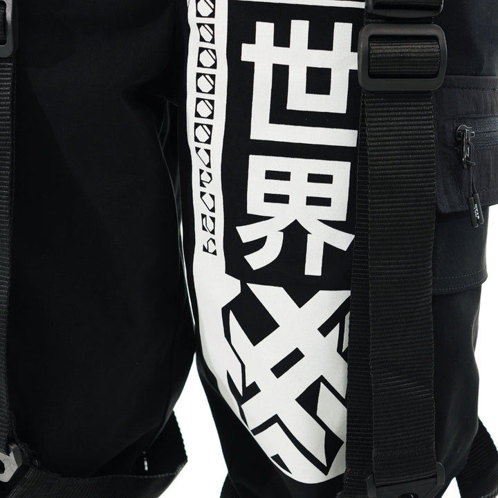 Visuelle Akzente – großer Aufdruck mit den Hieroglyphen TUR auf dem linken Bein und der Schriftzug Samurai mit Logo auf der rechten Seite.