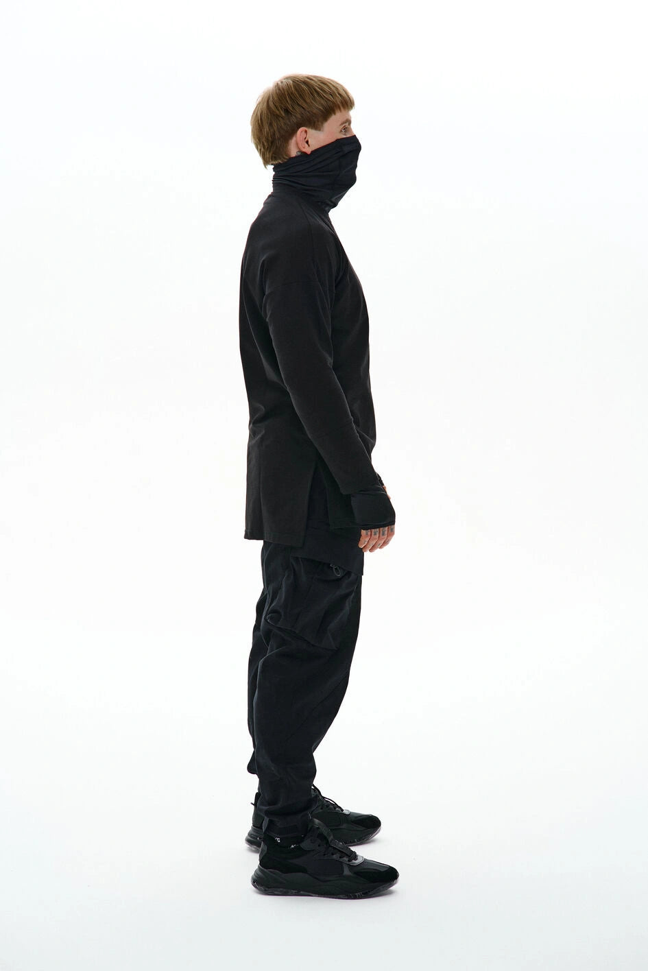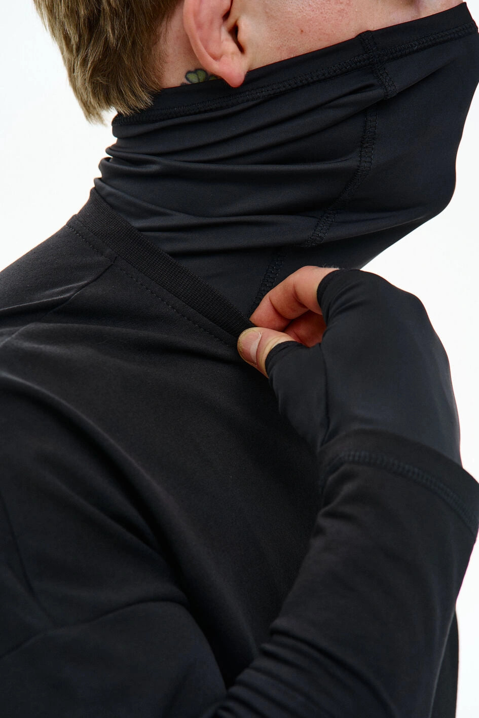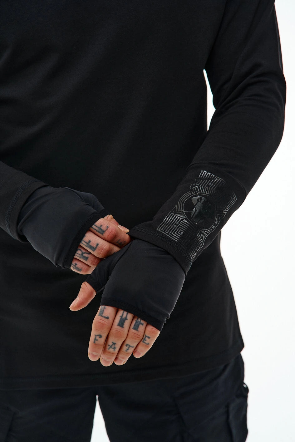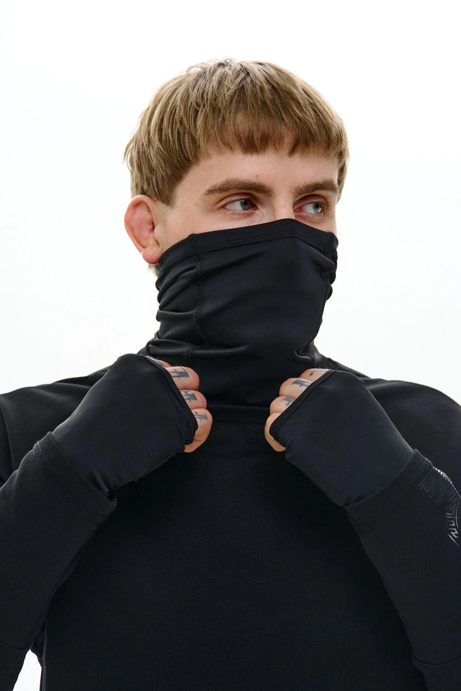 Verlängerter Schnitt mit Schlitz für einfachen Zugang zu den Taschen. Handschuhe mit Bündchen. Eingearbeiteter Buff. Print mit Logo am linken Ärmel.