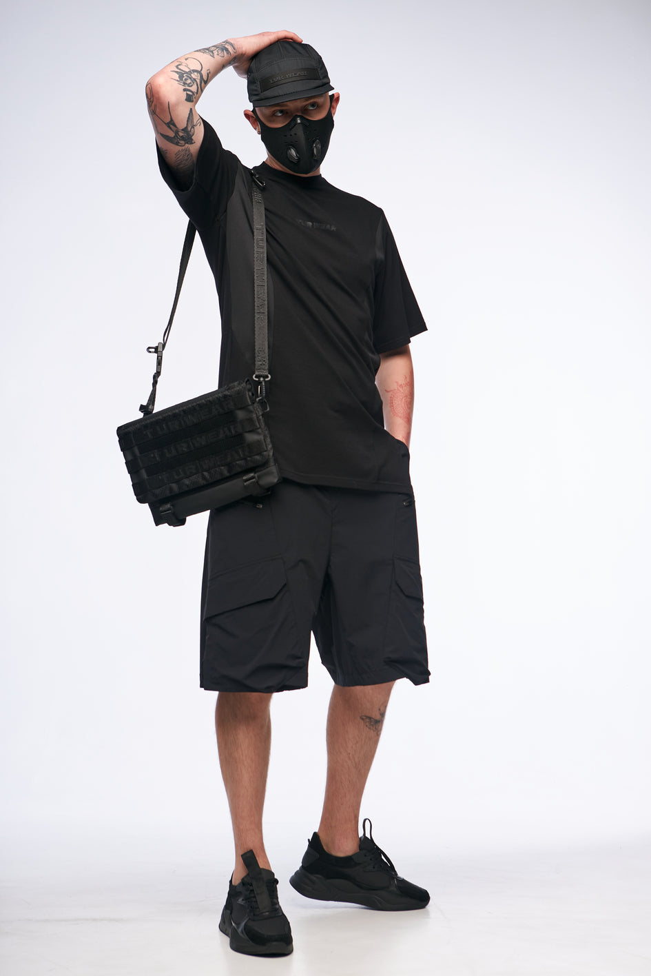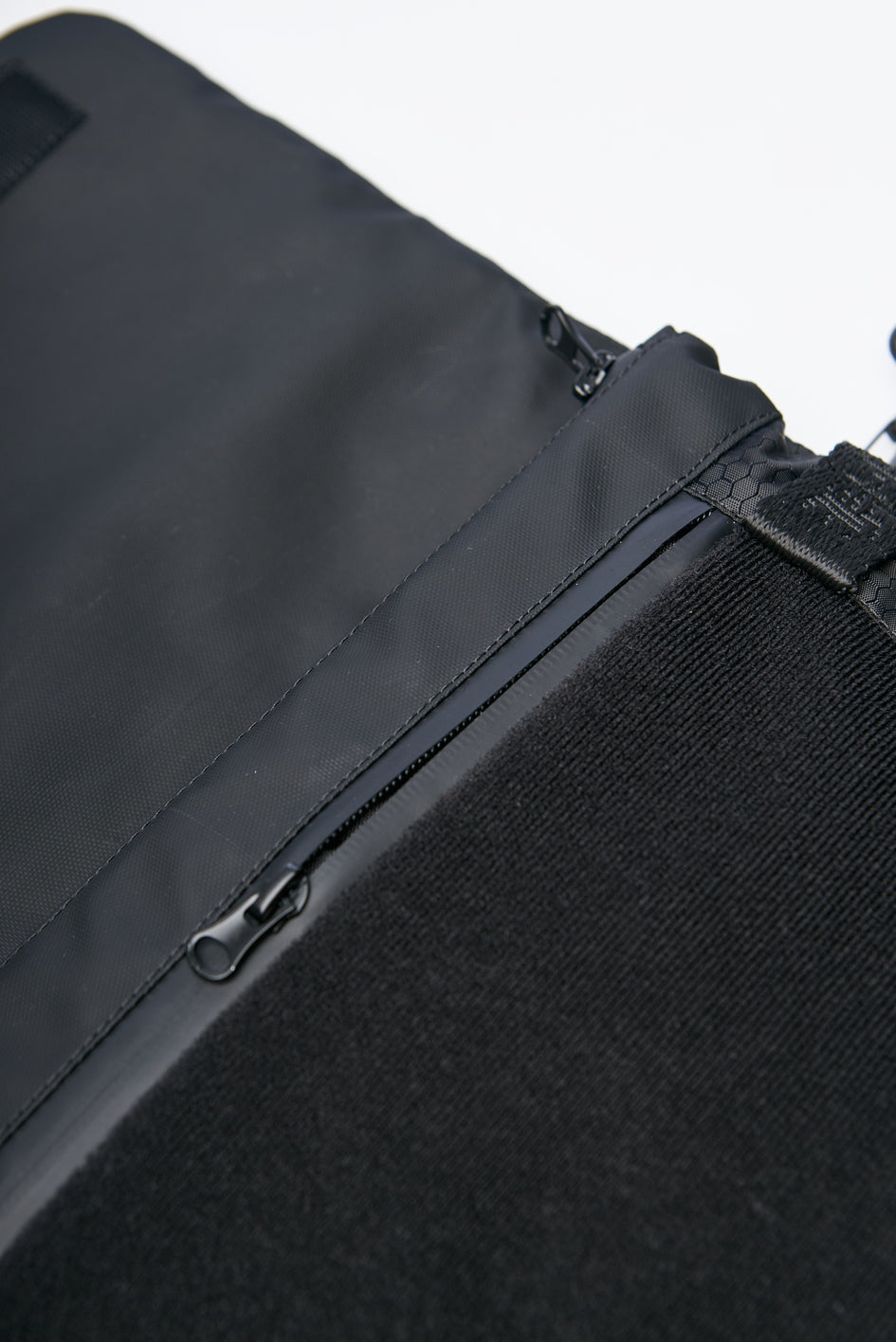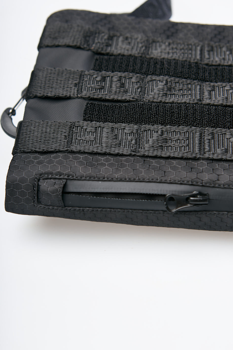 Umhängetasche mit 6 Taschen: Außentasche mit Reißverschluss vorne, Außentasche mit Reißverschluss hinten, Tasche mit Reißverschluss im Deckel, innen eine Tasche über die gesamte Wand sowie zwei kleine Taschen für Kleinigkeiten. Funktionaler Griff mit Karabinern und Entlastungshaken.