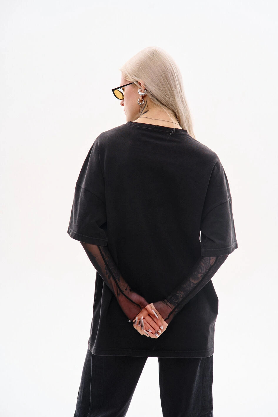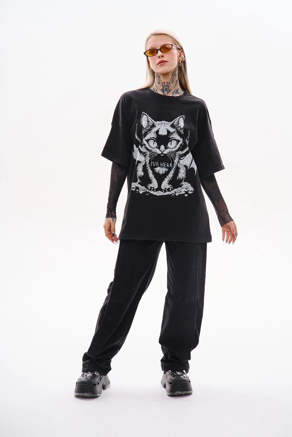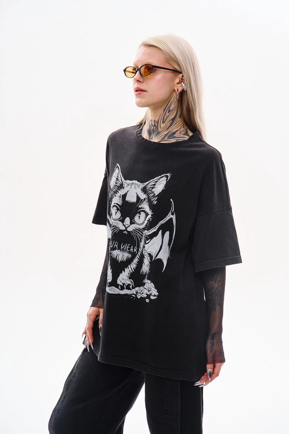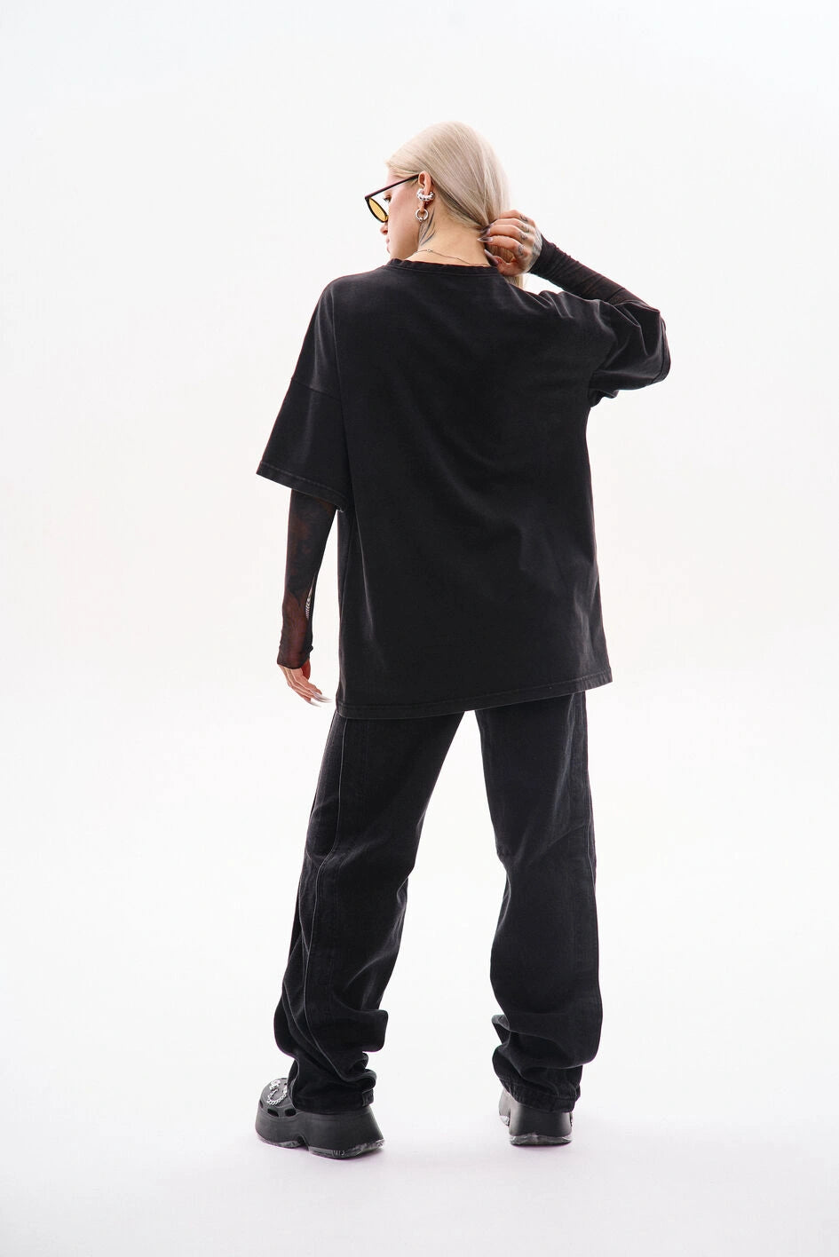 Oversize-T-Shirt mit „gekochtem“ Washed-Effekt – für alle, die Einzigartigkeit im Detail schätzen. Eingesetzte Ärmel und gerippter Ausschnitt sorgen für Komfort und Haltbarkeit. Einheitsgröße, passend für Damengrößen von XS bis L. Ein origineller Print rundet das Design ab und verleiht jedem Outfit Charakter.