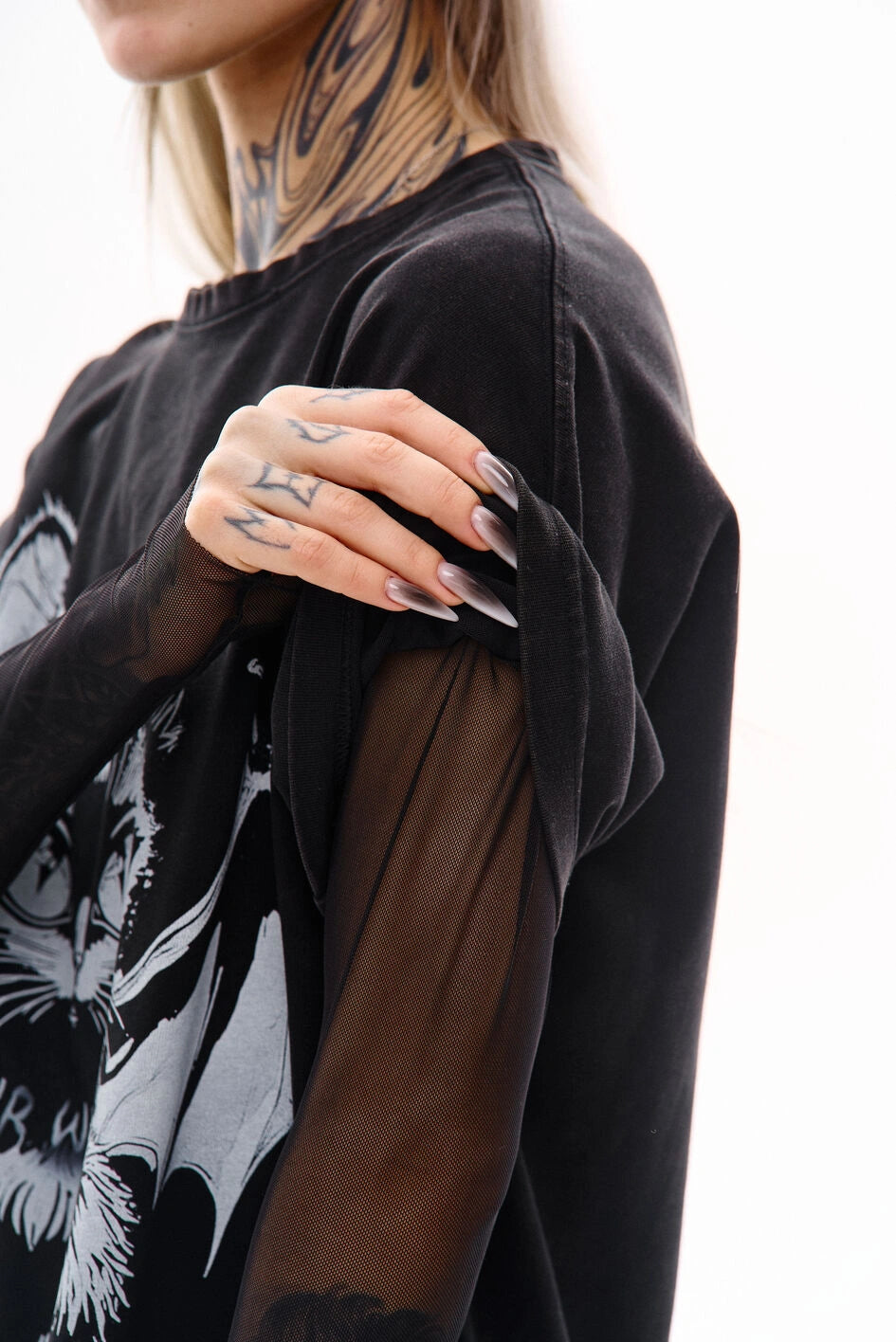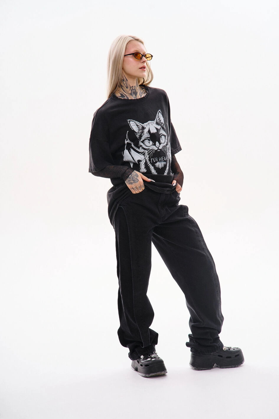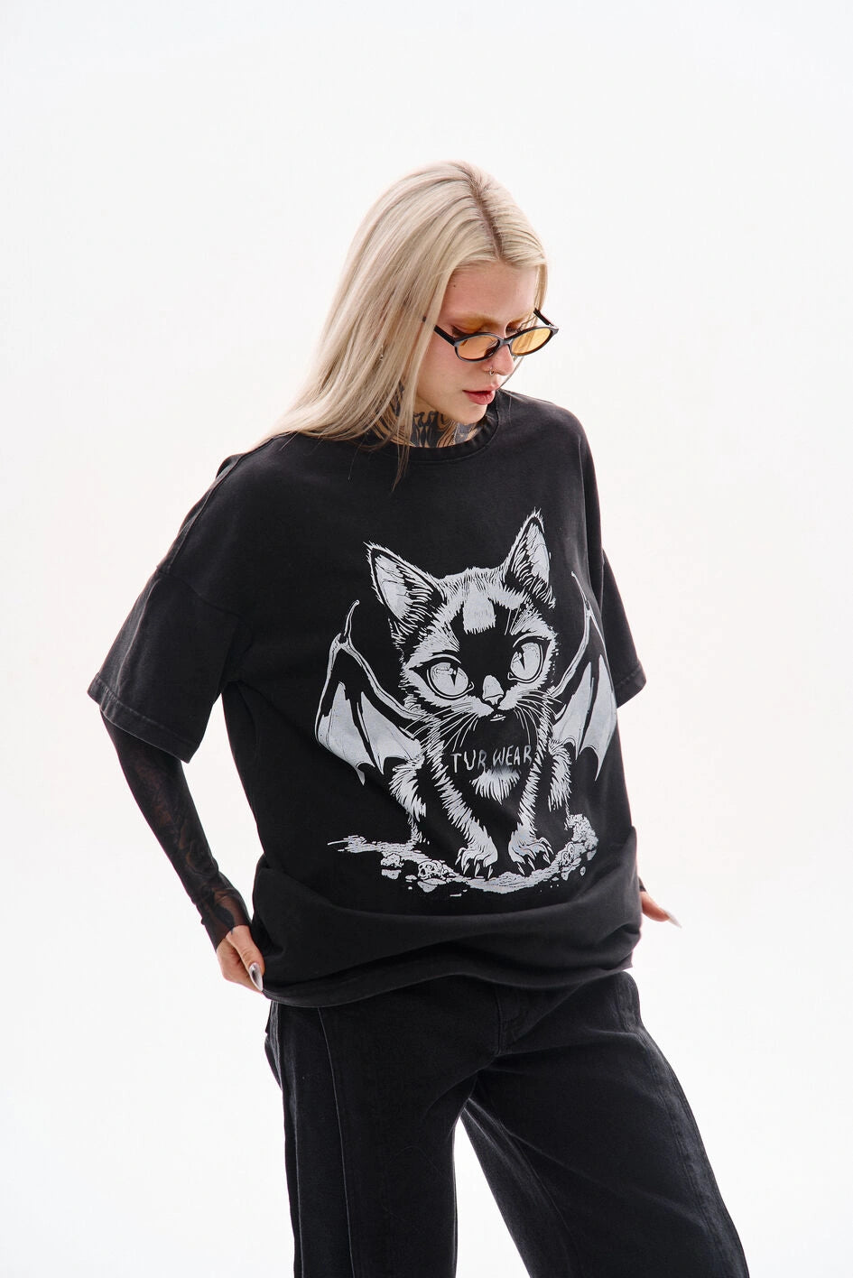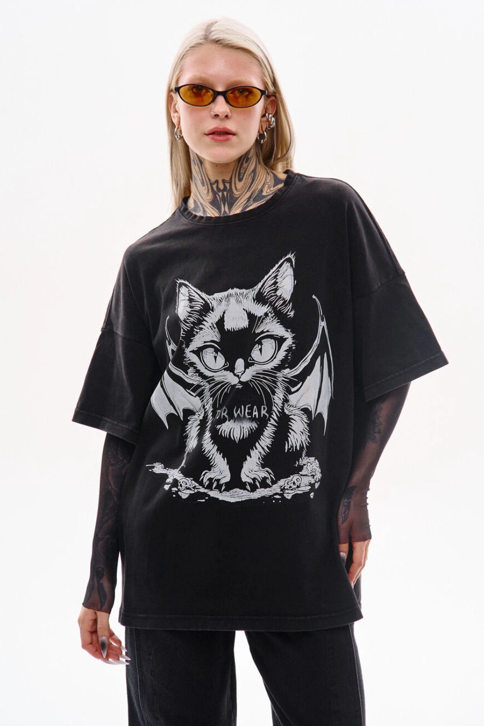 Oversize-T-Shirt mit „gekochtem“ Washed-Effekt – für alle, die Einzigartigkeit im Detail schätzen. Eingesetzte Ärmel und gerippter Ausschnitt sorgen für Komfort und Haltbarkeit. Einheitsgröße, passend für Damengrößen von XS bis L. Ein origineller Print rundet das Design ab und verleiht jedem Outfit Charakter.