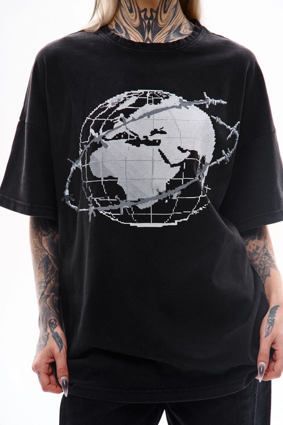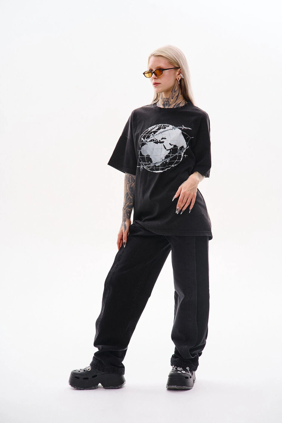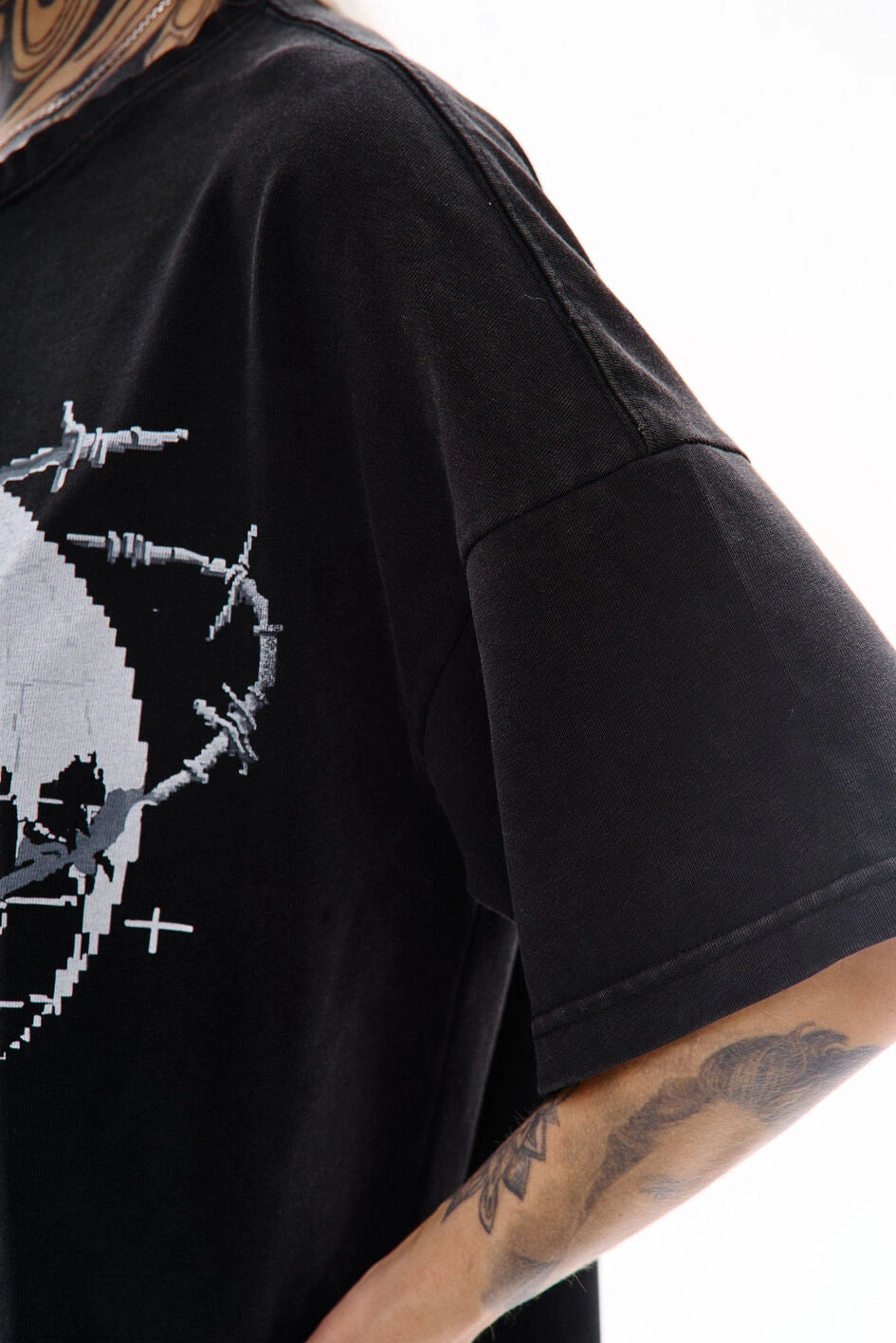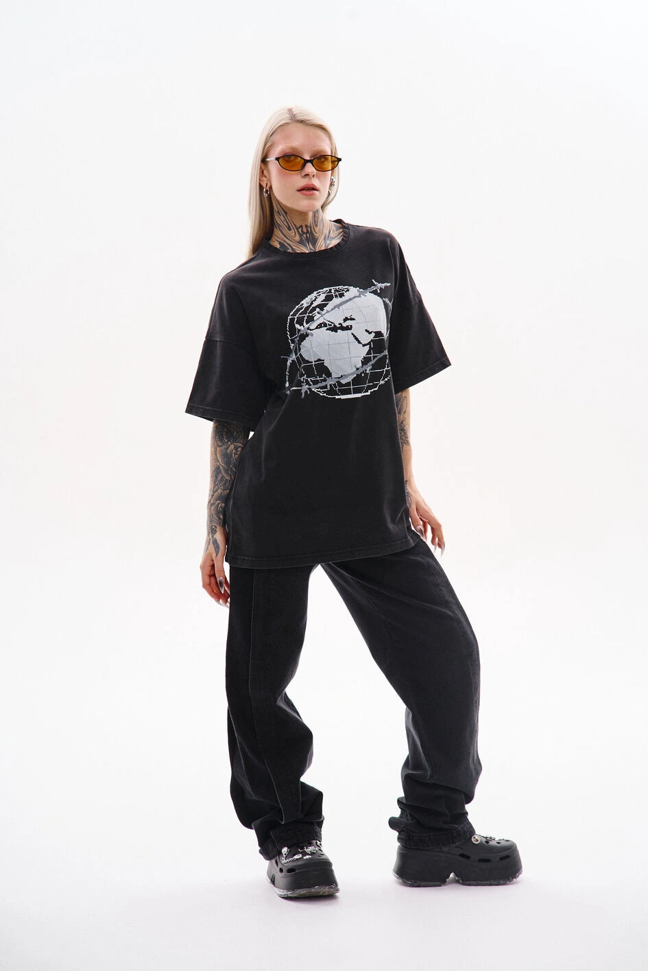 Oversize-T-Shirt mit „gekochtem“ Washed-Effekt – für alle, die Einzigartigkeit im Detail schätzen. Eingesetzte Ärmel und gerippter Halsausschnitt sorgen für Komfort und Langlebigkeit. Universelle Größe, passend für Damengrößen von XS bis L. Ein origineller Print vervollständigt das Konzept und verleiht jedem Outfit Charakter.