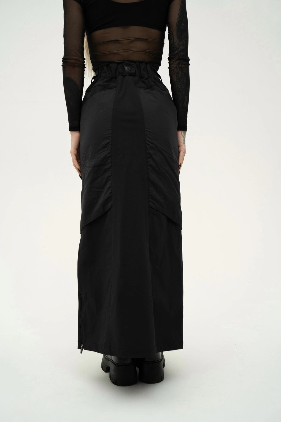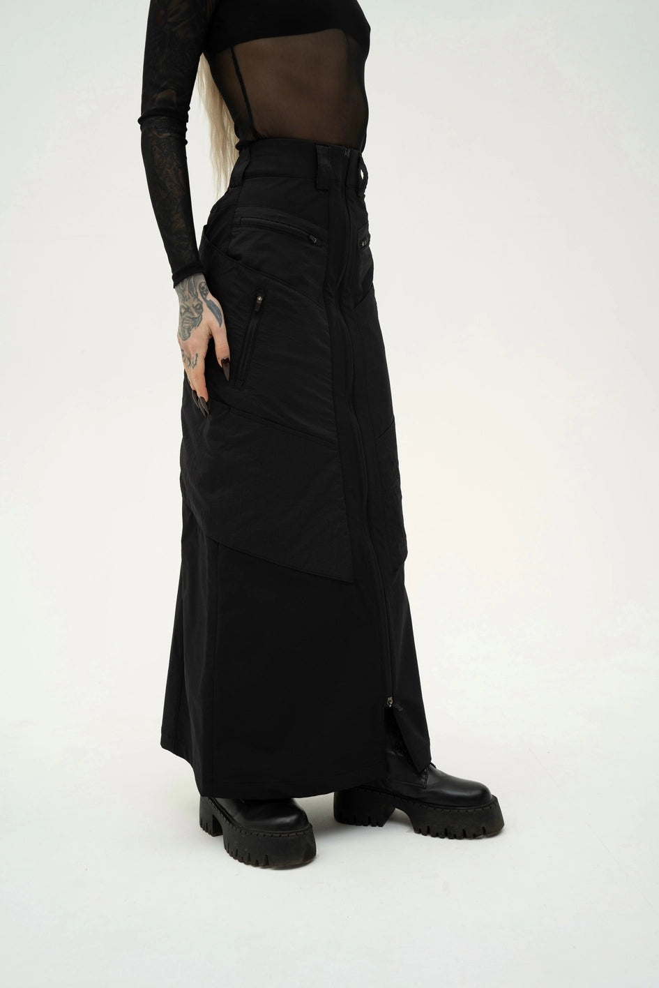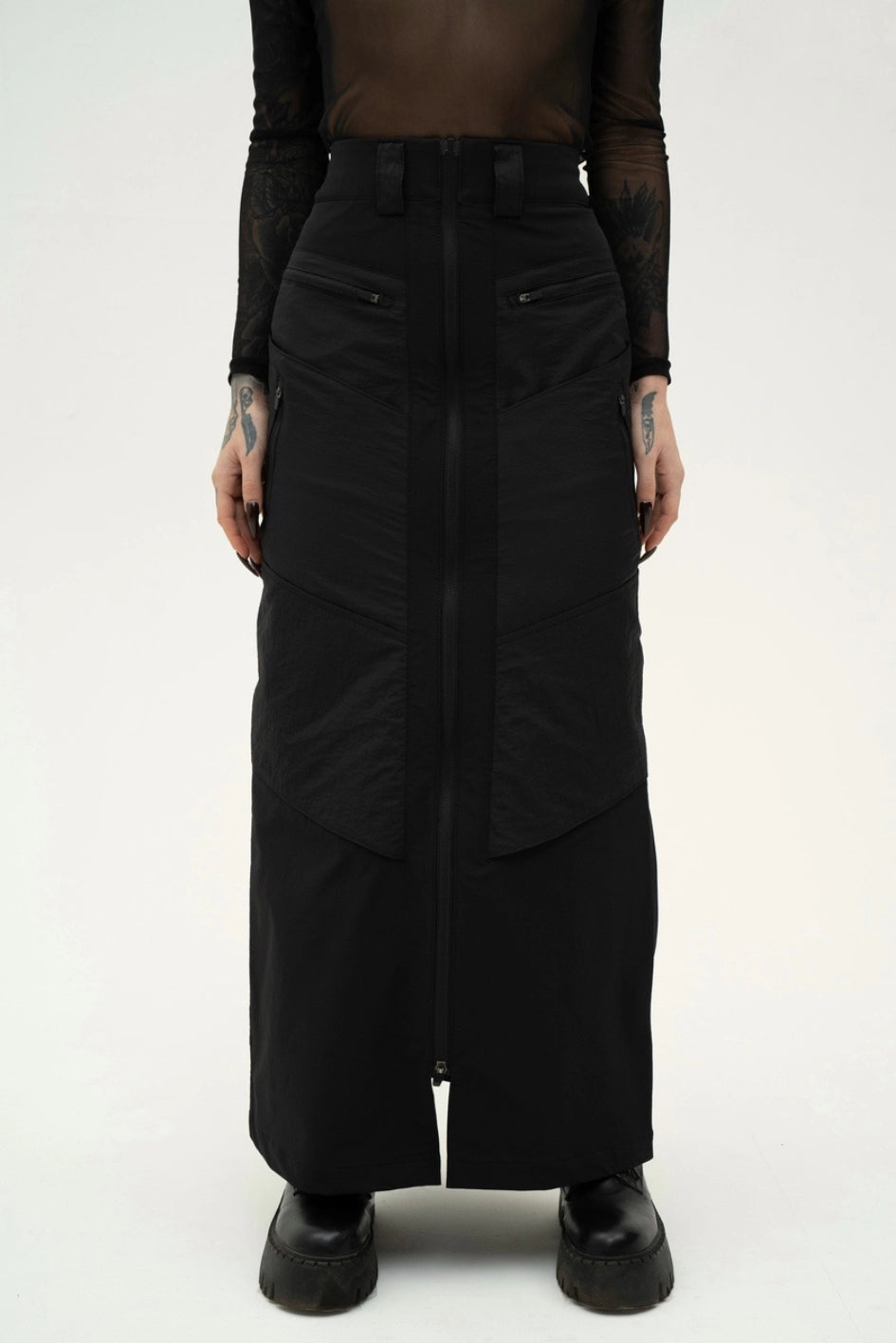 Maxirock aus technischem CPN-Material, das Polyesterfasern kombiniert: die Außenseite ähnelt einem weichen Mantelstoff, die Innenseite hat eine Strickbasis. Das Modell ist mit aufgesetzten Taschen aus strukturierter Crinkle-Beschichtung ausgestattet, die einen stilvollen Look verleihen. Auf der Vorderseite befindet sich ein Reißverschluss mit Doppel-Schieber, auf der linken Seite ein zusätzlicher Reißverschluss, der einen Schlitz ermöglicht. Der Rock verfügt über 4 aufgesetzte Reißverschlusstaschen und 2 Beuteltaschen. Mit Gürtelschlaufen und einer Markenstickerei auf der Rückseite. Die Innennähte sind für Langlebigkeit mit Einfassband verarbeitet.