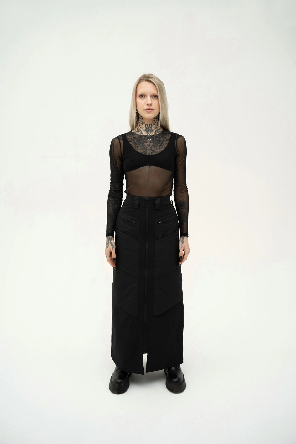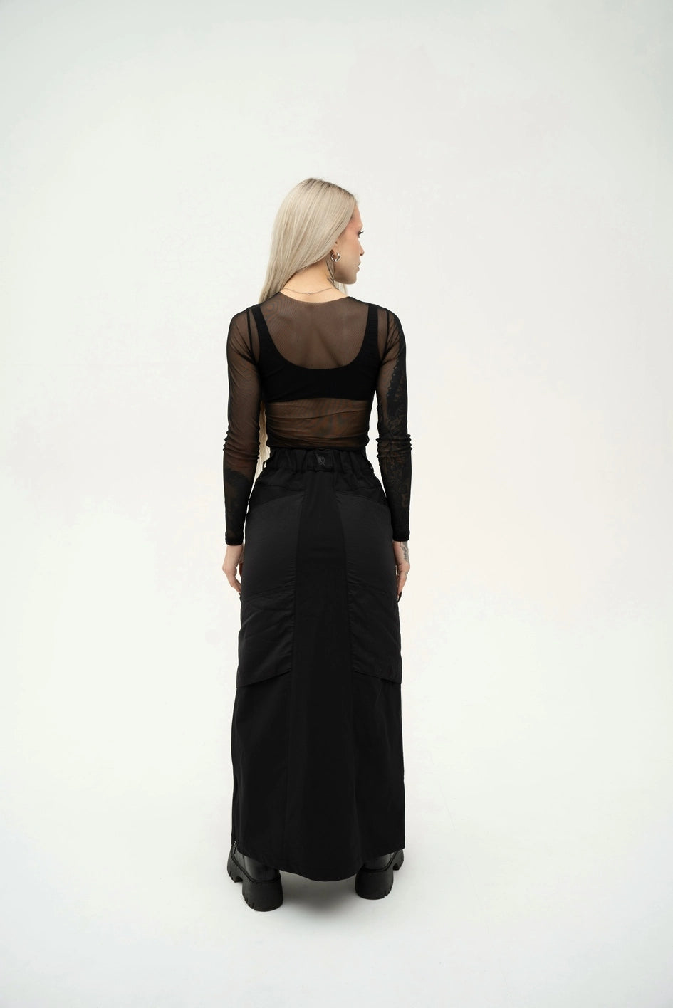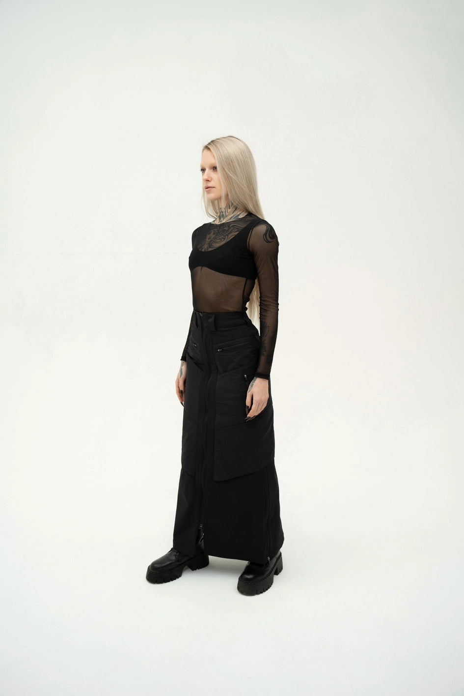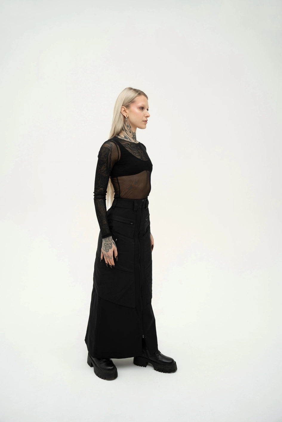 Maxirock aus technischem CPN-Material, das Polyesterfasern kombiniert: die Außenseite ähnelt einem weichen Mantelstoff, die Innenseite hat eine Strickbasis. Das Modell ist mit aufgesetzten Taschen aus strukturierter Crinkle-Beschichtung ausgestattet, die einen stilvollen Look verleihen. Auf der Vorderseite befindet sich ein Reißverschluss mit Doppel-Schieber, auf der linken Seite ein zusätzlicher Reißverschluss, der einen Schlitz ermöglicht. Der Rock verfügt über 4 aufgesetzte Reißverschlusstaschen und 2 Beuteltaschen. Mit Gürtelschlaufen und einer Markenstickerei auf der Rückseite. Die Innennähte sind für Langlebigkeit mit Einfassband verarbeitet.
