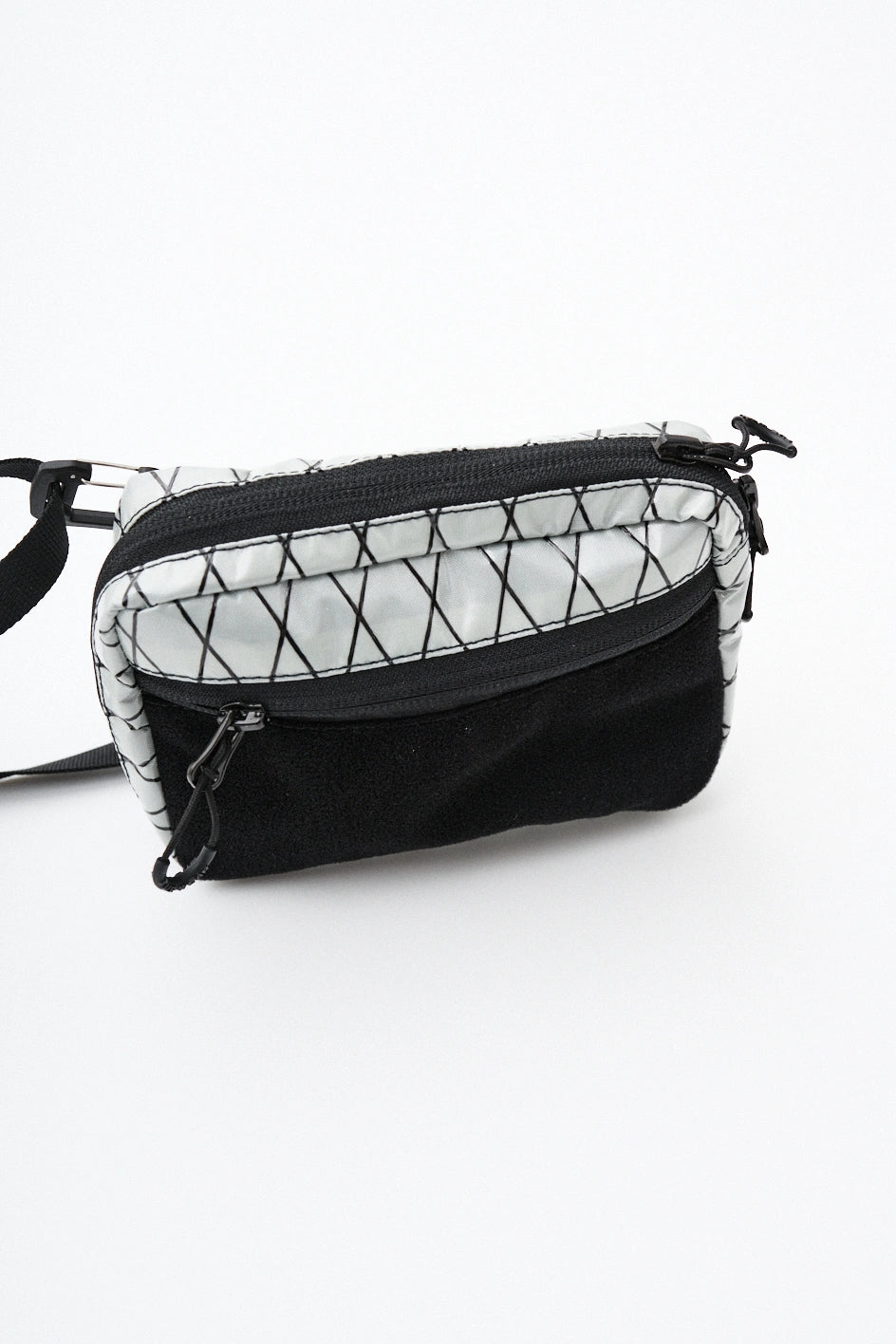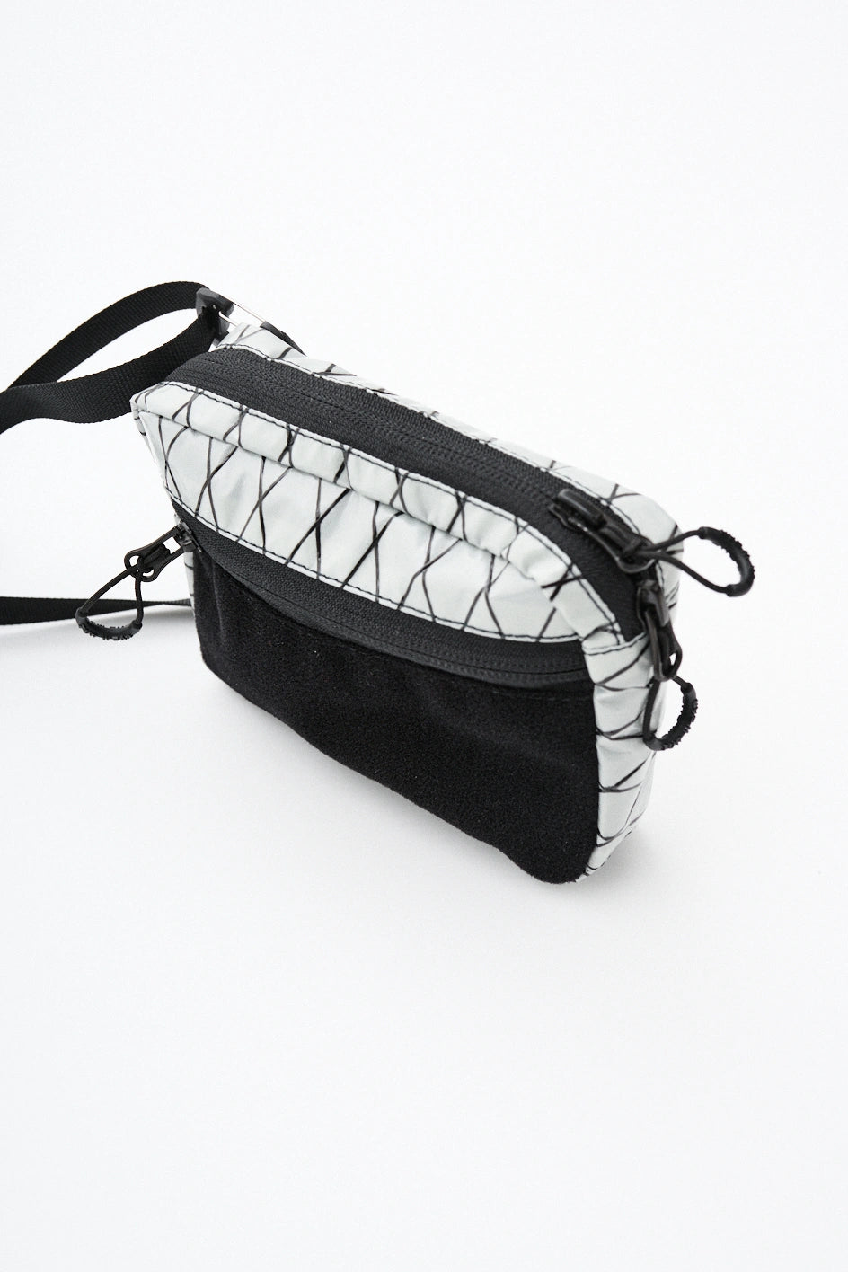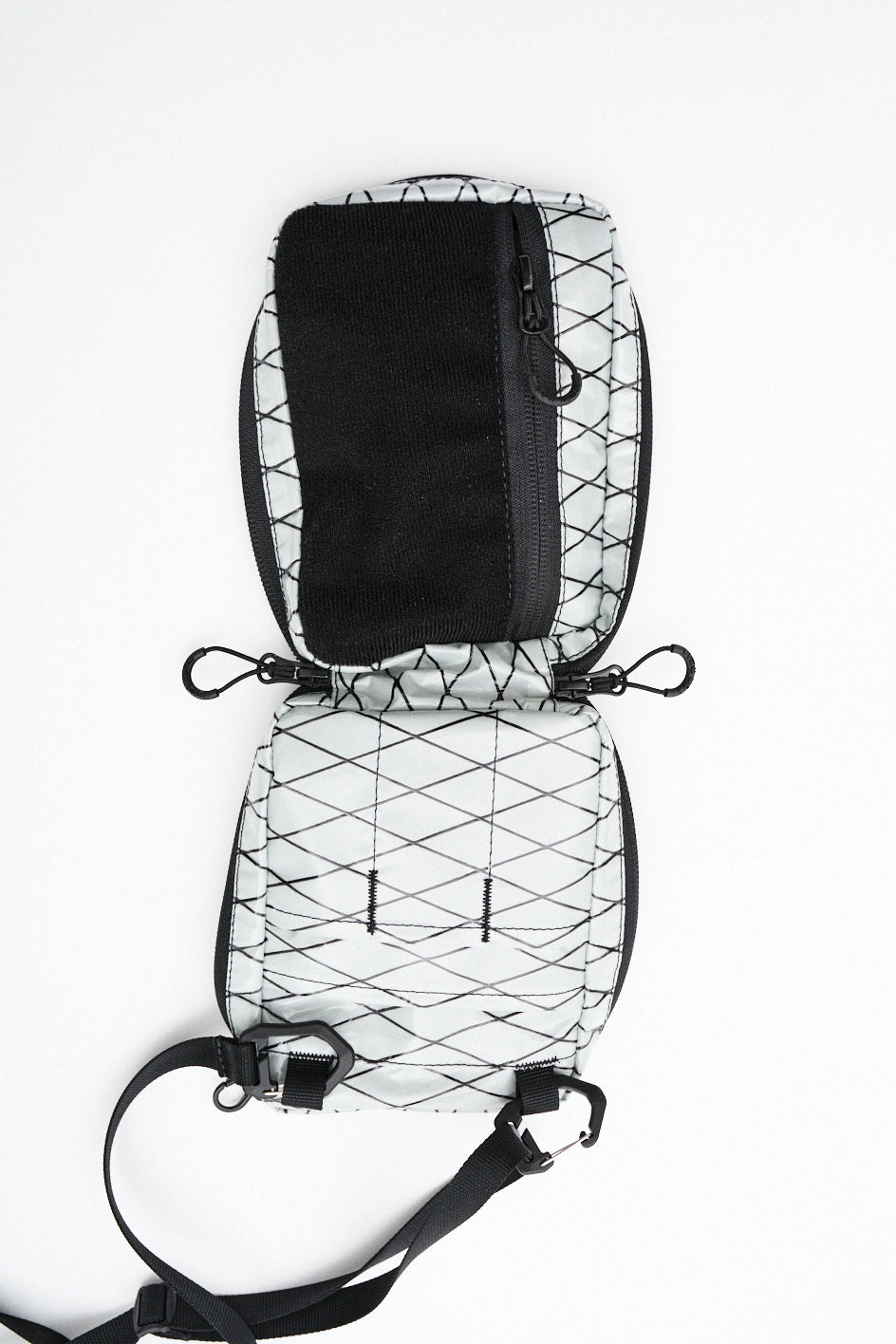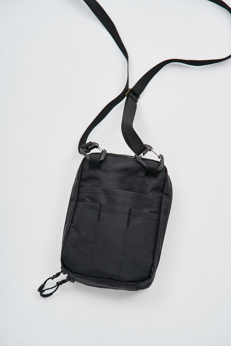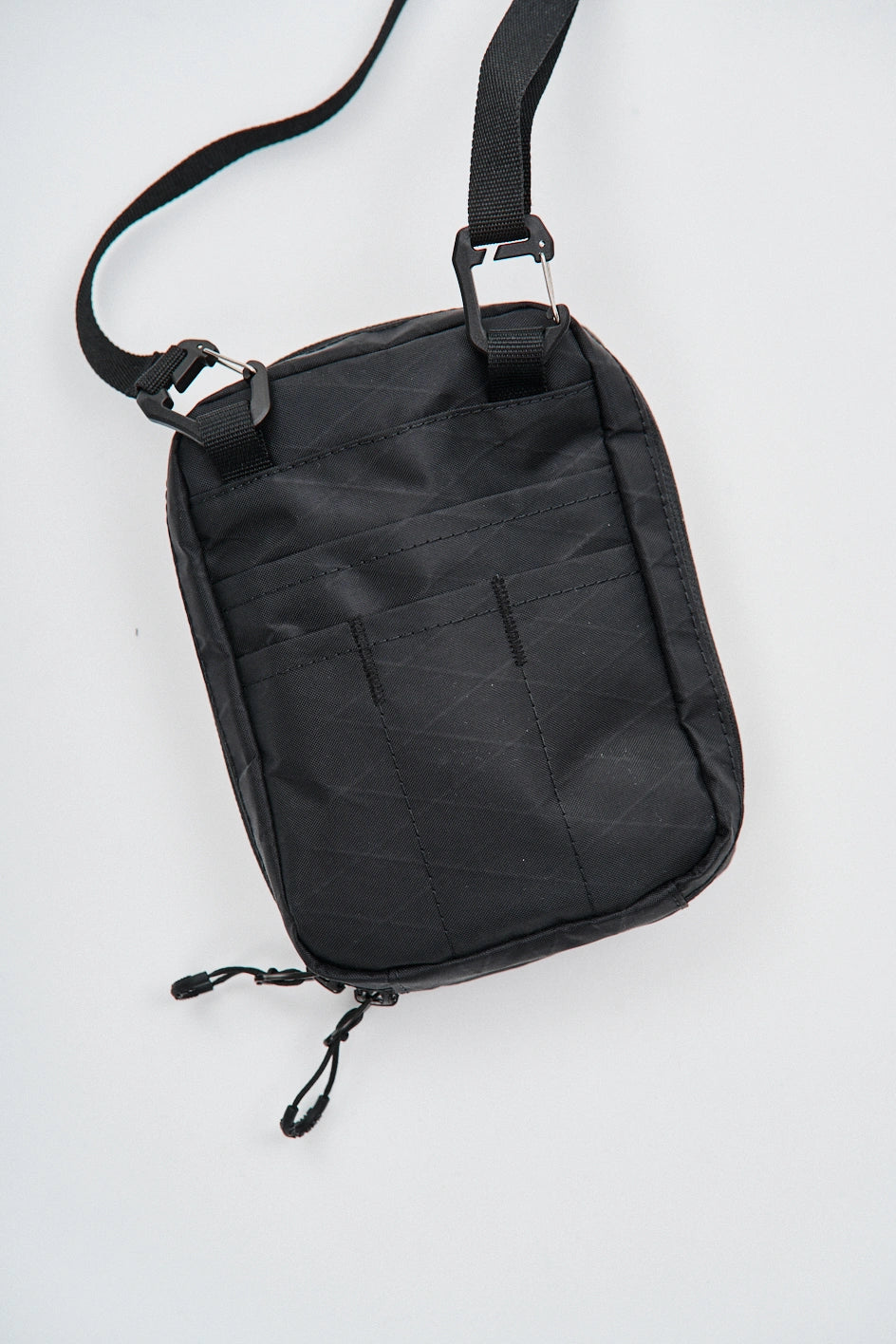 Die Tasche ist aus technischem XPac-Gewebe auf Nylonbasis gefertigt. Das Material hat eine dichte, laminierte Struktur, eine matte Oberfläche und eine charakteristische technische Textur. Der Stoff ist widerstandsfähig gegen Abrieb, Risse und mechanische Belastungen, verformt sich nicht und behält seine Form auch bei täglicher Nutzung. Dank der laminierten Konstruktion lässt das Material keine Feuchtigkeit durch und schützt den Inhalt zusätzlich vor Schmutz. Das Innenfutter besteht aus Oxford-Gewebe, das die Reibung reduziert und einen einfachen Zugriff auf Gegenstände ermöglicht. Auf der Vorderseite befindet sich ein Velcro-Gewebe zum Anbringen von Patches oder Identifikationselementen. Das Hauptfach wird mit einem umgekehrten Reißverschluss mit reversiblen Schiebern geschlossen, wodurch sich die Tasche von verschiedenen Seiten öffnen lässt. In der Konstruktion werden Beschläge von Woojin Plastic verwendet, die für ihre Widerstandsfähigkeit und Langlebigkeit bekannt sind. Die Tasche ist mit einem Gurtband von 1,5 cm Breite, einem Kompressionshaken, einem Zweischlitz-Regulator, elastischen Bändern zur Befestigung von Gegenständen sowie einem Puller in Form eines Halb-D-Rings ausgestattet. Im Inneren befindet sich ein Karabiner für Schlüssel, mit dem kleine Accessoires schnell befestigt werden können.