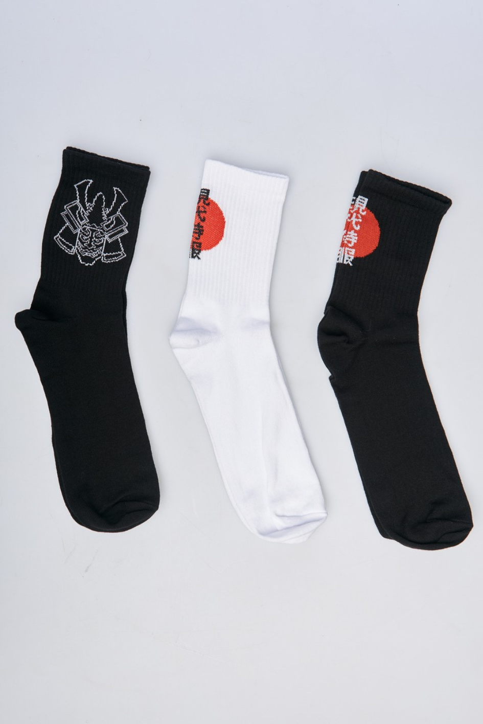 Im Set 3 Paar: zwei schwarze und ein weißes. Alle mit unterschiedlichen Prints.