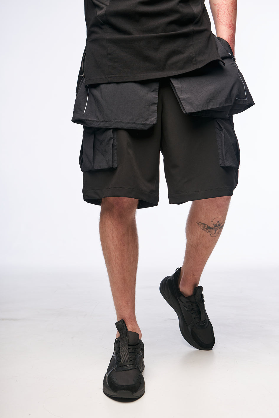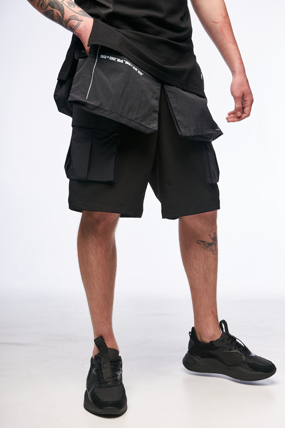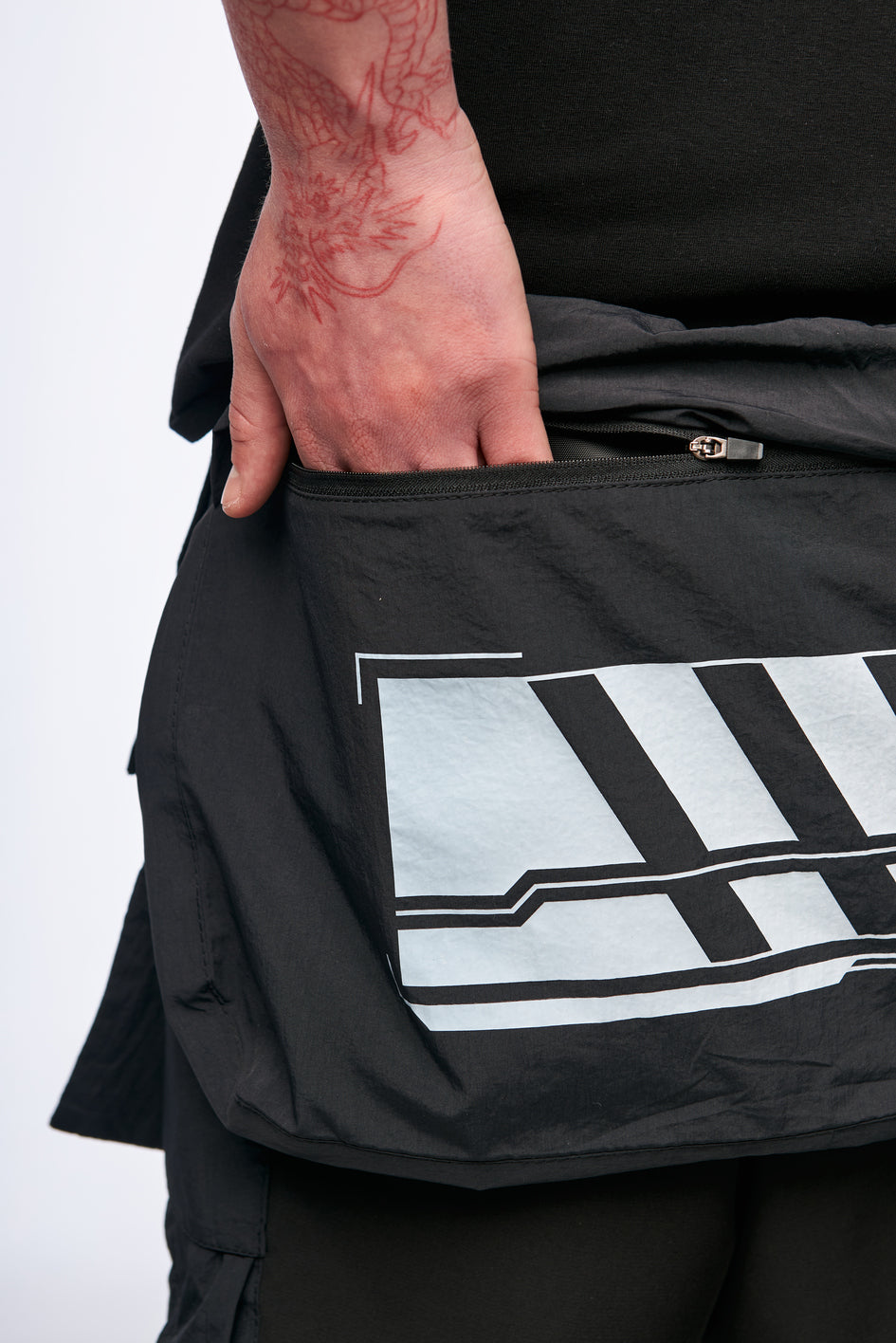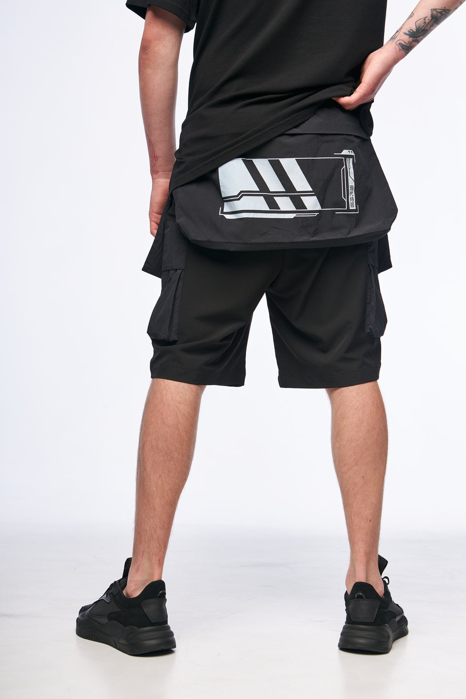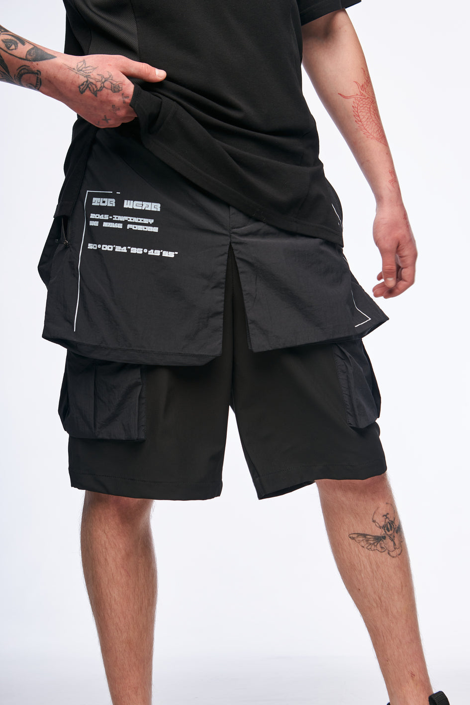 Leichter, elastischer Stoff sorgt für Komfort und eine flexible Passform. Aufgesetzte Taschen vorne und hinten mit Reißverschlüssen sowie eine große Beuteltasche ermöglichen bequemes Verstauen von Gegenständen. Der Effekt einer Samurai-Rüstung wird durch die hervorstehenden aufgesetzten Taschen erzielt. Die oberen Taschen sind aus leichtem, elastischem, wasserabweisendem Material gefertigt und bieten Komfort im Sommer. Taschen mit Prints verleihen zusätzlichen Style. Beidseitiges Taillenregulierungssystem mit Gummizug sorgt für eine bessere Anpassung an die Figur.