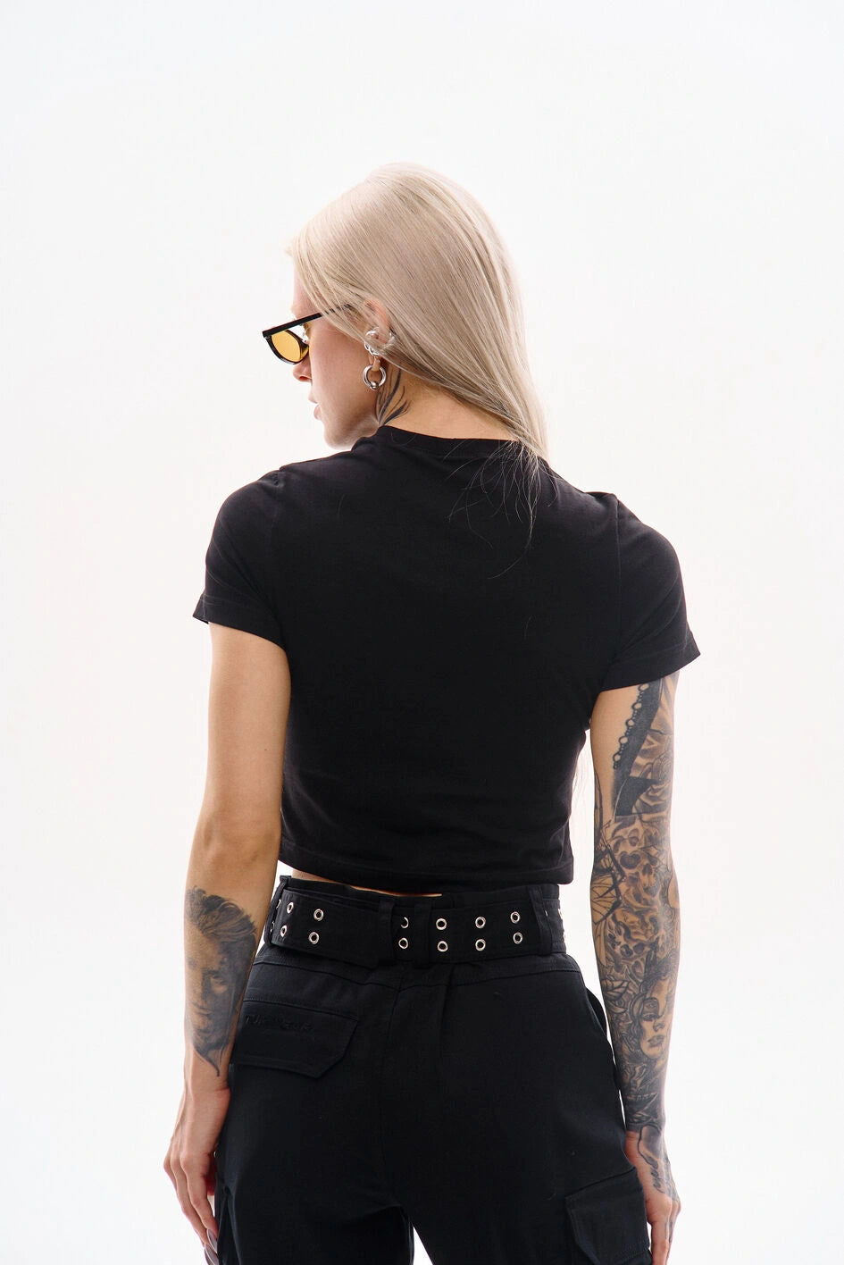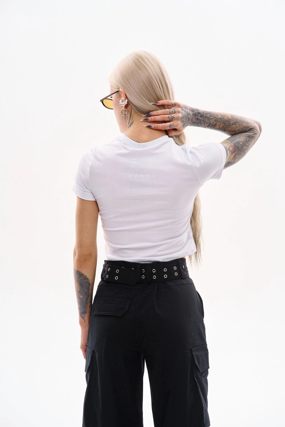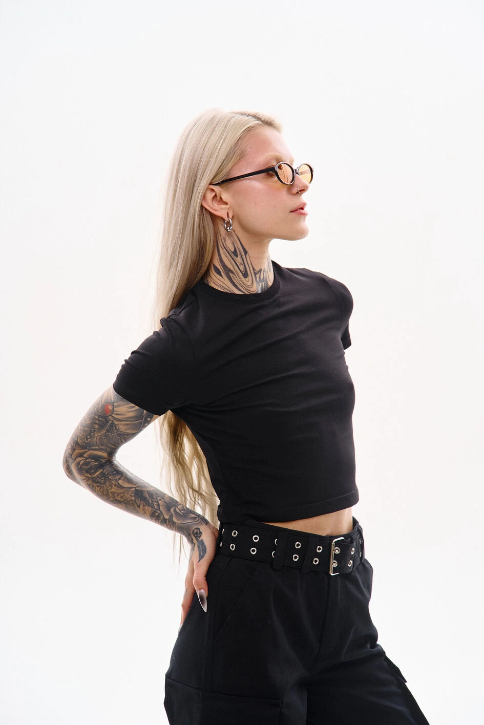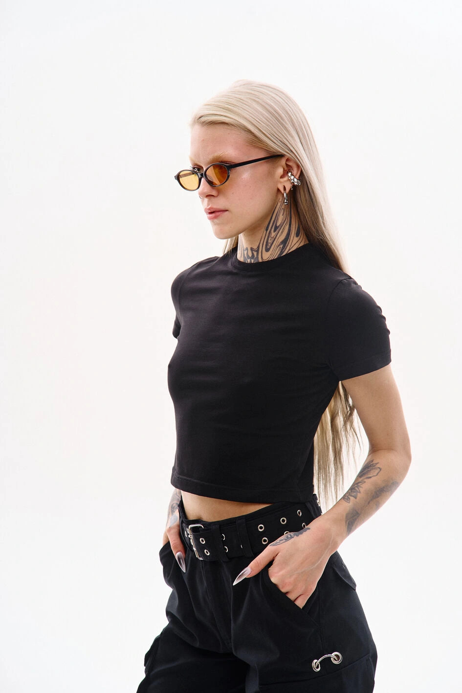 Basic Slim Fit Top mit kurzen Ärmeln. Der Ausschnitt ist gerippt.
