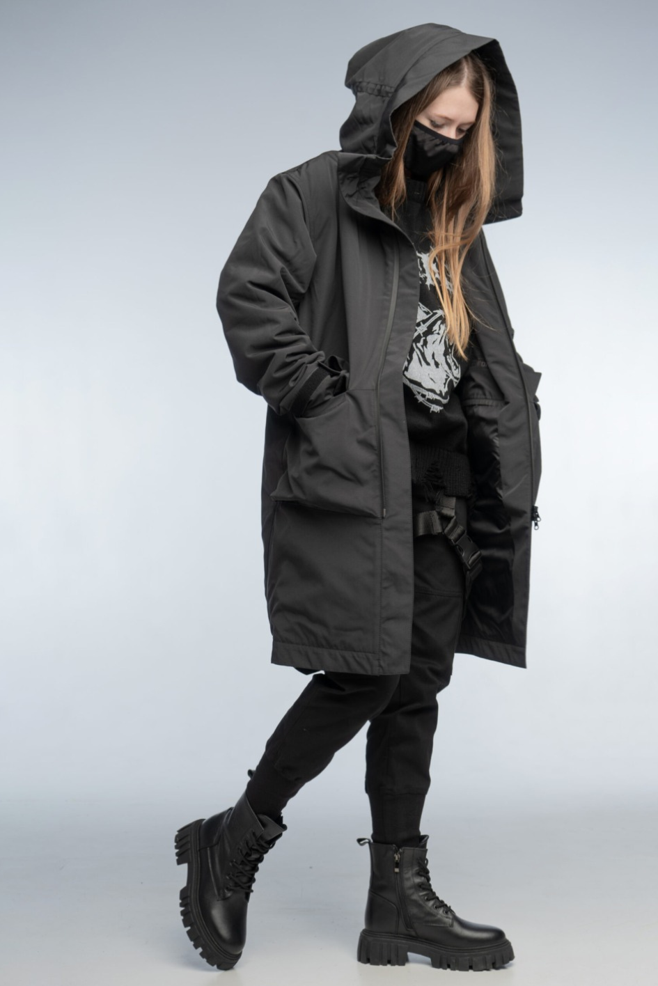 Langer Frühlingsparka mit praktischem und modernem Design. Seitliche Reißverschlüsse erhöhen den Tragekomfort. Tiefe, verstellbare Kapuze schützt optimal vor Wind. Der Parka verfügt über zwei aufgesetzte Vordertaschen, eine zusätzliche Kopfhörertasche unter einer Patte sowie ein MOLLE-System zum Befestigen zusätzlicher Accessoires. Innen befindet sich eine Reißverschlusstasche. An den Ärmeln sind verstellbare Klettpatten angebracht, die eine Anpassung der Ärmelweite ermöglichen. Für noch mehr Komfort ist die Jacke mit einem Zwei-Wege-Reißverschluss ausgestattet.