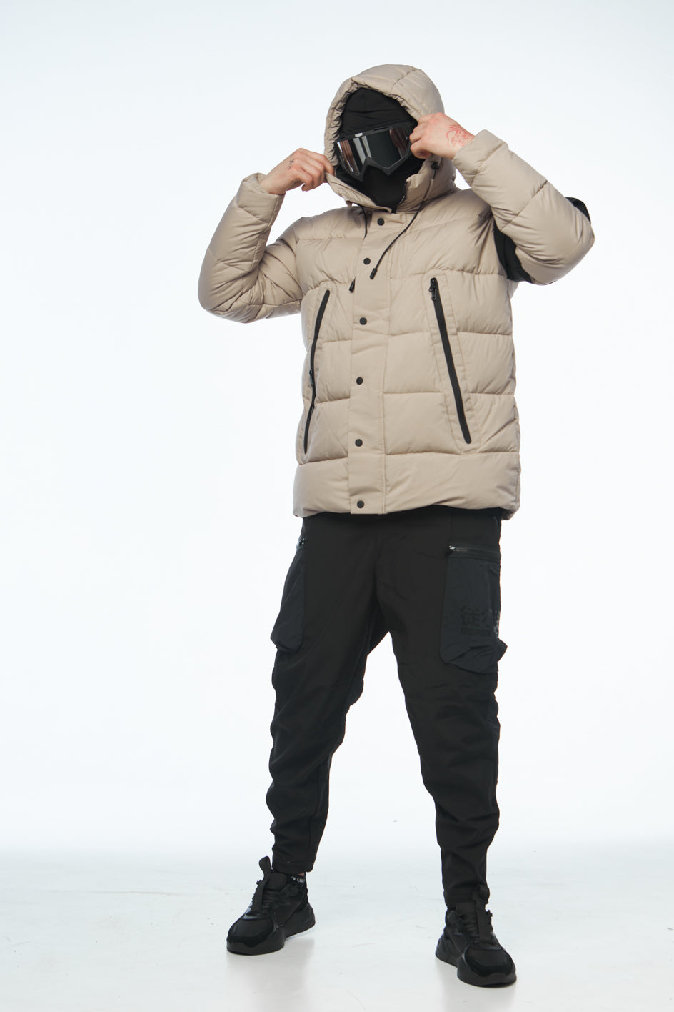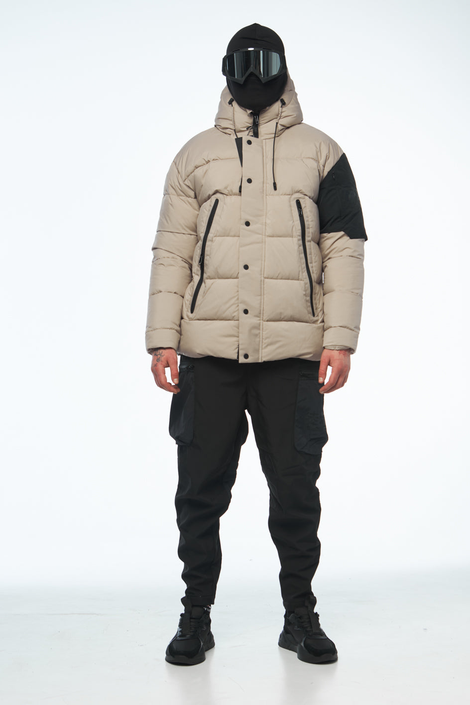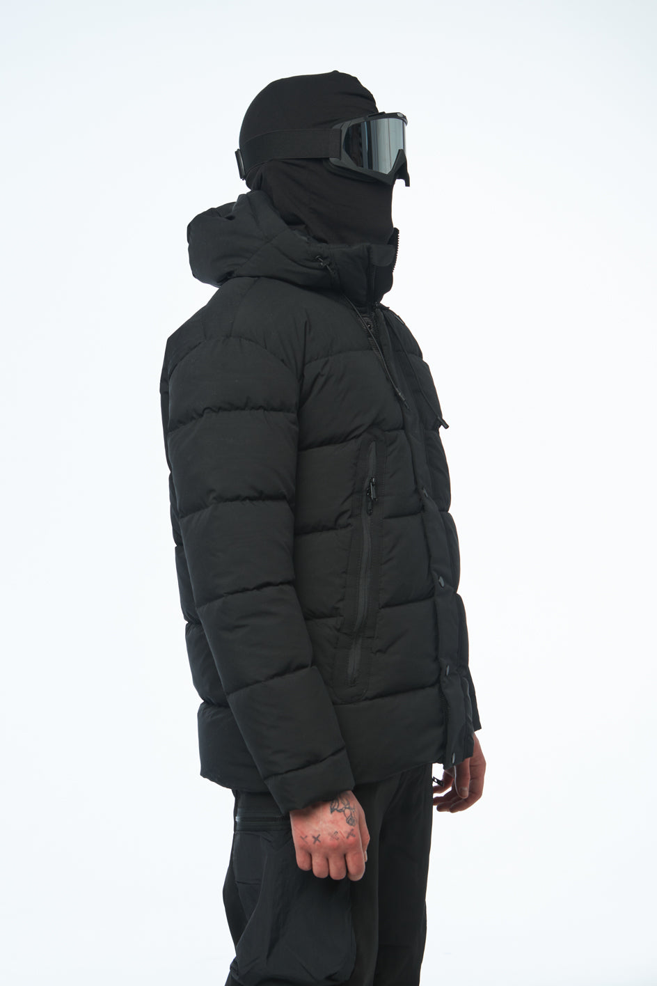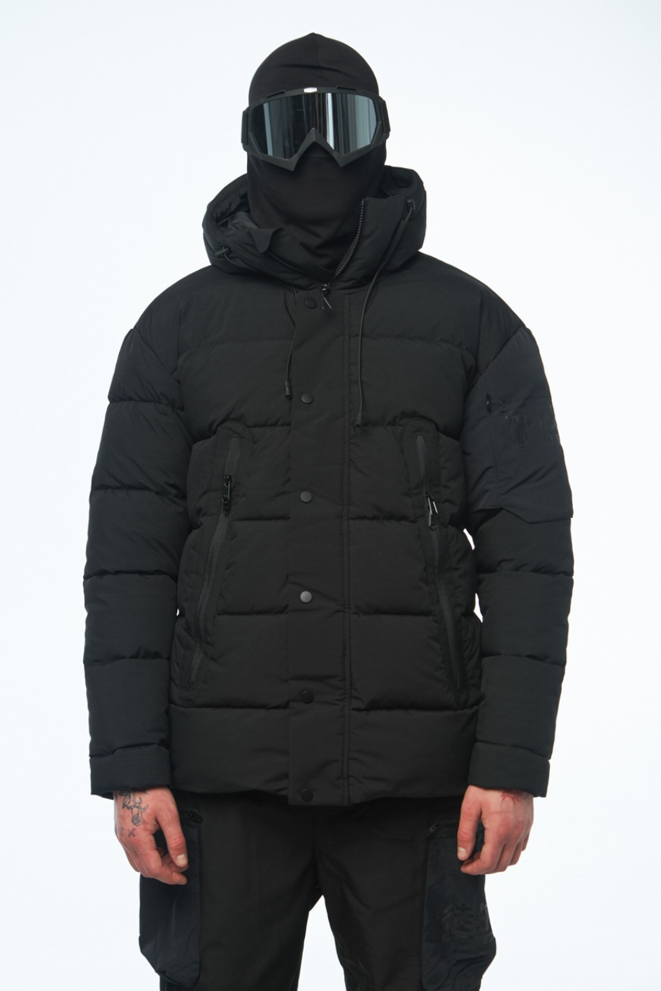Wasserabweisender Artic-Stoff, Füllung aus Synthetikdaunen, Mikrofleece in den Taschen, YKK-Reißverschlüsse, Futter aus Polyester.