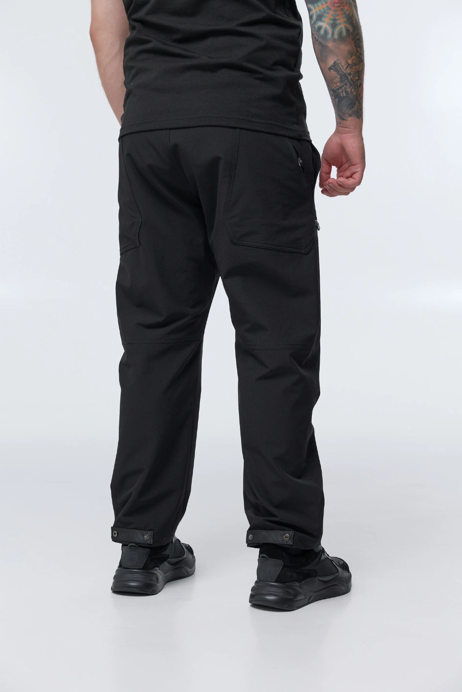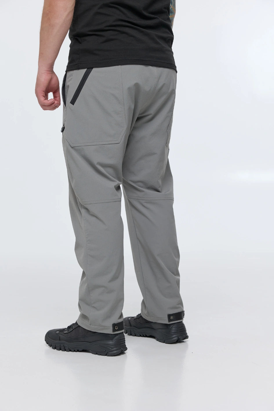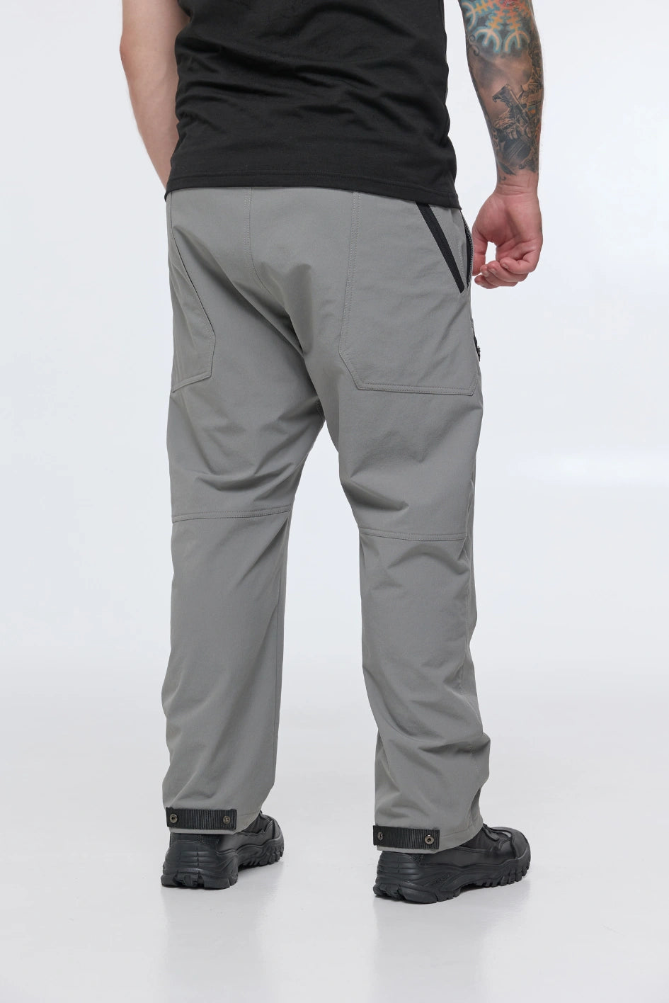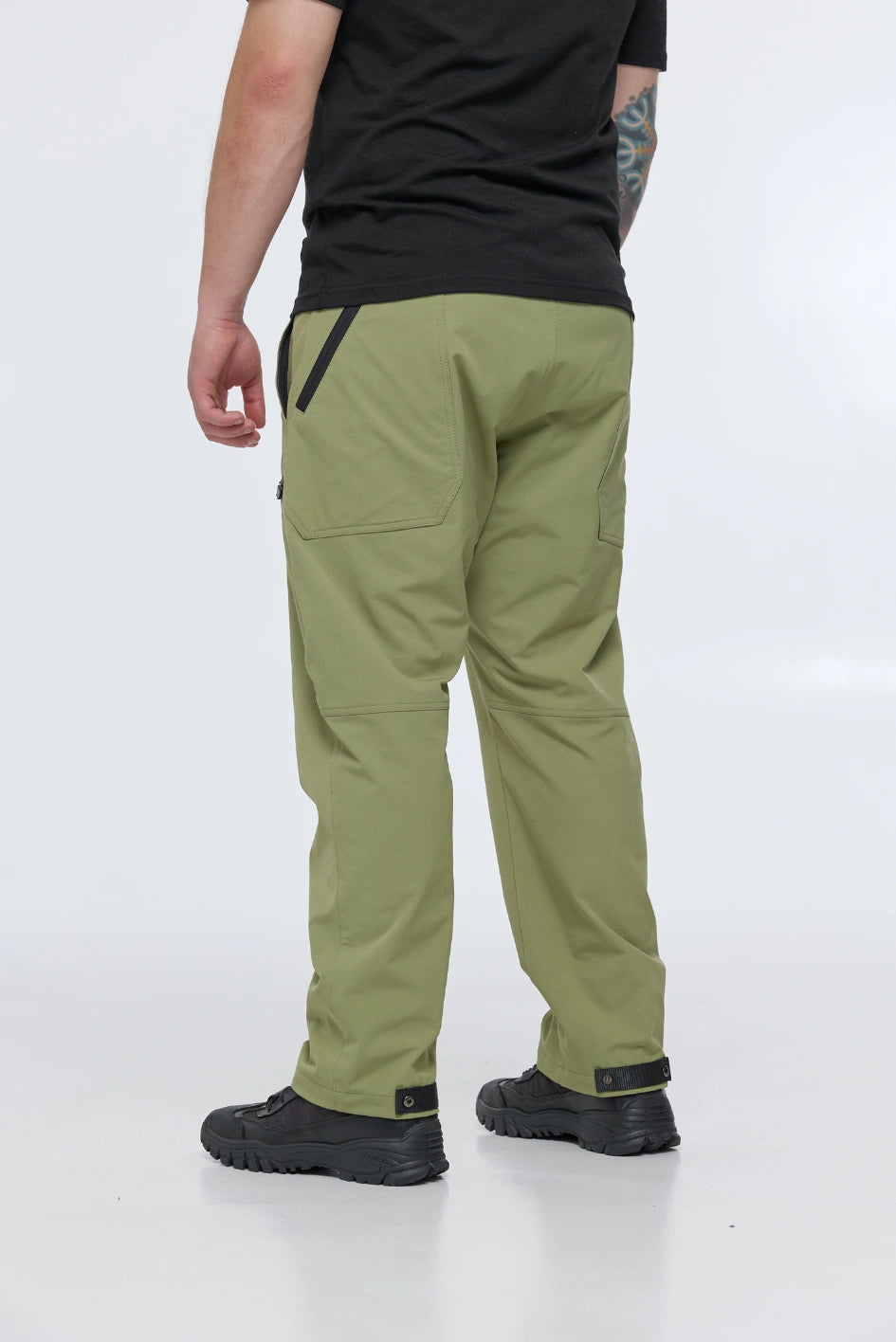 Loose-fit pants with a straight cut, belt loops, and an integrated elastic waistband. On the right side under the waistband — a half-ring for attaching carabiners, keychains, or pouches. The fly is equipped with a YKK zipper. The model features 7 pockets: two top pockets, two back zippered pockets, two front zippered pockets, and a separate phone pocket on the right side. The front is constructed with cuts and pleats in the knee area, and at the lower back part — a strap with buttons for adjusting the leg width. The model belongs to the Reborn collection and is the second generation of Apache pants, which were a bestseller of the brand between 2015–2020.