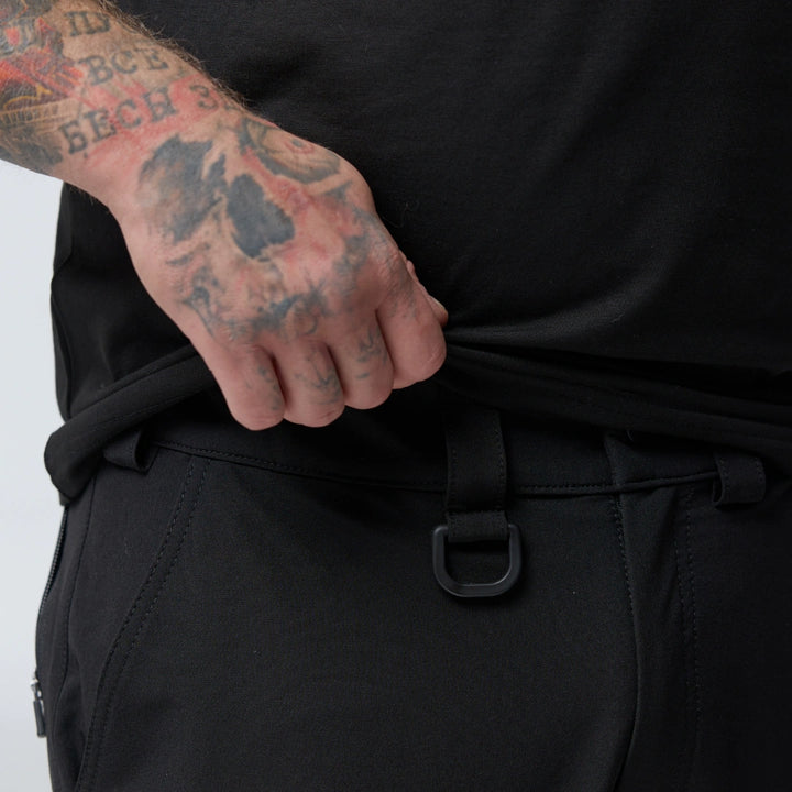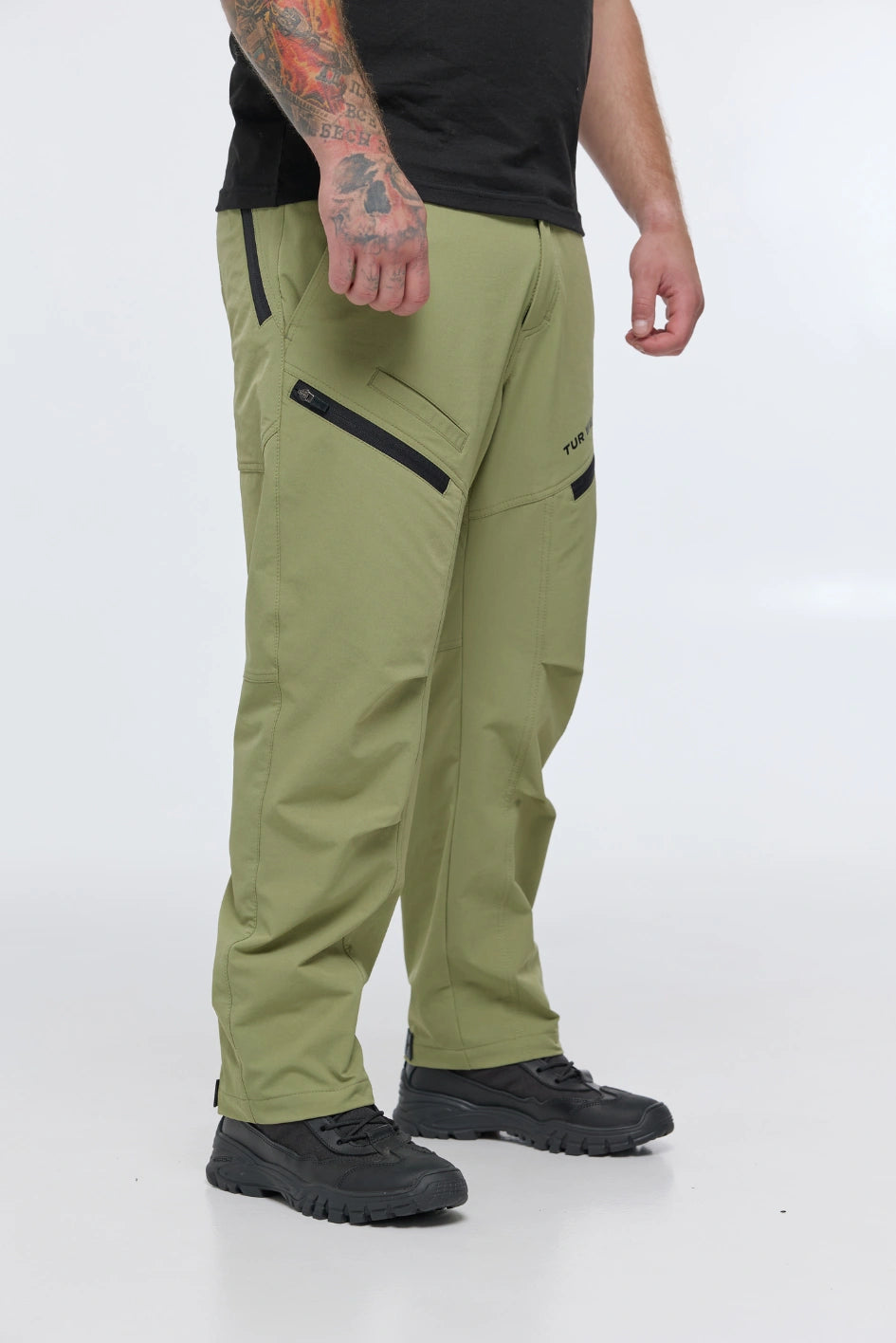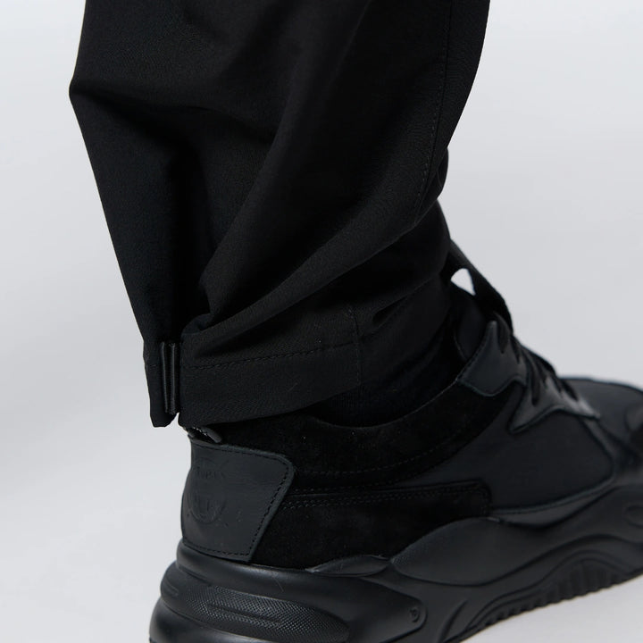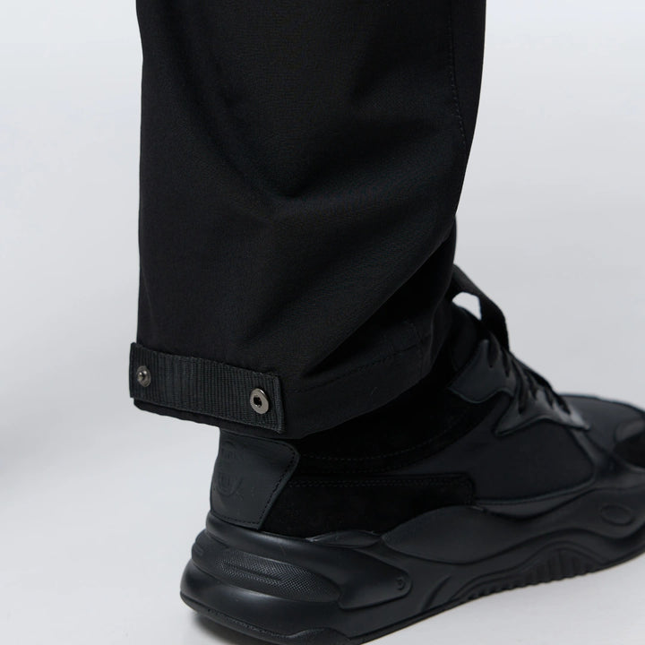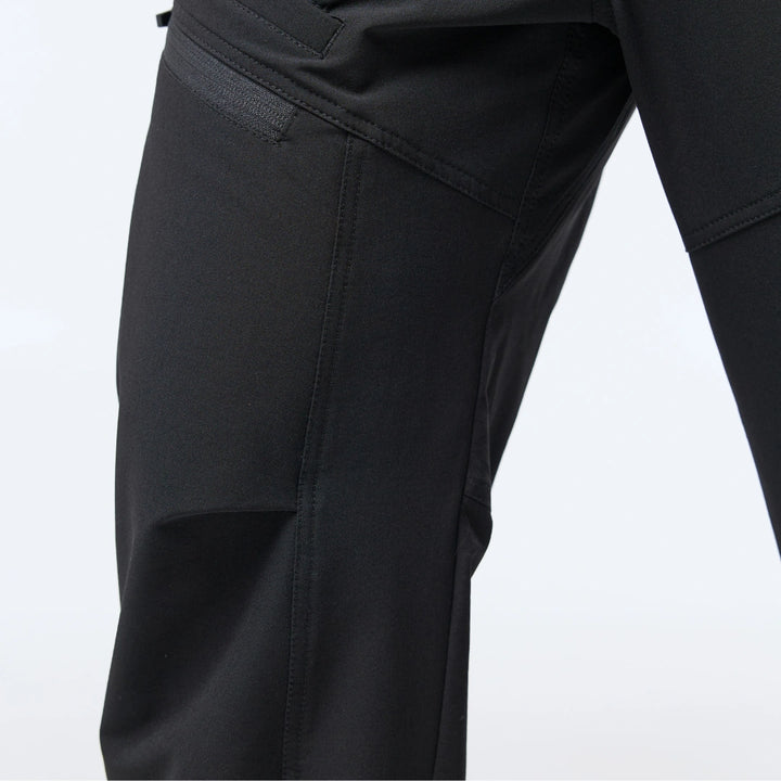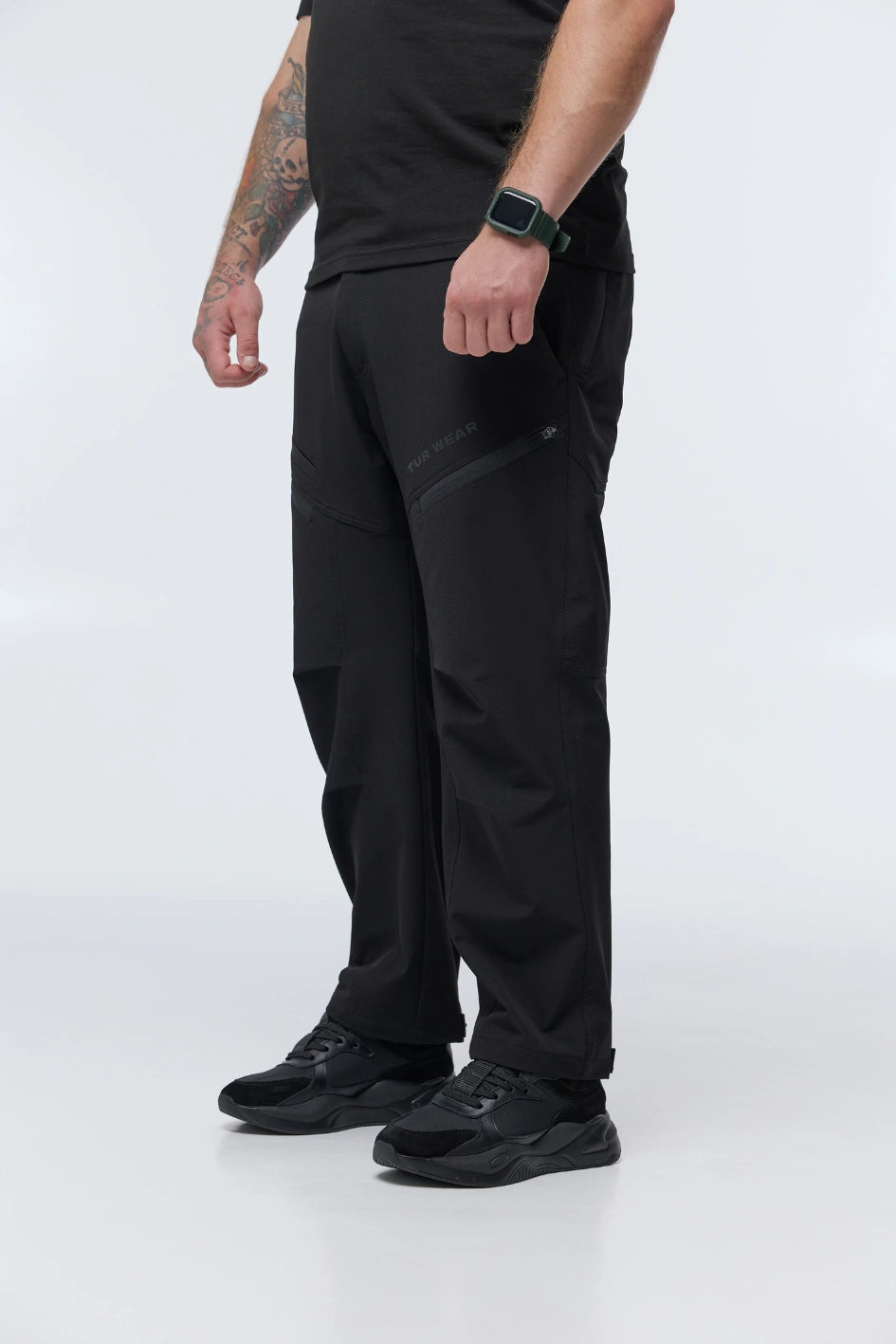 Loose-fit pants with a straight cut, belt loops, and an integrated elastic waistband. On the right side under the waistband — a half-ring for attaching carabiners, keychains, or pouches. The fly is equipped with a YKK zipper. The model features 7 pockets: two top pockets, two back zippered pockets, two front zippered pockets, and a separate phone pocket on the right side. The front is constructed with cuts and pleats in the knee area, and at the lower back part — a strap with buttons for adjusting the leg width. The model belongs to the Reborn collection and is the second generation of Apache pants, which were a bestseller of the brand between 2015–2020.