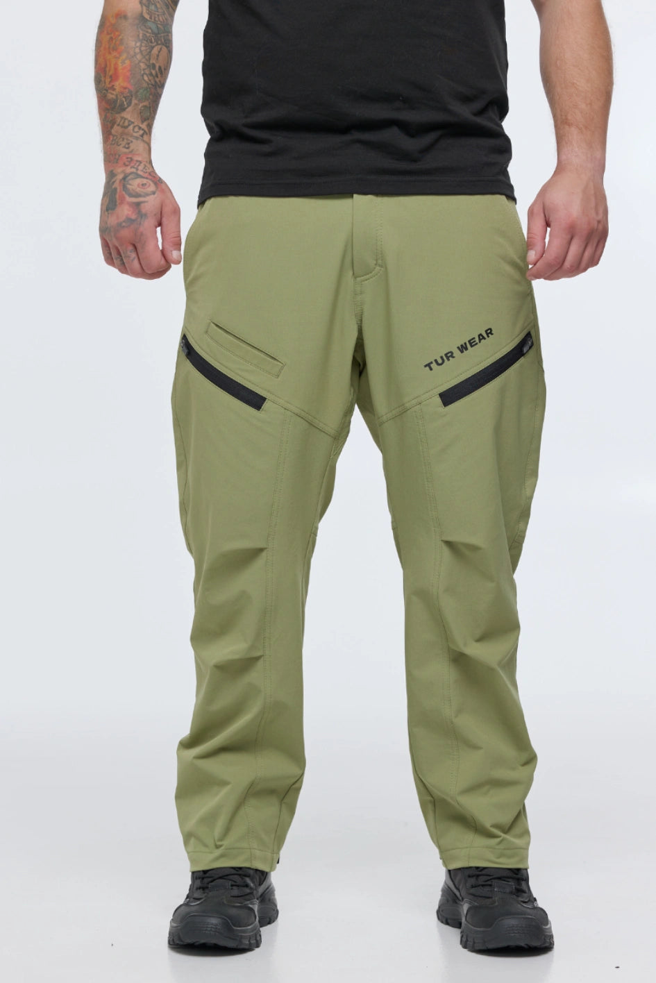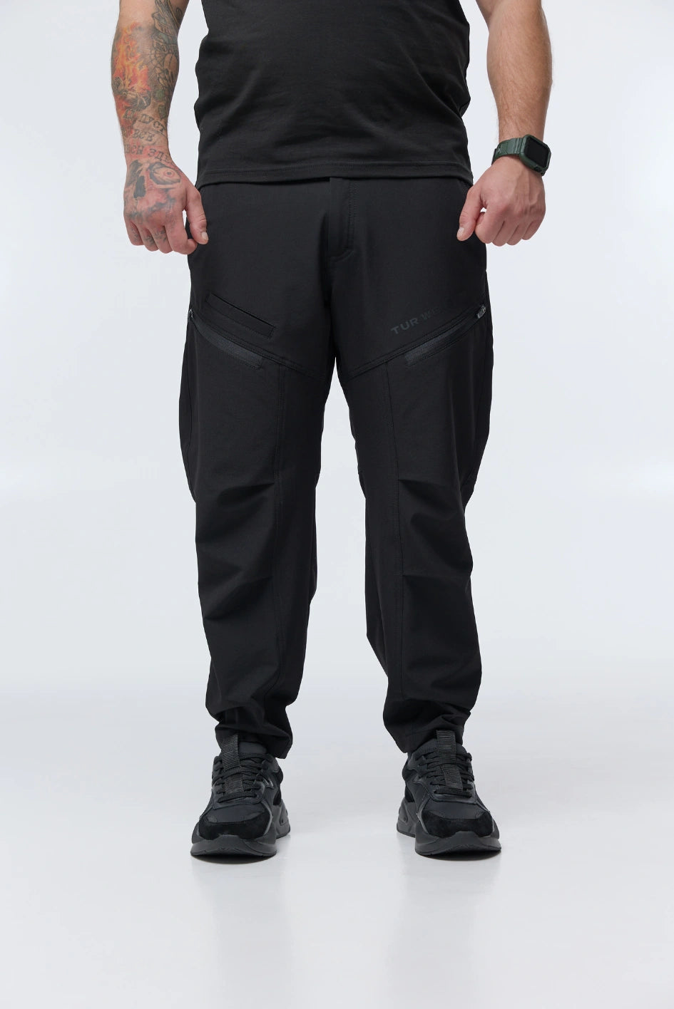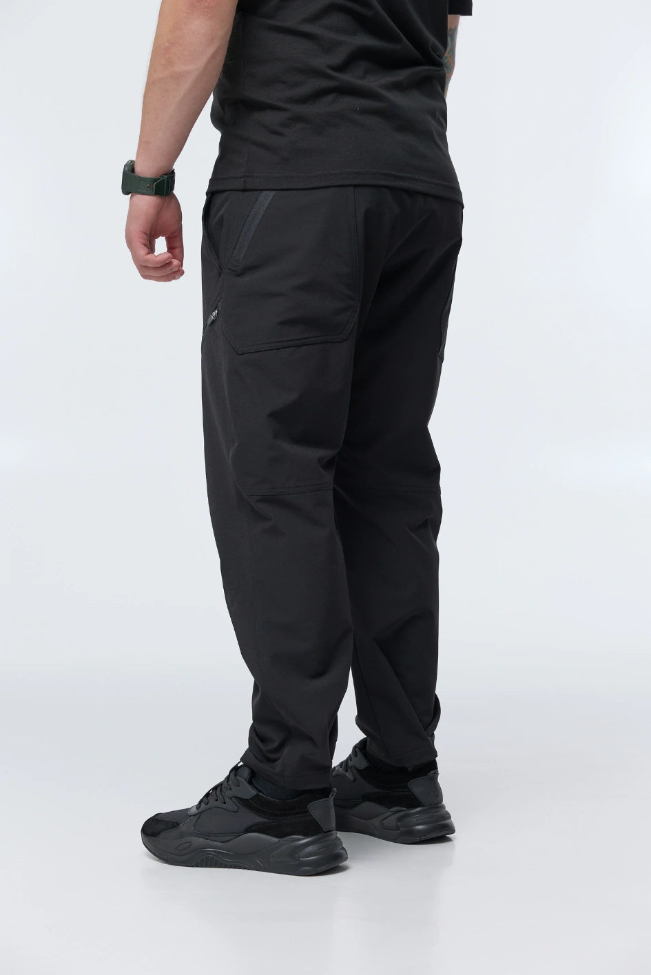 Base fabric — technical sports-type nylon with a textured structure, soft to the touch, and silent during movement. Thanks to four-way stretch, it does not restrict freedom of movement, while the DWR coating protects against moisture. The fabric is abrasion-resistant, dense, durable against mechanical damage and deformation. Pockets are made of skin-friendly material for enhanced comfort. Accessories include a reliable YKK zipper that withstands heavy use, operating smoothly and steadily.