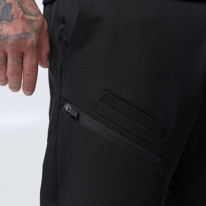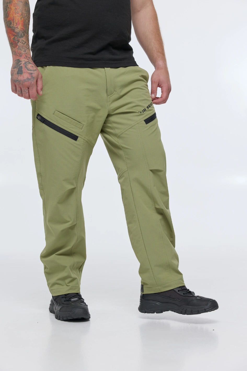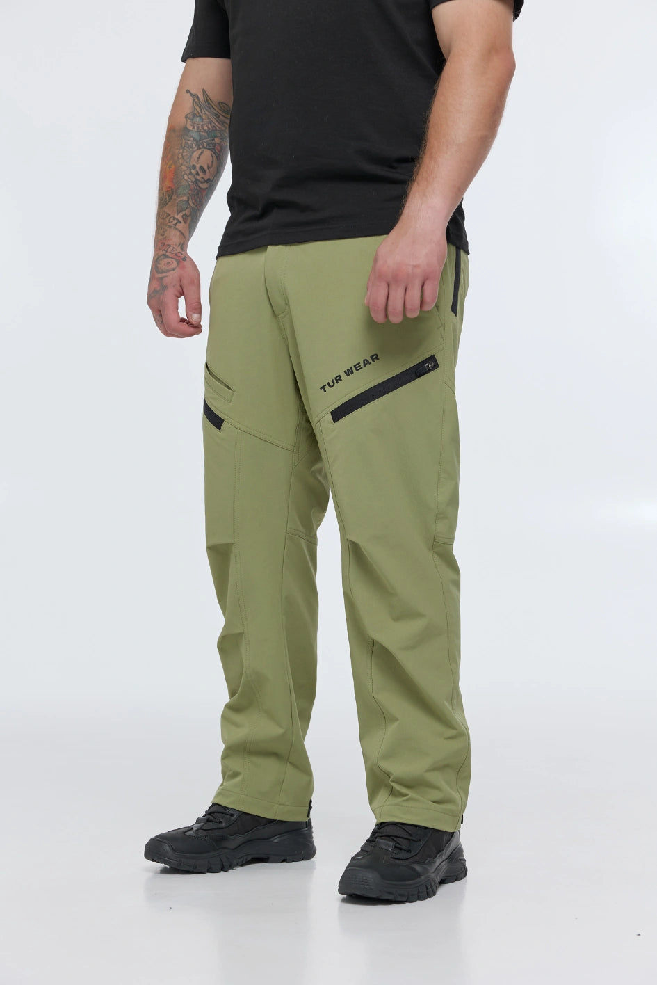 Base fabric — technical sports-type nylon with a textured structure, soft to the touch, and silent during movement. Thanks to four-way stretch, it does not restrict freedom of movement, while the DWR coating protects against moisture. The fabric is abrasion-resistant, dense, durable against mechanical damage and deformation. Pockets are made of skin-friendly material for enhanced comfort. Accessories include a reliable YKK zipper that withstands heavy use, operating smoothly and steadily.