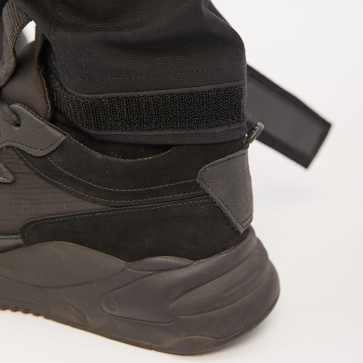 Functionality includes six pockets: two voluminous cargo pockets with elastic drawcords and stoppers, two classic side pockets, and two rear pockets. Adjustable Velcro cuffs come with branded black embroidery — subtle, yet signature. Comfort and control in every move.