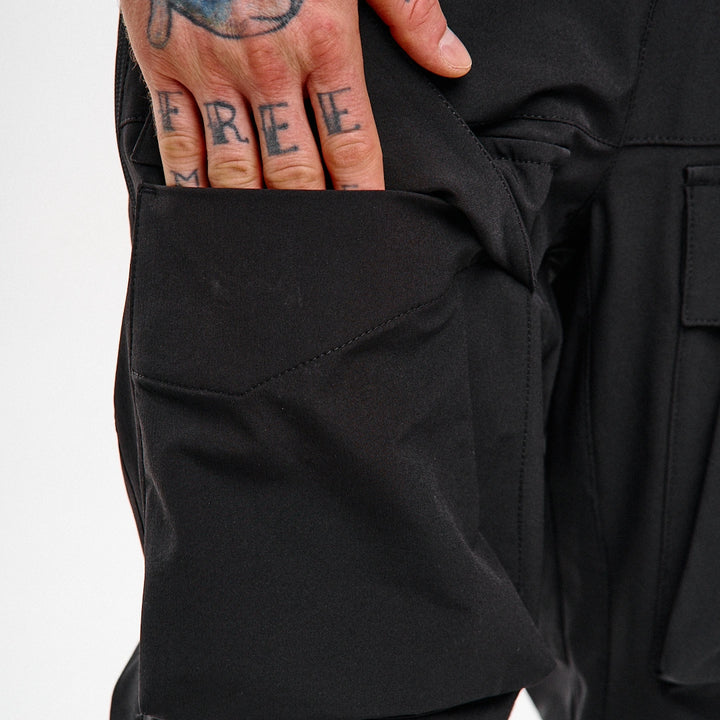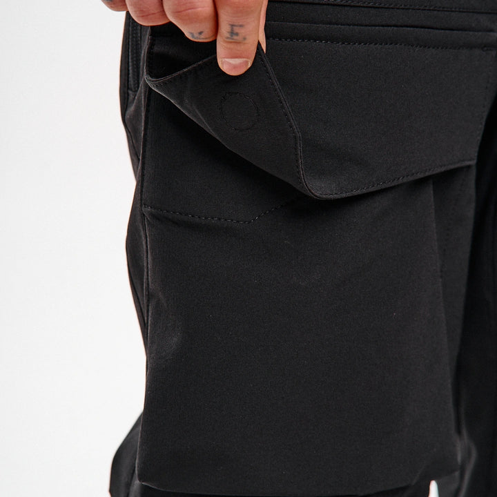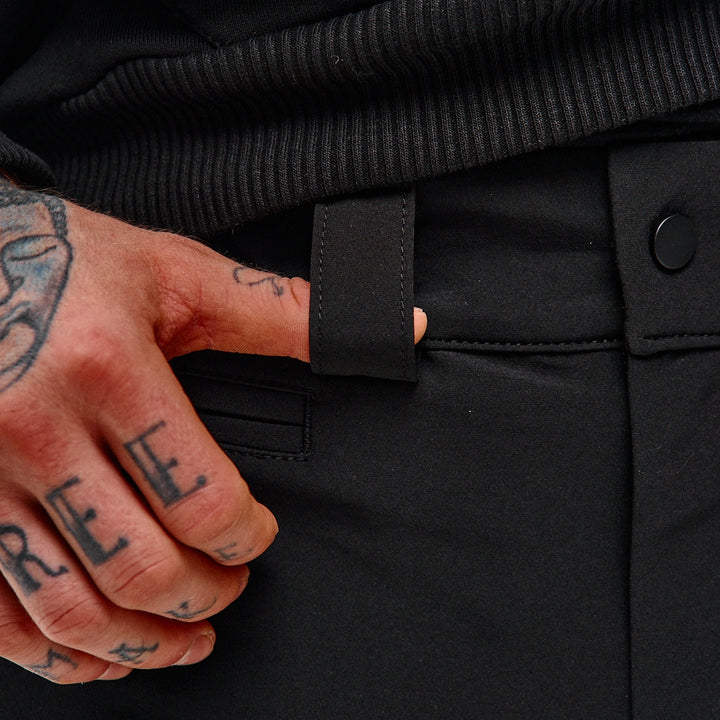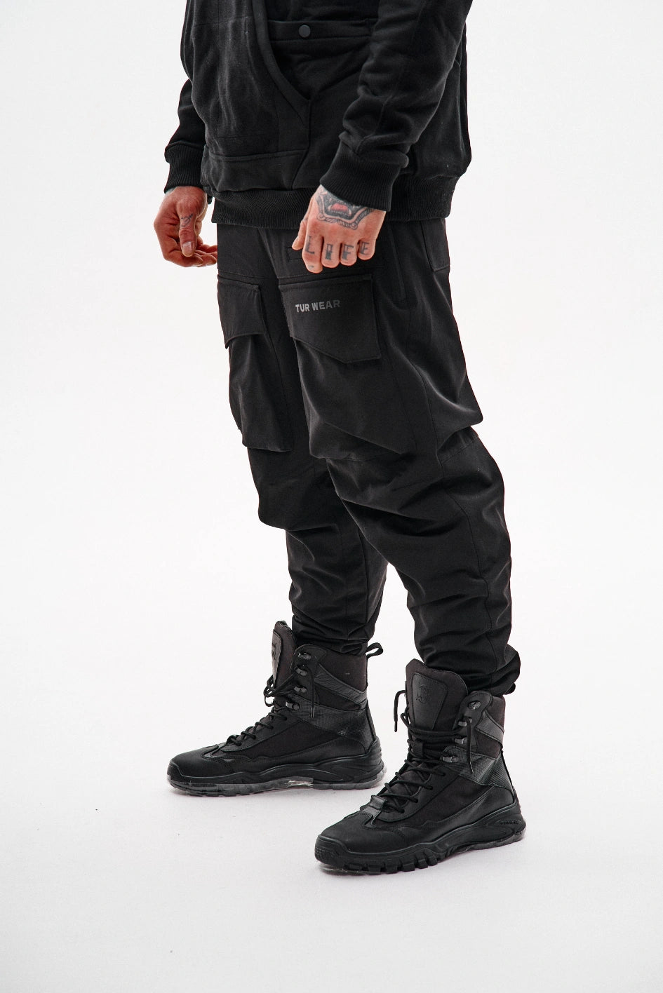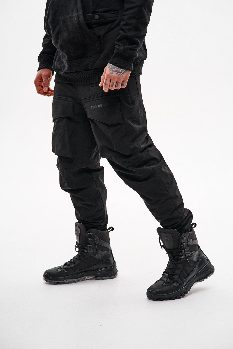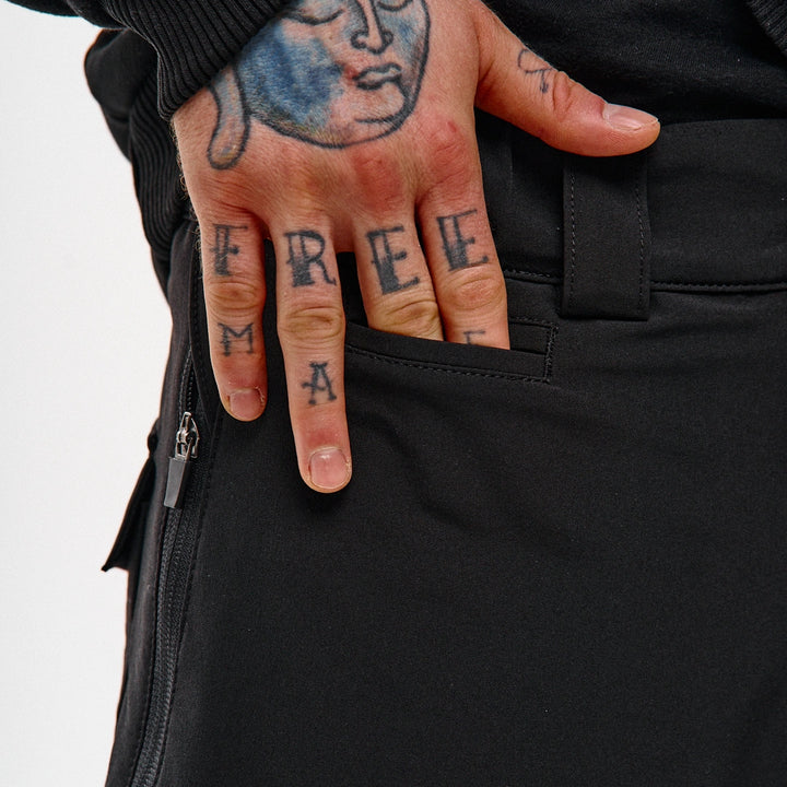 Pants with a relaxed fit and straight leg line. The zippers at the back of the legs allow you to narrow them — adapting to any type of footwear. Waistband with belt loops and an integrated elastic band. On the left side under the waistband, there is a half-ring for attaching a keychain, carabiner, or gear. Fly fastened with a YKK zipper.