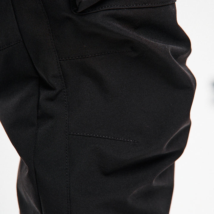 Main fabric — technical nylon with a sporty character and a slightly textured surface. Soft to the touch, does not rustle when moving. Four-way stretch provides full freedom of movement, while the DWR water-repellent coating protects against moisture. The material is abrasion-resistant, dense, and durable. The pockets are lined with microfleece — a soft, pleasant-to-touch fabric that keeps hands warm in cold weather. YKK zipper — solid, reliable, and resistant to intensive use.