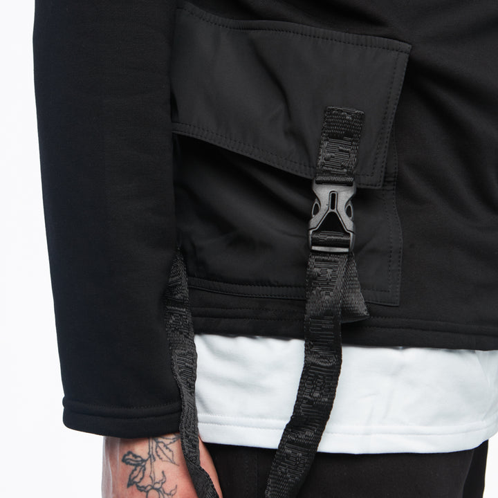 Oversized hoodie for those who don’t tolerate limits. The large cowl-style hood creates a sense of armor and protection, while the fasteners on the voluminous pockets add a tactical edge. The contrasting white hem gives the illusion of layered styling with a T-shirt — effortless yet impactful. This isn’t just a top layer — it’s a statement. Choosing functionality, comfort, and character? This is it.