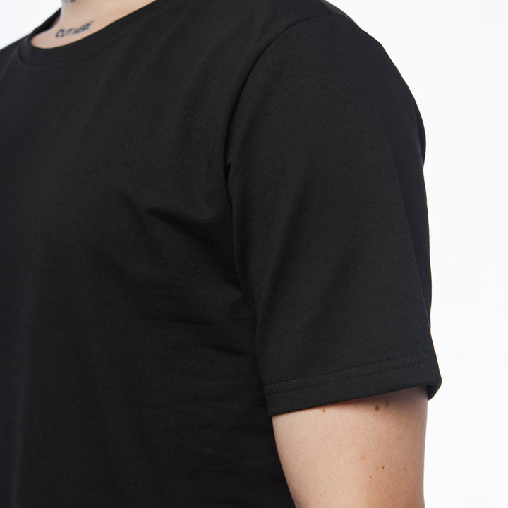 Longline T-shirt with side slits for added comfort and ease of movement. An ideal piece for creating stylish and relaxed outfits.