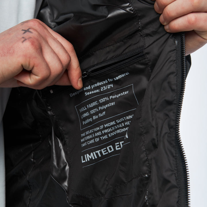 Lacquered rainproof fabric — smooth, dense, and water-repellent. Non-stretch, abrasion-resistant, and retains its shape well. The synthetic down filling is lightweight and voluminous, offering effective insulation. Microfleece-lined pockets add extra comfort for your hands. The jacket features YKK zippers — reliable and built to handle stress.