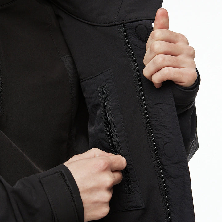 4W-stretch fabric with four-way elasticity — resilient, adapts well to movement, and does not lose its shape over time. The surface is smooth, dense, with a water-repellent coating. It offers waterproofing up to 3000 mm water column, breathability, and resistance to mechanical wear. An optimal choice for active everyday use. Hardware includes YKK zippers, ensuring reliability and longevity.
