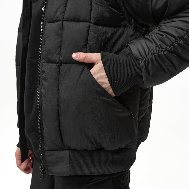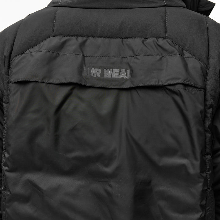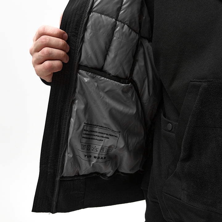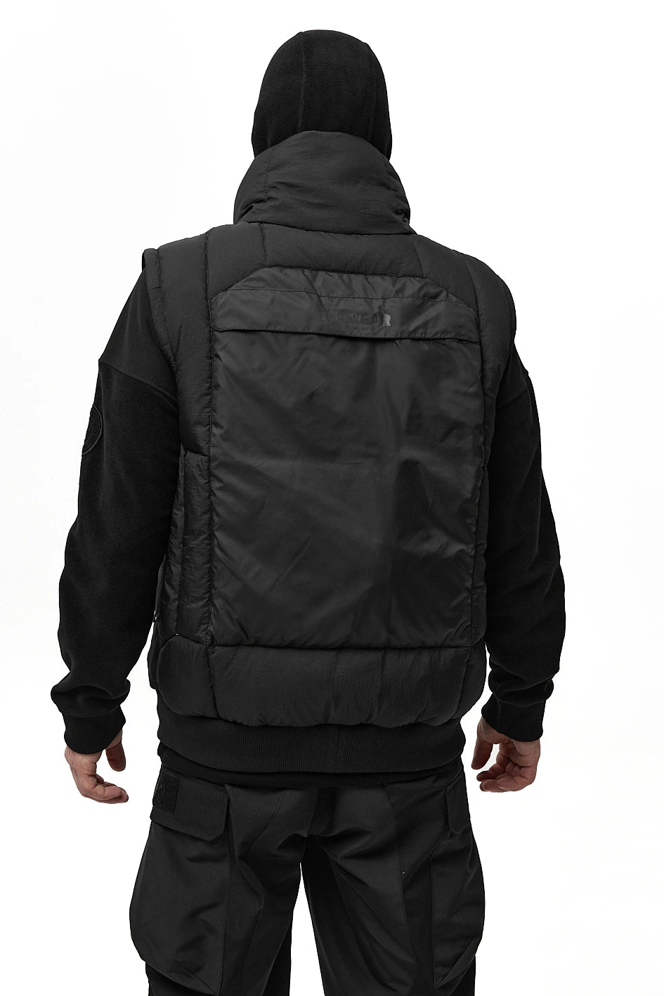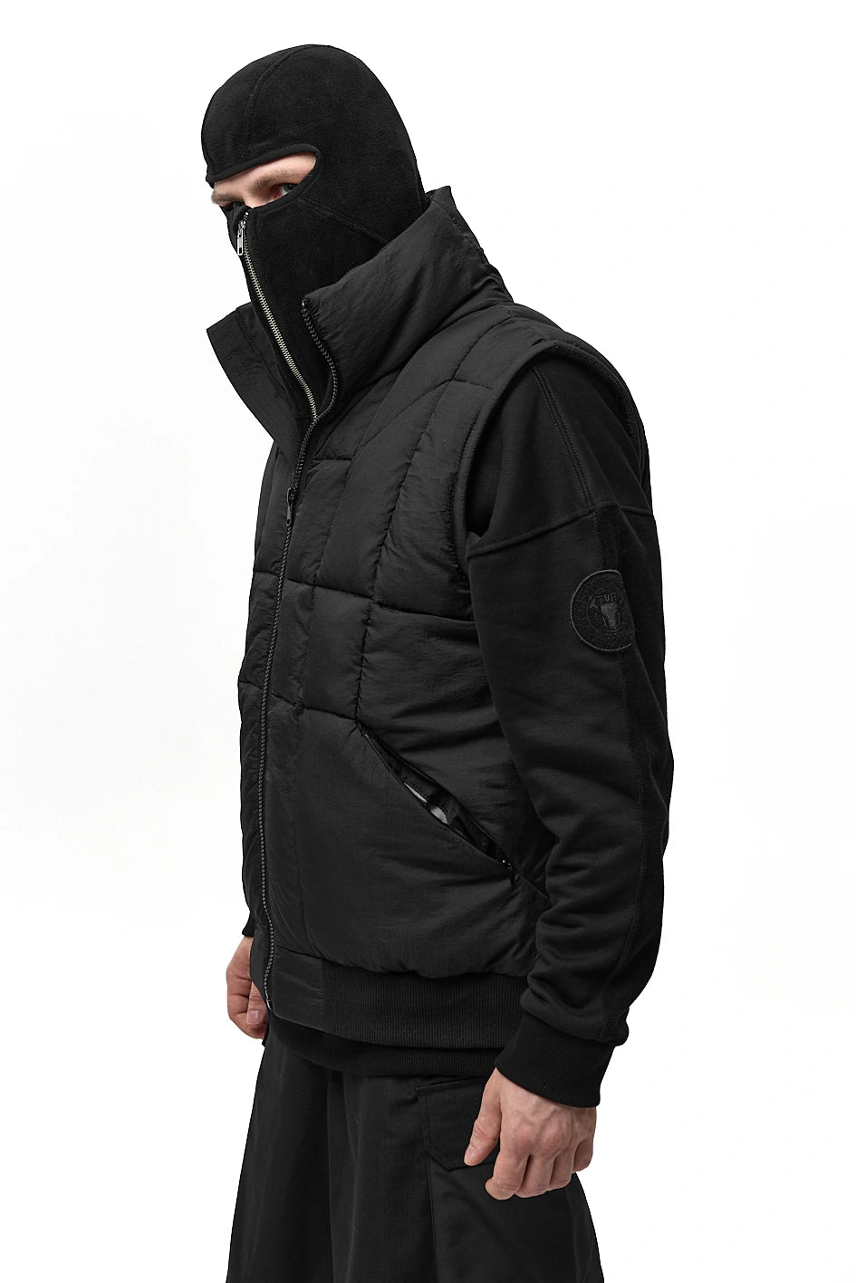 The vest is made of Crash fabric — durable, with a textured surface that gives the product a stylish look and resistance to wear. The sleeves are made of Laccé material — smooth, slightly shiny, and moisture-resistant. Inside the sleeves, there is microfleece, pleasant to the touch, providing extra warmth and comfort. The filling is synthetic down — lightweight and effective in retaining heat, maintaining its shape even after washing.