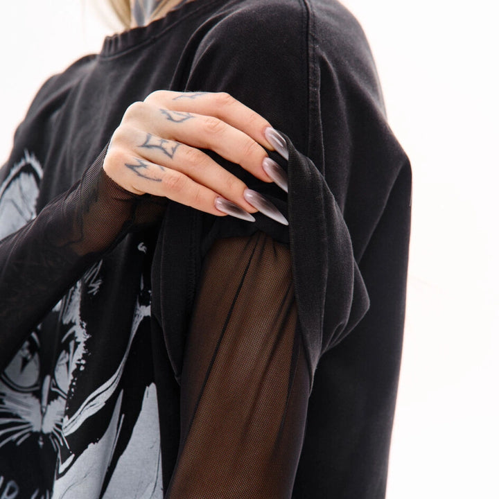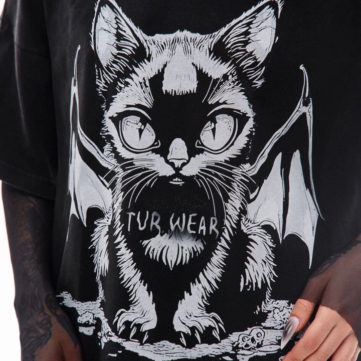 Oversized T-shirt with a washed (stonewashed) effect — for those who appreciate uniqueness in details. Set-in sleeves and ribbed neckline ensure comfort and durability. One universal size fits women from XS to L. The original print completes the concept, adding character to every look.