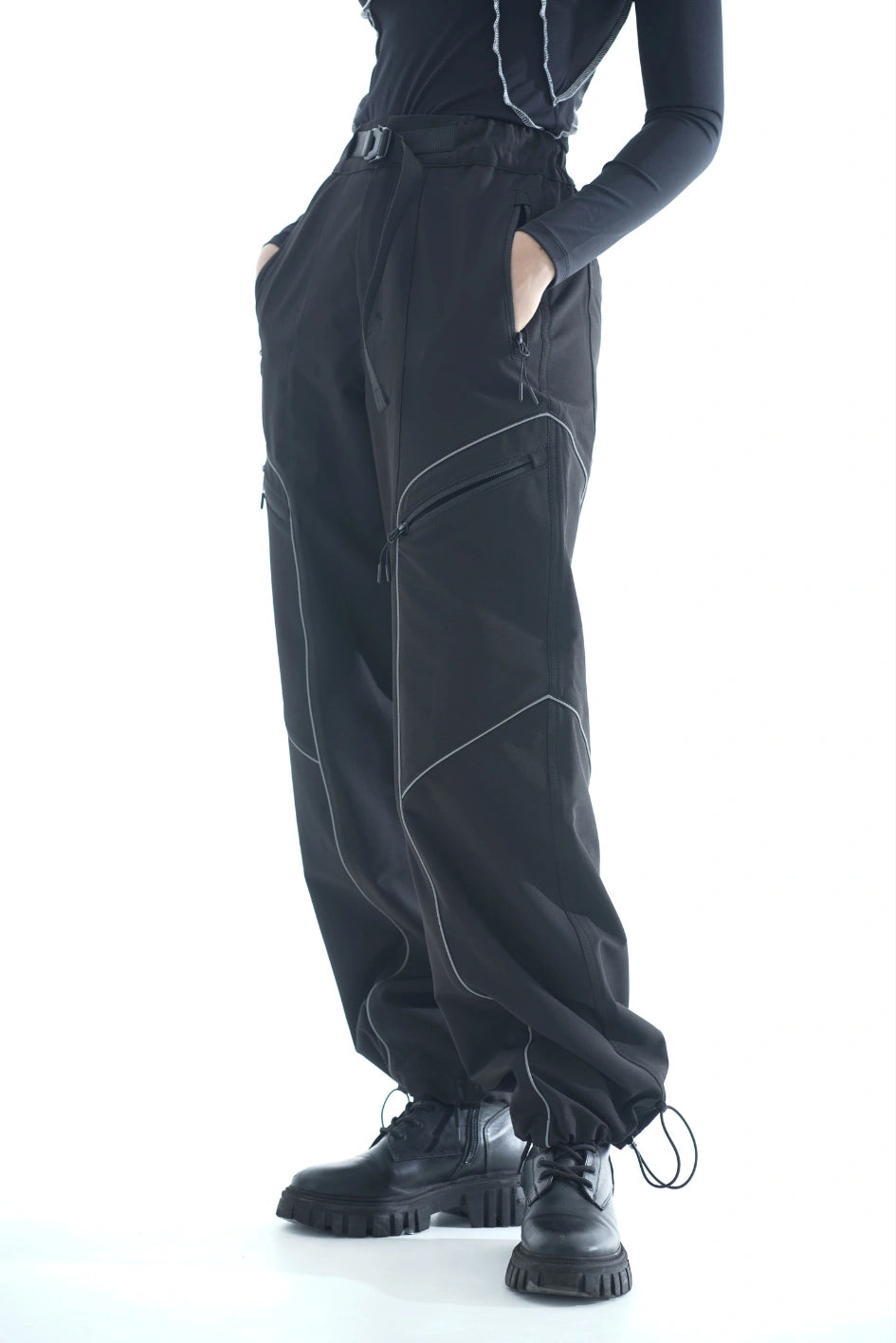 A decorative reflective cord emphasizes the complex construction of the cut, adding character even in basic colors. The bottom of the pants is adjustable with an elastic cord. Perfectly matches the "Kovra" body and the "Orvia" hoodie.