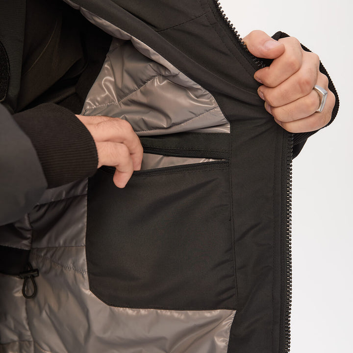 On the right sleeve — a zippered patch pocket; on the left — a branded Velcro patch for interchangeable badges.