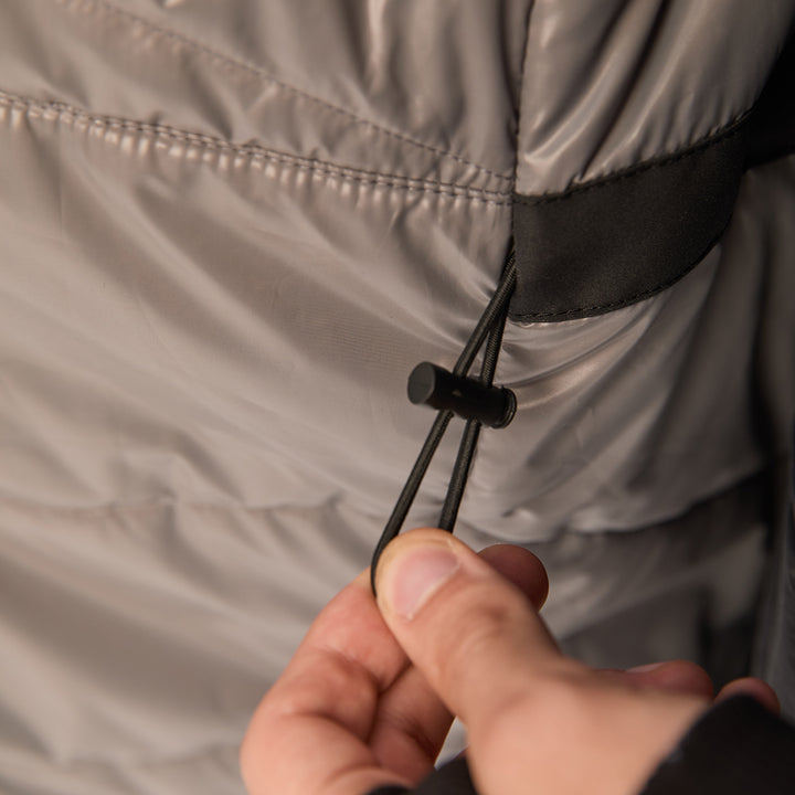 Ribbed cuffs block snow and wind from entering the sleeves.