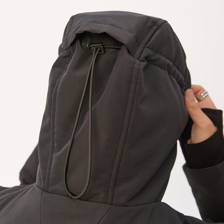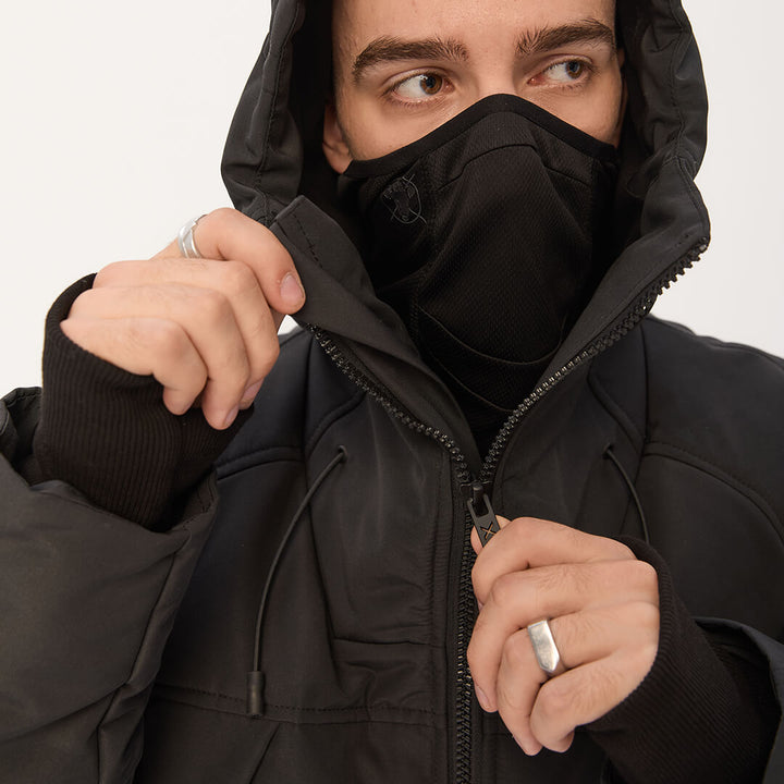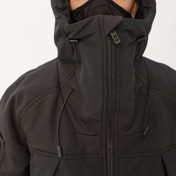 A deep hood and high collar provide extra wind protection.