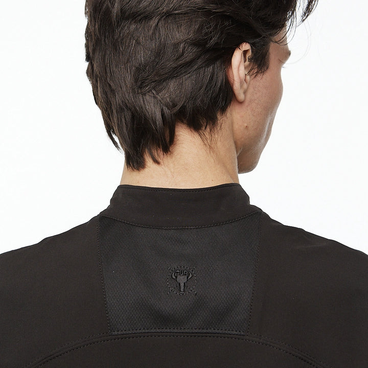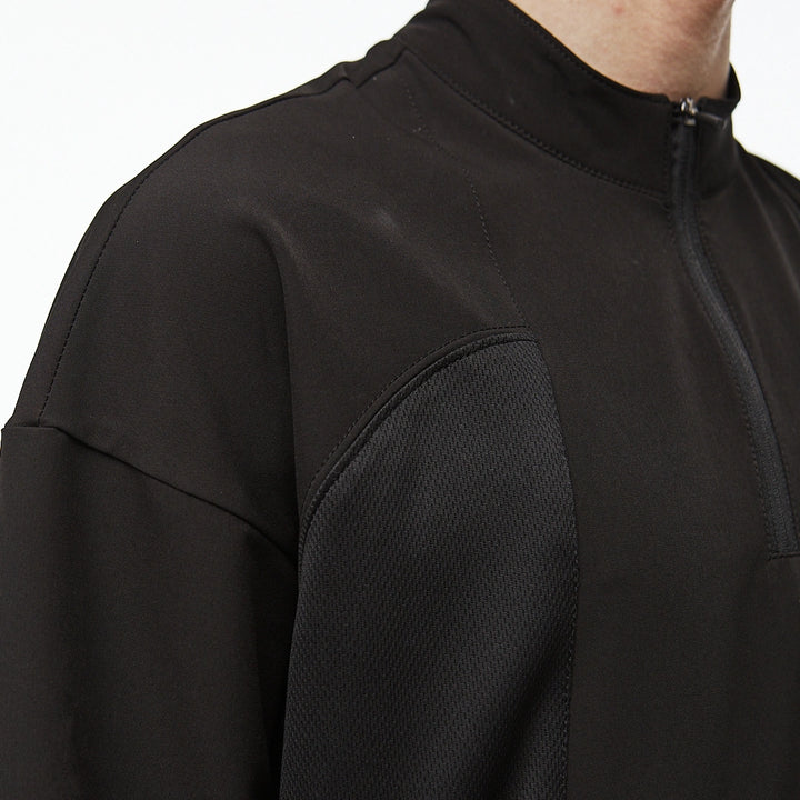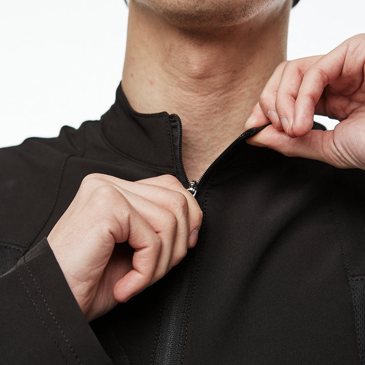 Medium-length sweatshirt with a complex anatomical cut that highlights the minimalist strength of a modern look. The base is lightweight nylon, complemented with Coolmax inserts on the sides, back, and inner sleeves for better ventilation and comfort. Two hidden zippered pockets integrated into the front seams. The center zipper goes up to the chest, creating a visual accent in the upper part. Seams are finished with an overlock machine, and there is a logo print on the back. Minimalism that speaks volumes. An ideal base for an urban look, where every detail serves both function and style.