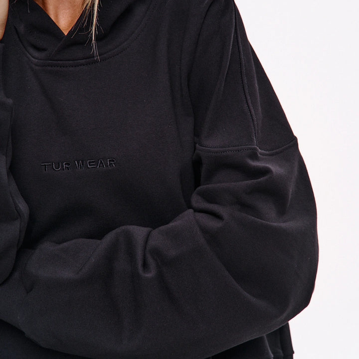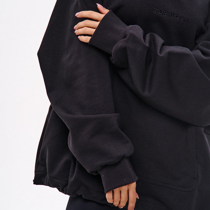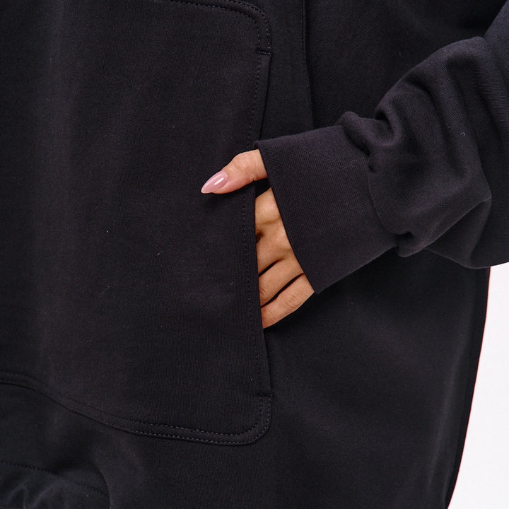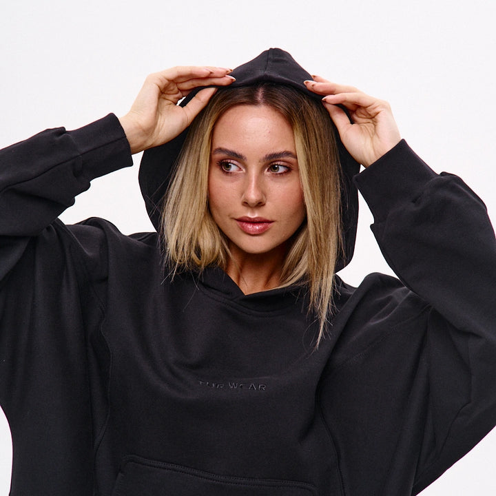Key features of the model: Oversized hoodie, based on the "Invisible" fit but with significantly larger dimensions. Sleeves are finished with ribbed cuffs. The bottom hem is adjustable with a drawstring and cord locks.