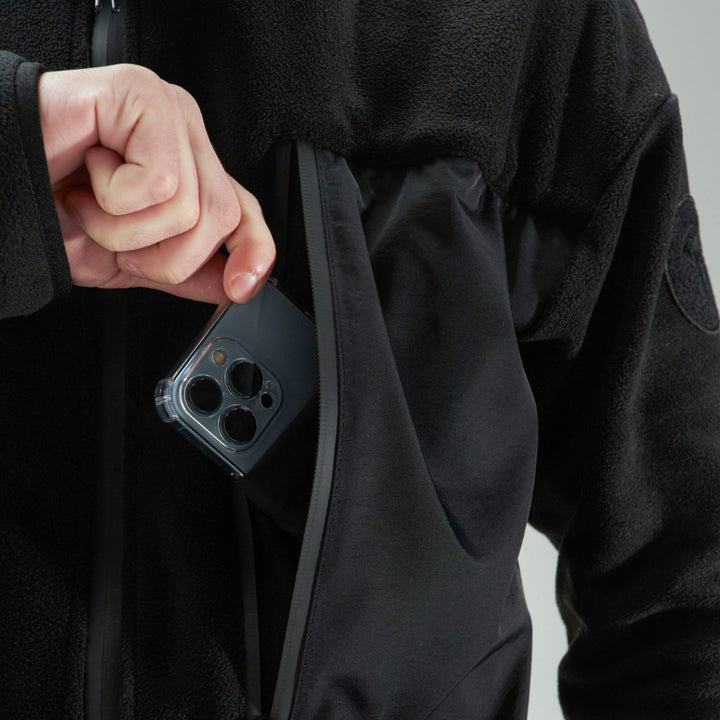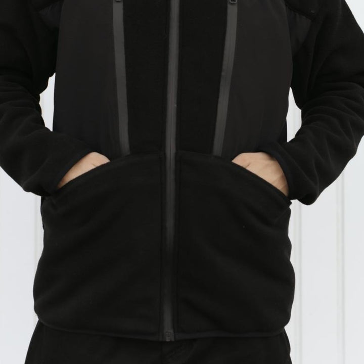A zip-up fleece jacket designed to merge warmth with tactical utility.