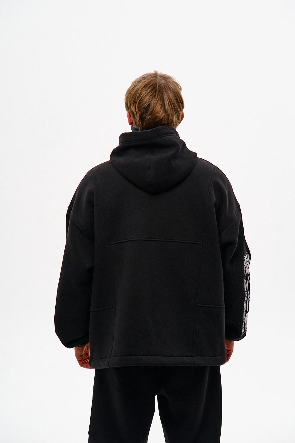 Na prawym rękawie — haft w japońskim stylu, który nadał nazwę modelowi: Ryuu, co po japońsku oznacza „smok”. Sznurki przy kapturze pełnią funkcję dekoracyjną. Model idealnie komponuje się ze spodniami „Ryuu”, tworząc zestaw z charakterem i symboliką.