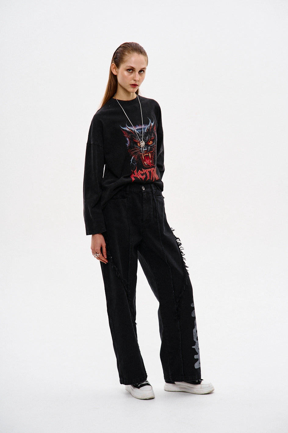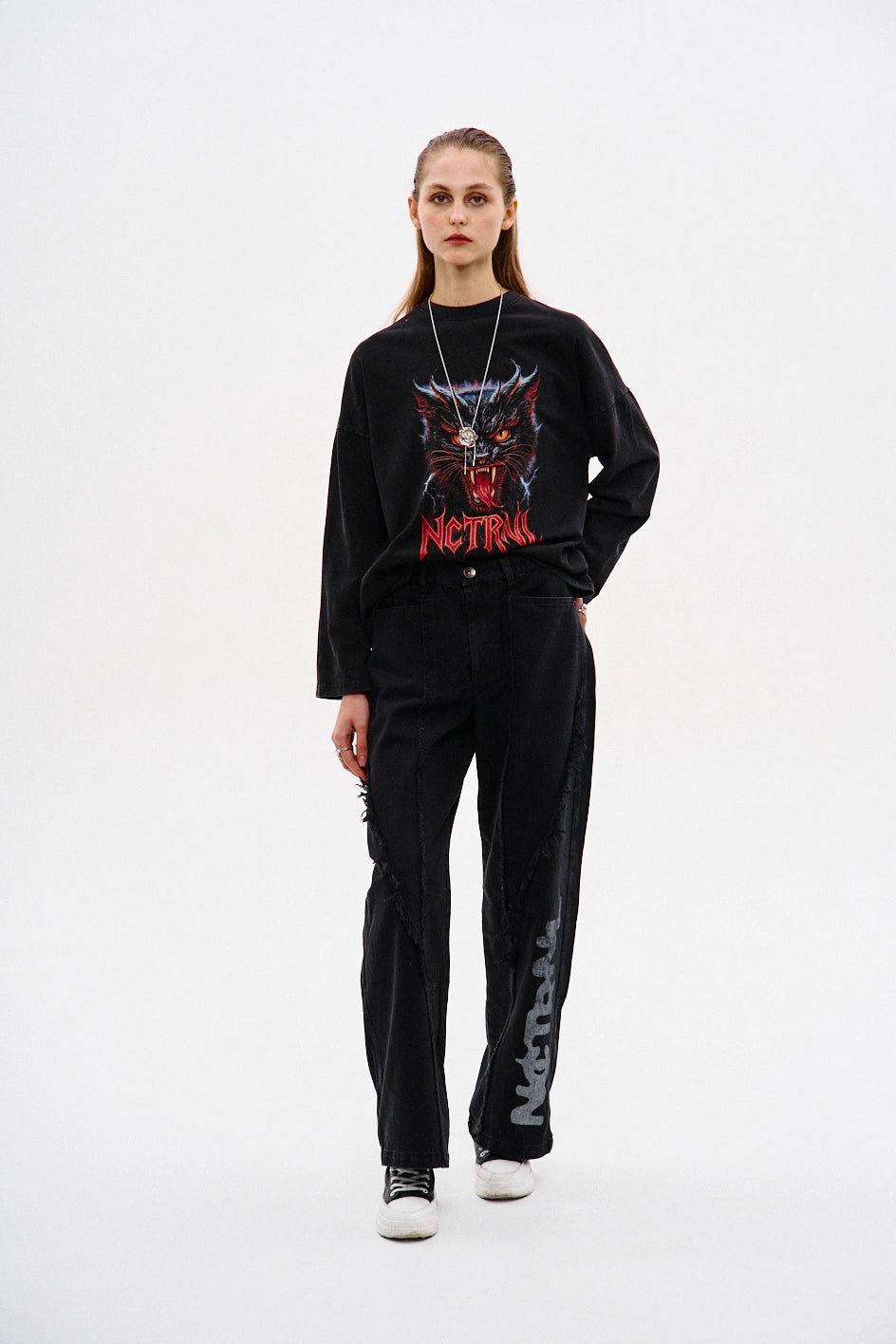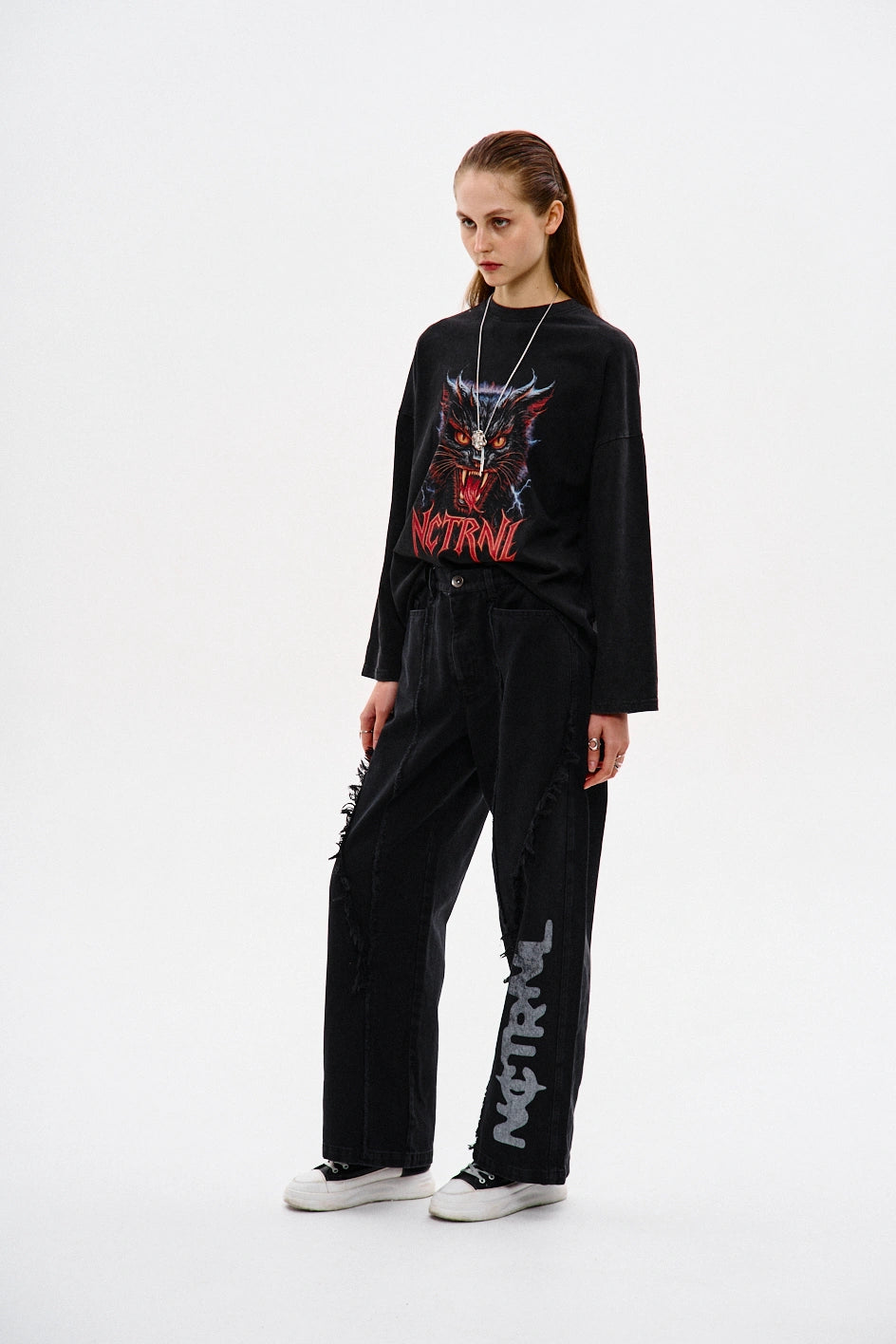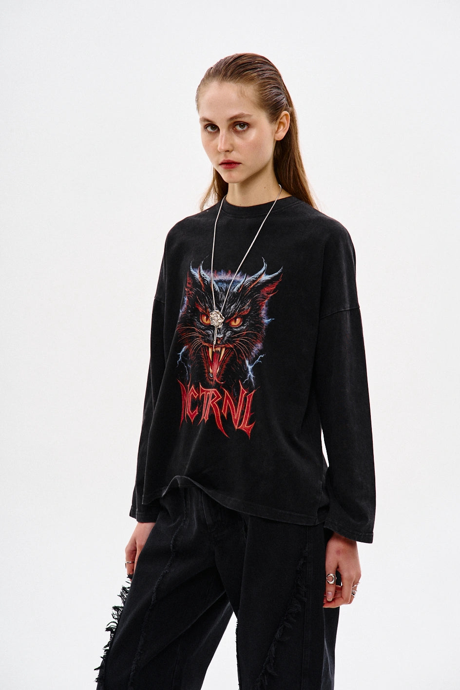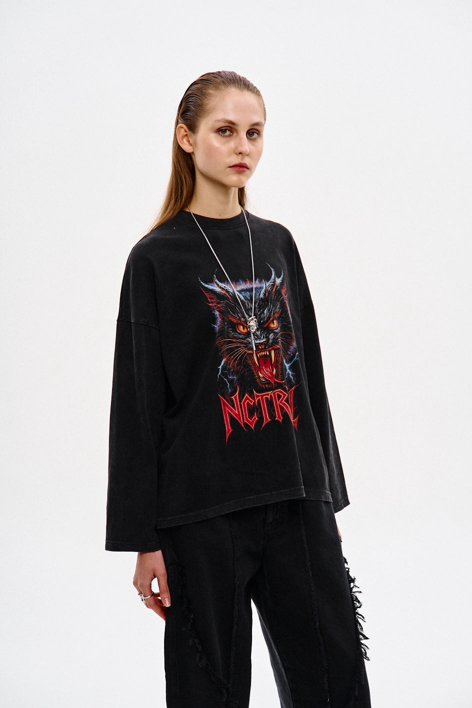 Longsleeve NCTRNL z efektem sprania „Angry Cat”
