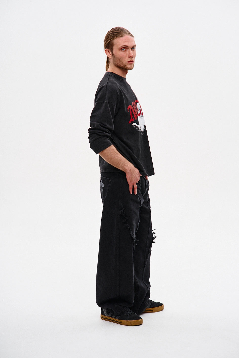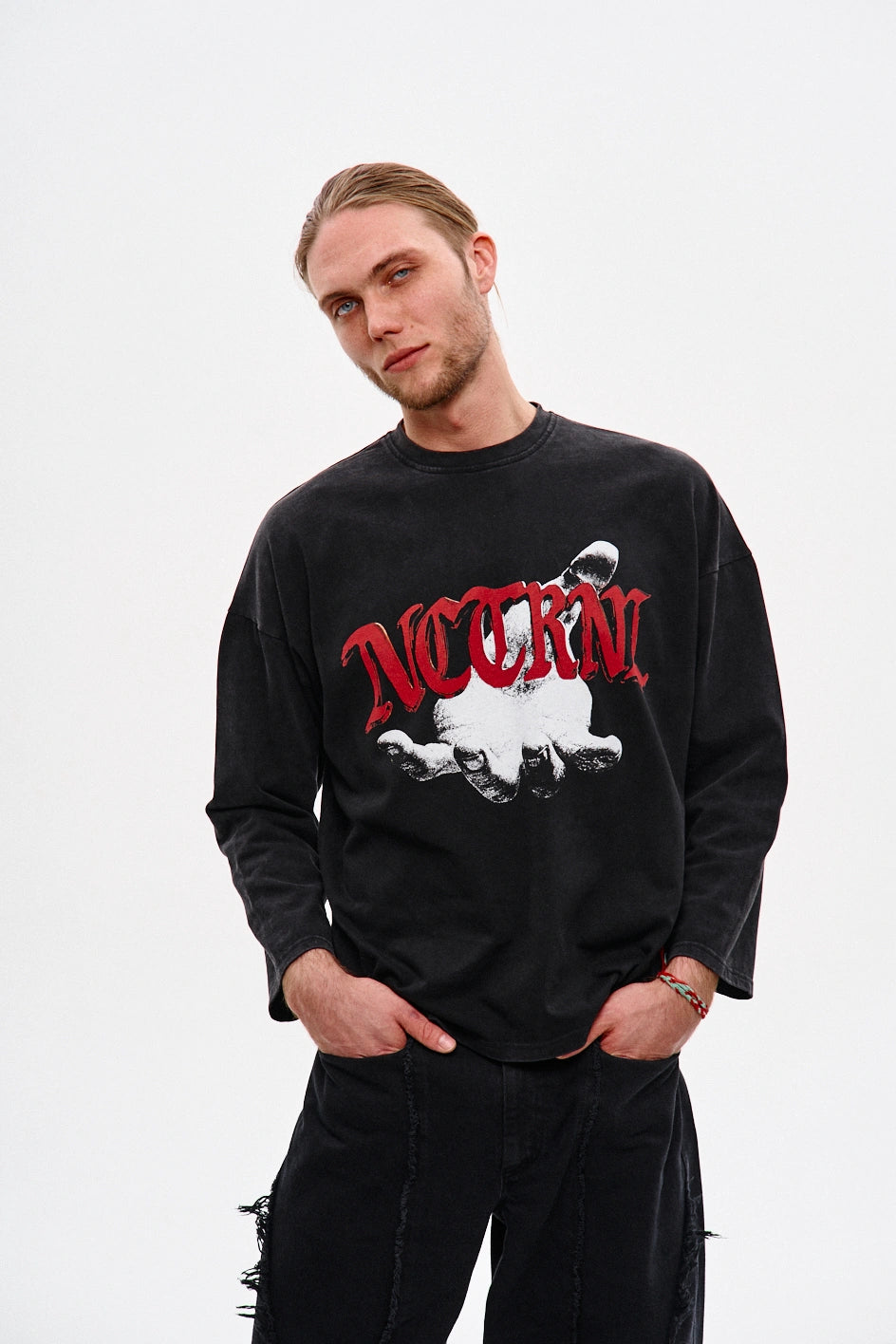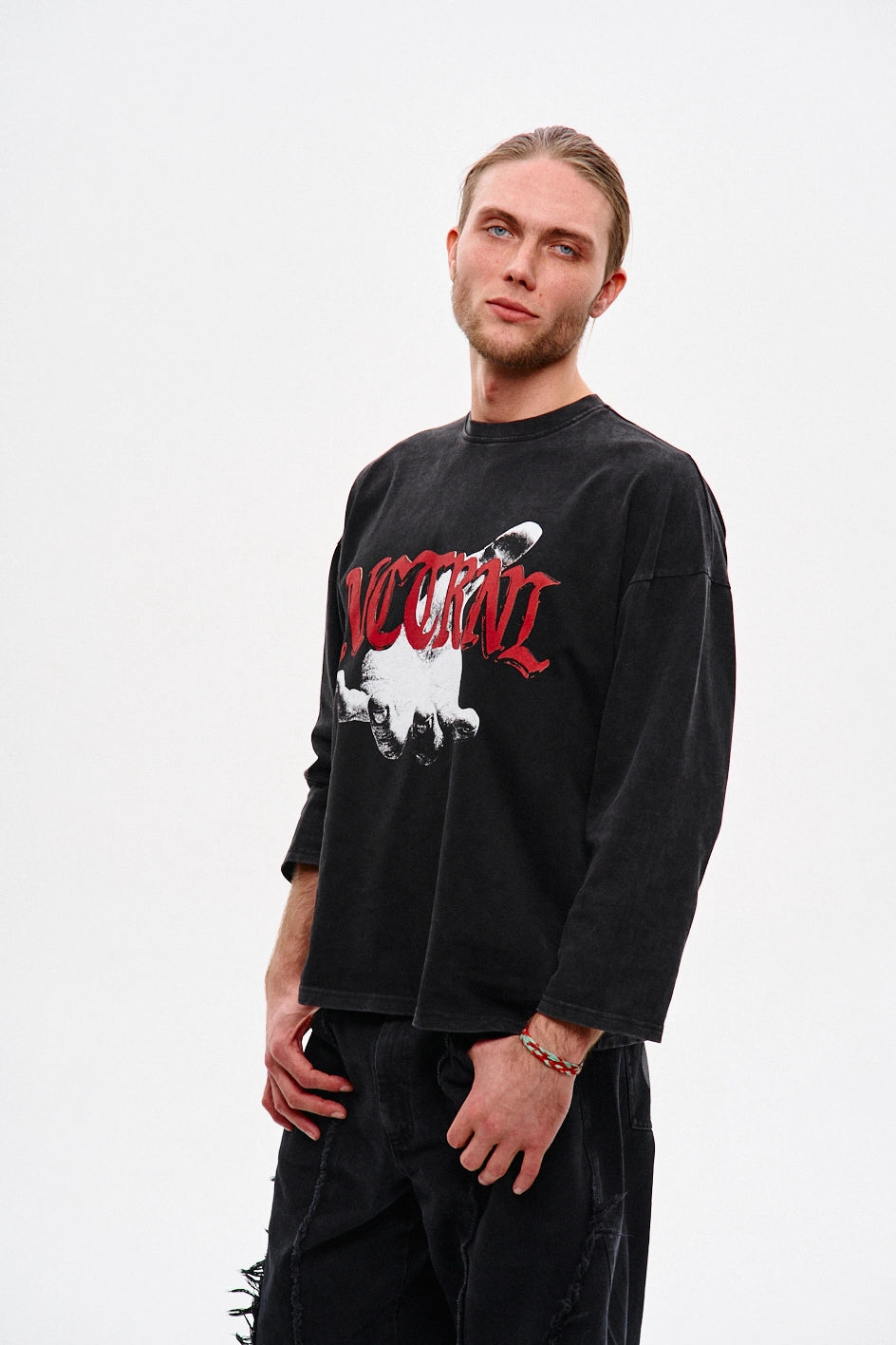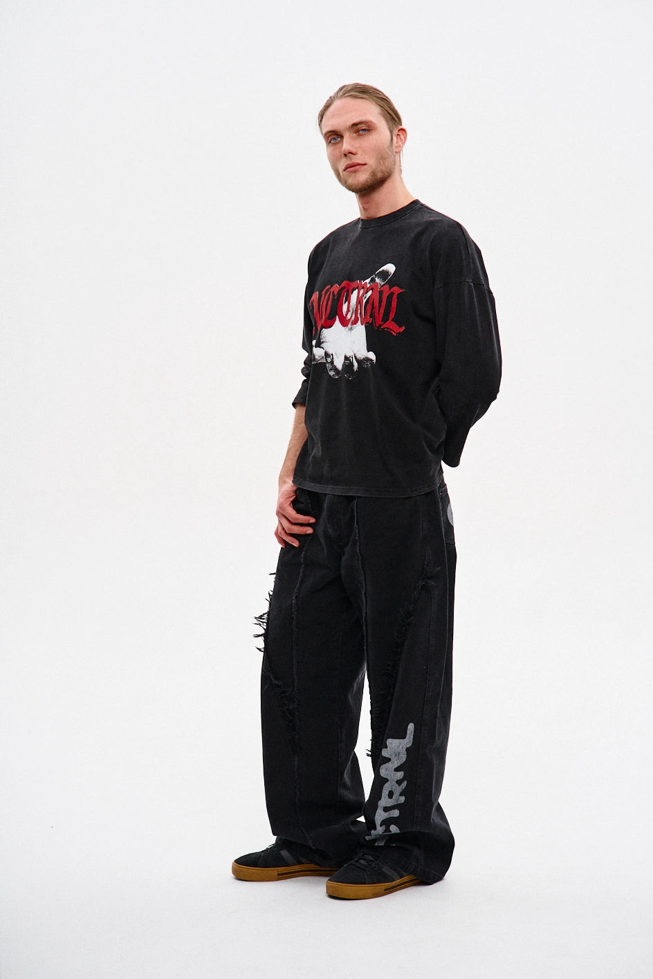 Oversize’owy longsleeve z dżerseju — dla tych, którzy cenią unikalność w detalach. Obniżone ramiona i dekolt wykończony ribbaną zapewniają komfort i trwałość. Autorski nadruk uzupełnia koncepcję modelu, nadając każdej stylizacji wyrazistości. Idealnie komponuje się z jeansami „Spite”, tworząc stylowy i wyrazisty zestaw.