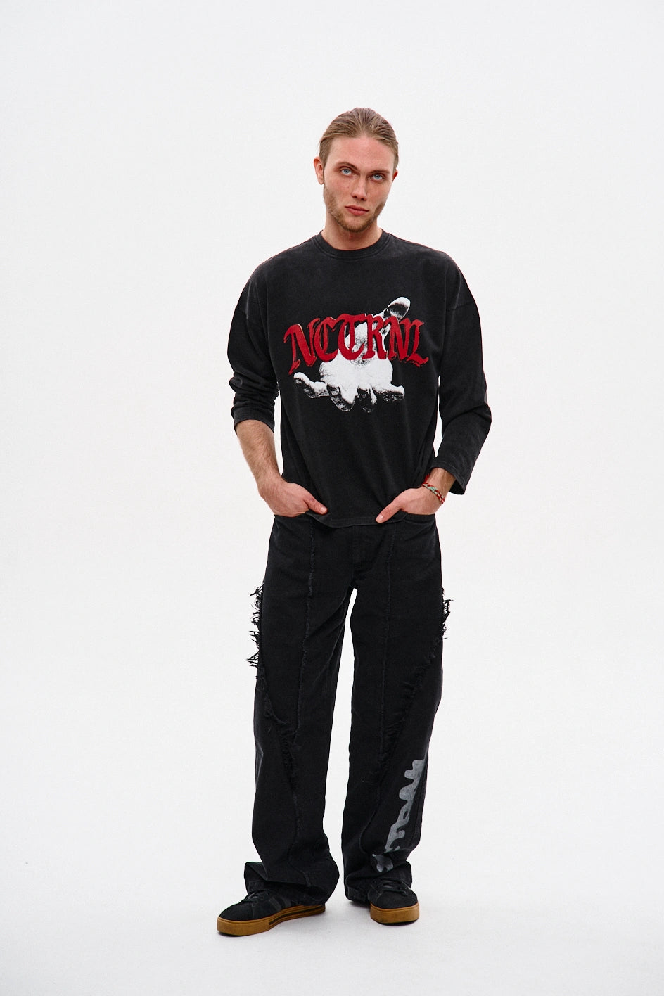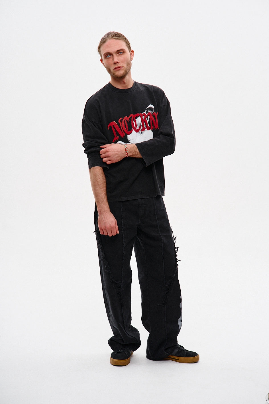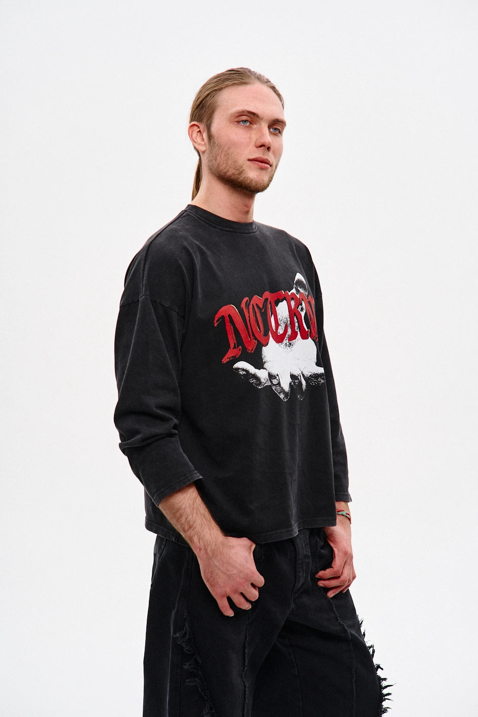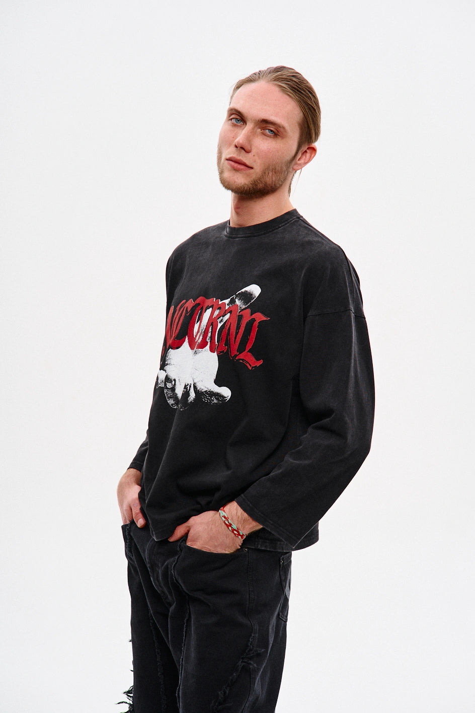 Oversize’owy longsleeve z dżerseju — dla tych, którzy cenią unikalność w detalach. Obniżone ramiona i dekolt wykończony ribbaną zapewniają komfort i trwałość. Autorski nadruk uzupełnia koncepcję modelu, nadając każdej stylizacji wyrazistości. Idealnie komponuje się z jeansami „Spite”, tworząc stylowy i wyrazisty zestaw.