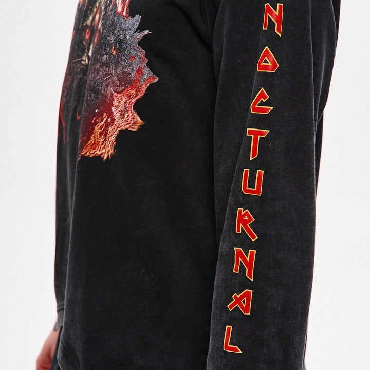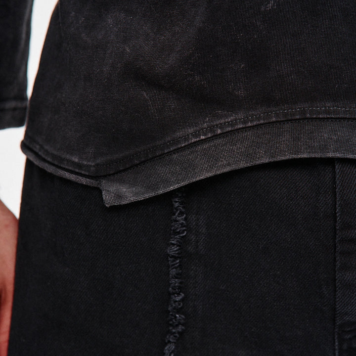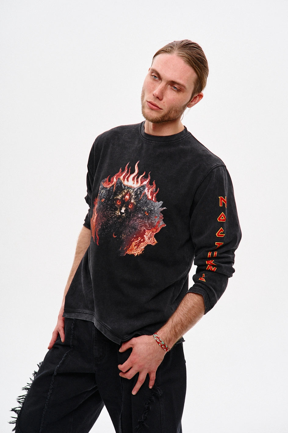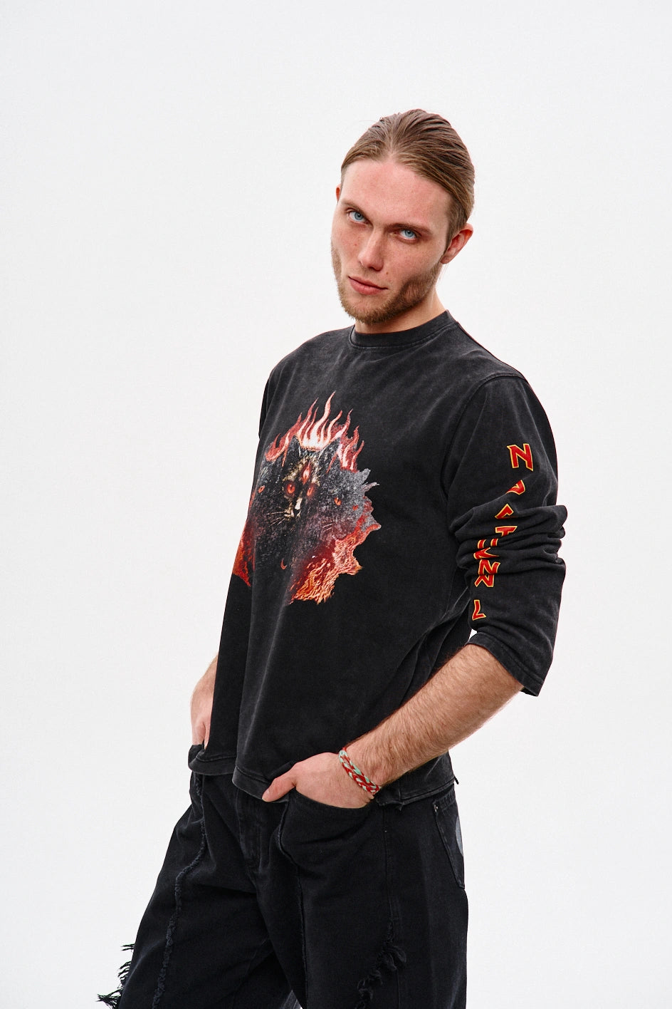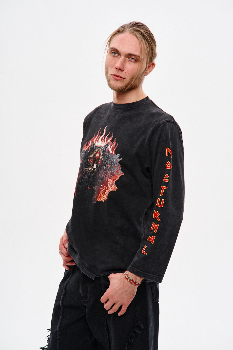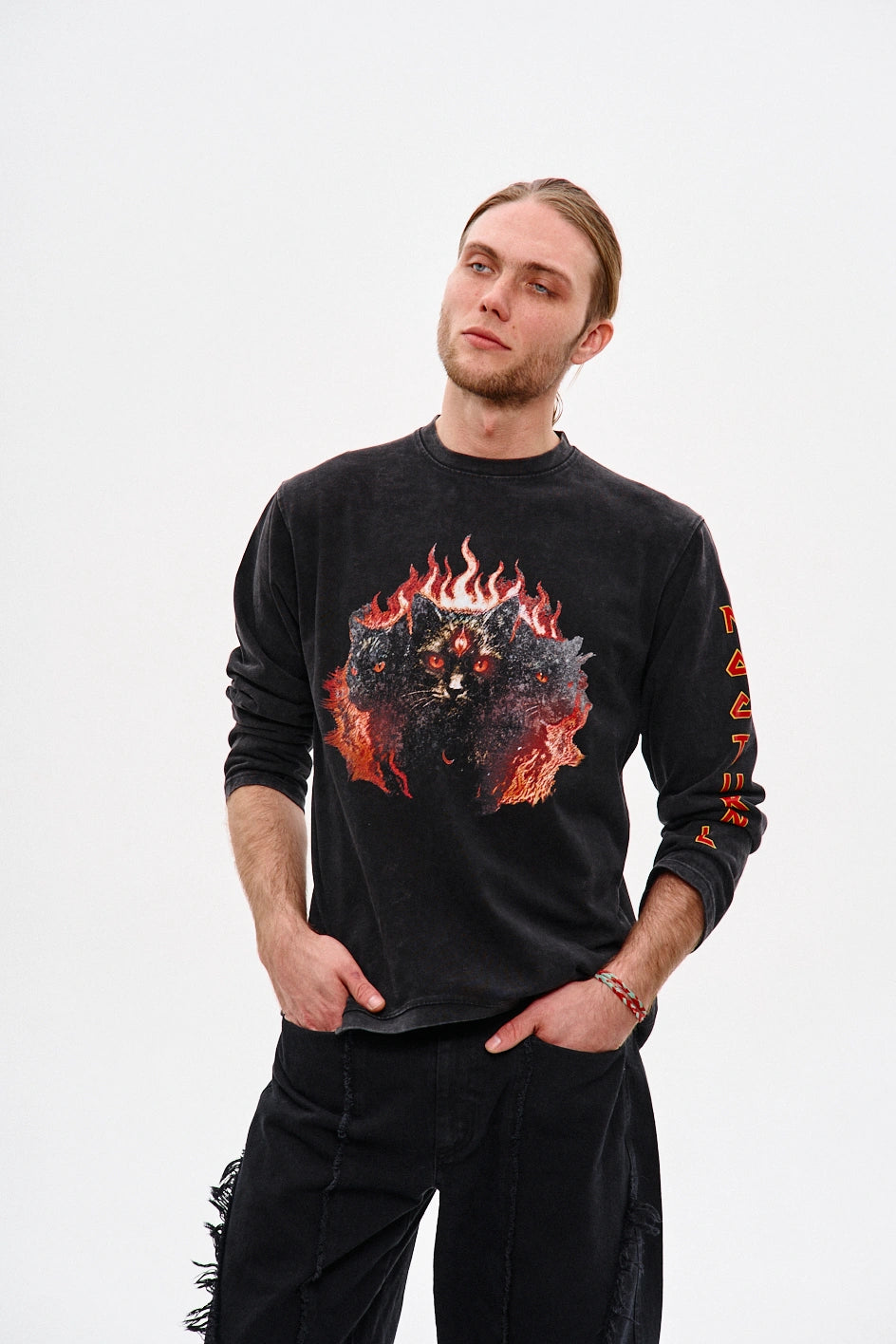Longsleeve o klasycznym kroju z oryginalnymi akcentami w detalach. W dolnej części przodu znajduje się imitacja dekoltu, tworząca nietypowy efekt wizualny. Tył posiada odwrócony nadruk, przód — nadruk w standardowej orientacji, a na rękawie umieszczony jest pionowy nadruk. W dolnej części pleców znajdują się reliefowe przeszycia bez stebnowania, imitujące odwrócone wycięcie na rękaw. Dolne krawędzie rękawów są podwinięte, a oblamówka wykonana z głównej tkaniny z surowym brzegiem — dla techniczno-surowego efektu estetycznego.