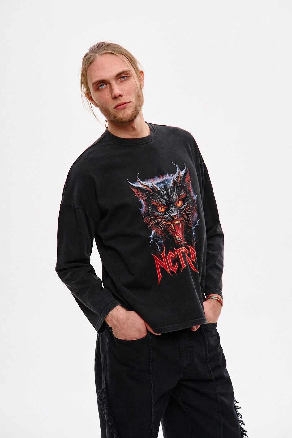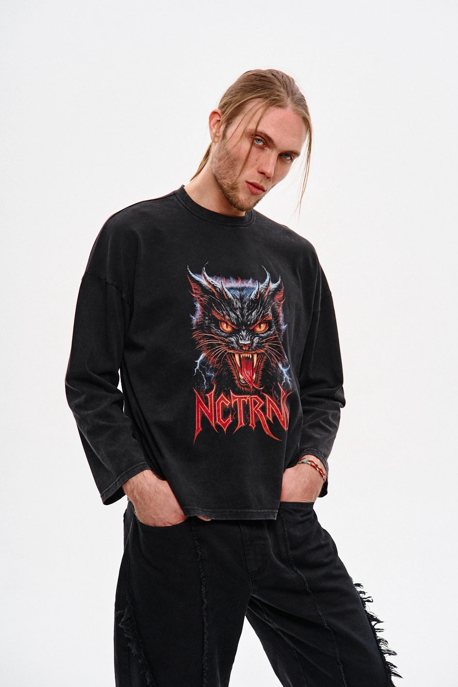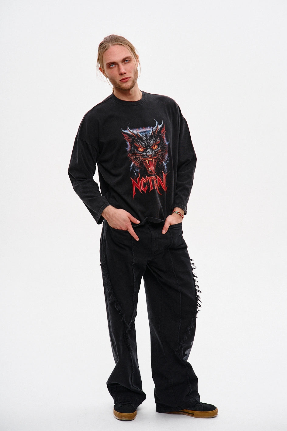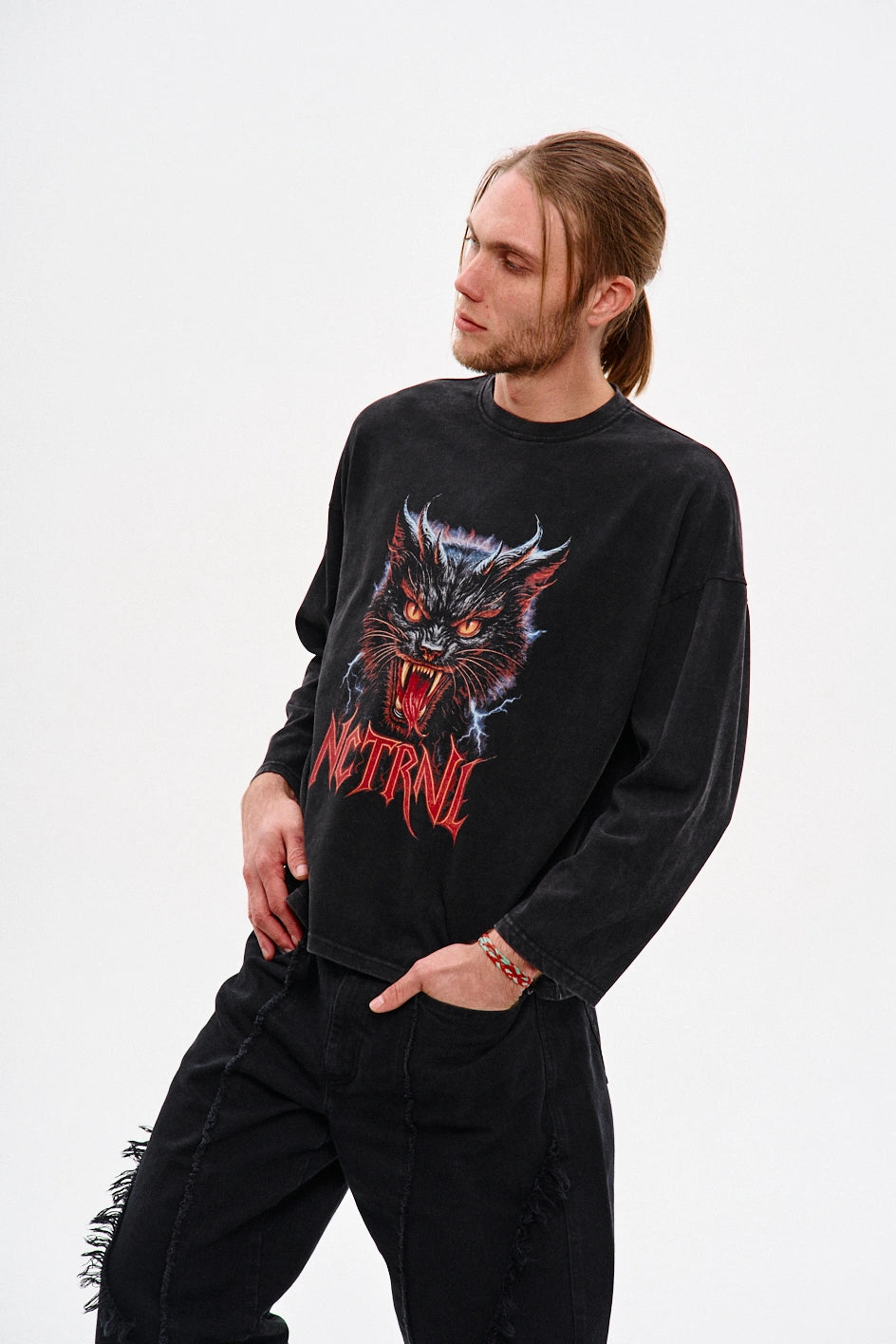 Oversize’owy longsleeve z efektem sprania — dla tych, którzy cenią unikalność w detalach. Obniżone ramiona i dekolt wykończony ribbaną zapewniają komfort i trwałość. Autorski nadruk uzupełnia koncepcję modelu, nadając każdej stylizacji wyrazistości. Idealnie komponuje się z jeansami „Spite”, tworząc stylowy i wyrazisty zestaw.