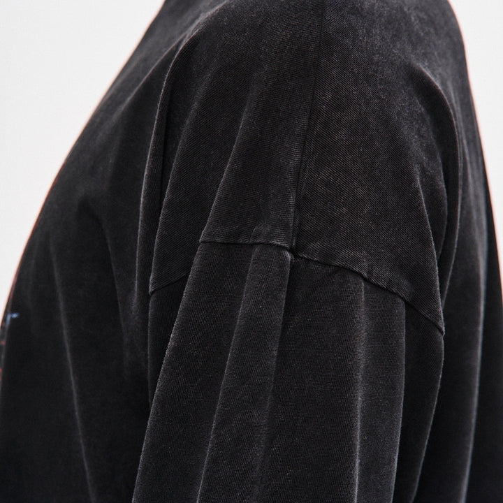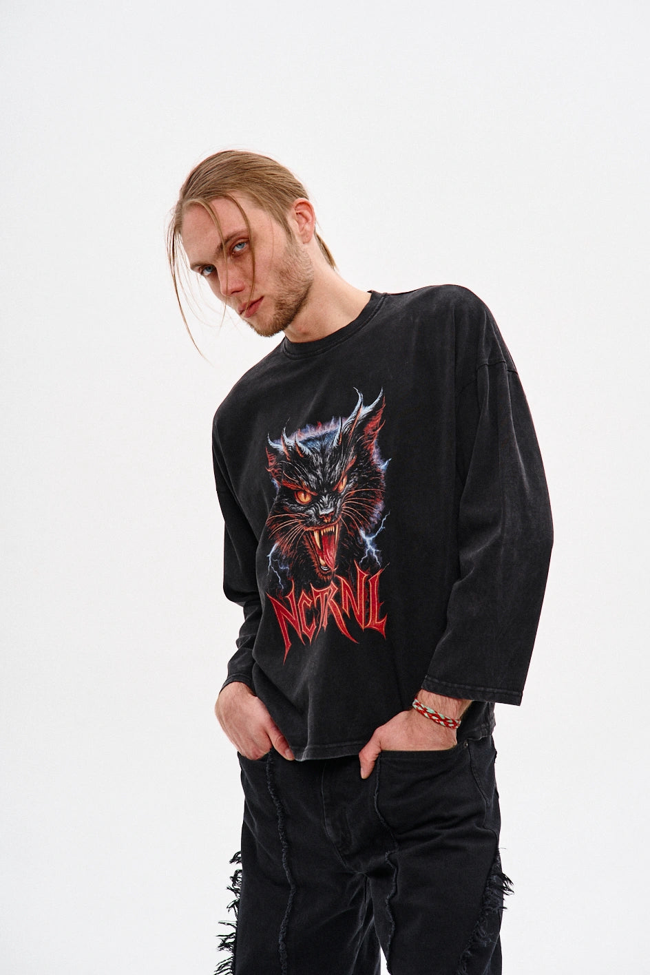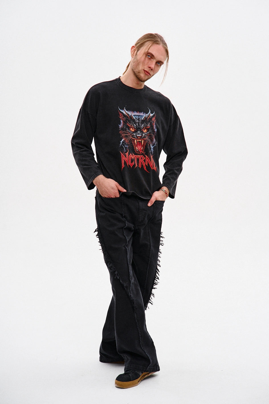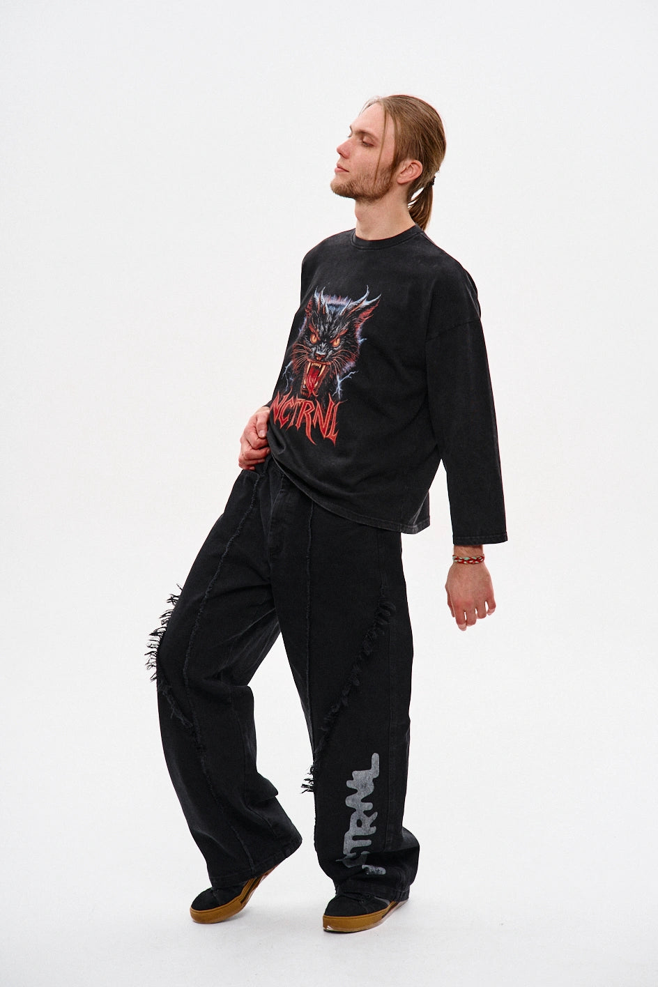 Oversize’owy longsleeve z efektem sprania — dla tych, którzy cenią unikalność w detalach. Obniżone ramiona i dekolt wykończony ribbaną zapewniają komfort i trwałość. Autorski nadruk uzupełnia koncepcję modelu, nadając każdej stylizacji wyrazistości. Idealnie komponuje się z jeansami „Spite”, tworząc stylowy i wyrazisty zestaw.